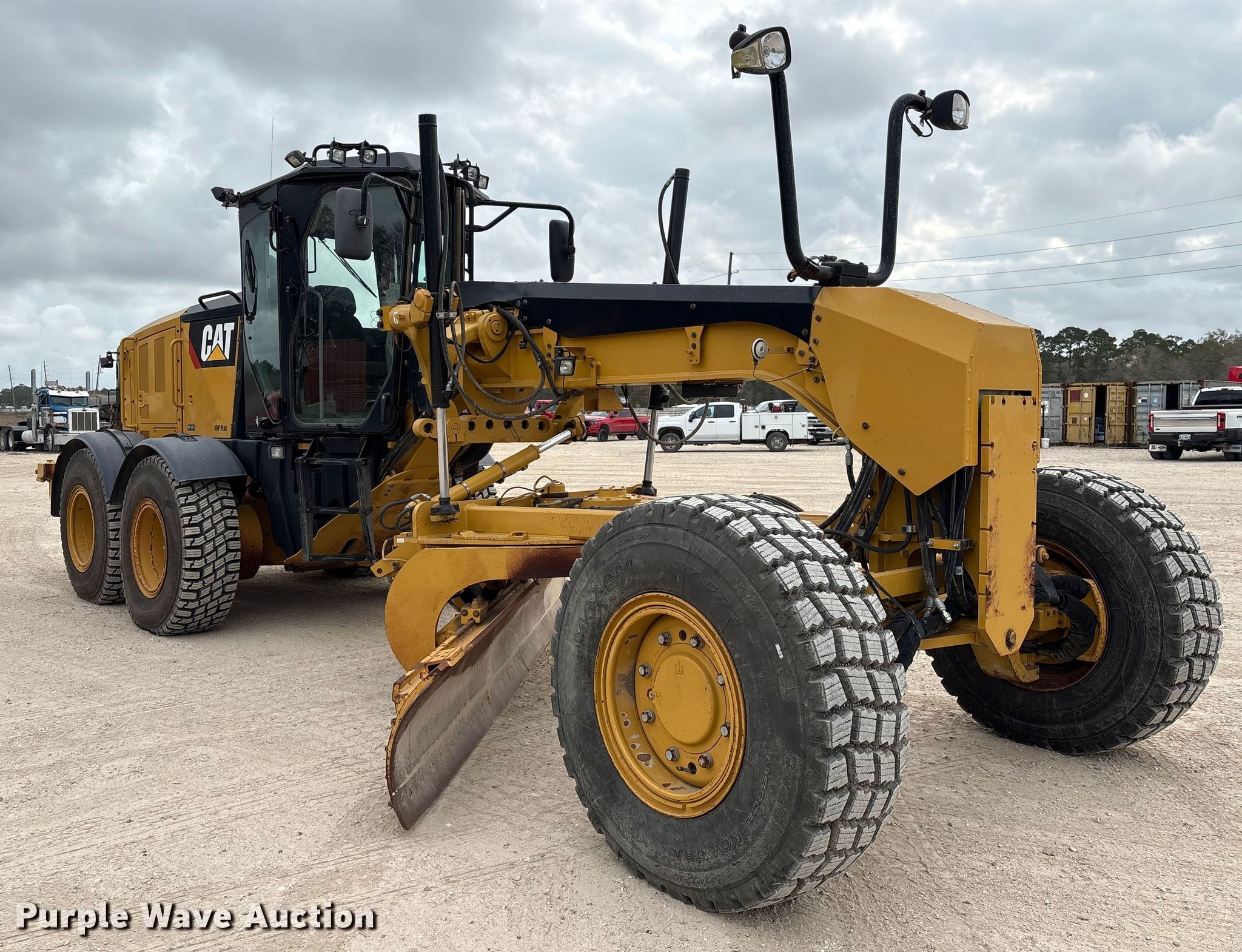 Purple Wave is selling a used Motor Grader in Texas. This item is a 2014 Caterpillar 160M2 motor grader with the following: Hours: 5,473 on meter, Serial: CAT0160MTR9T00310