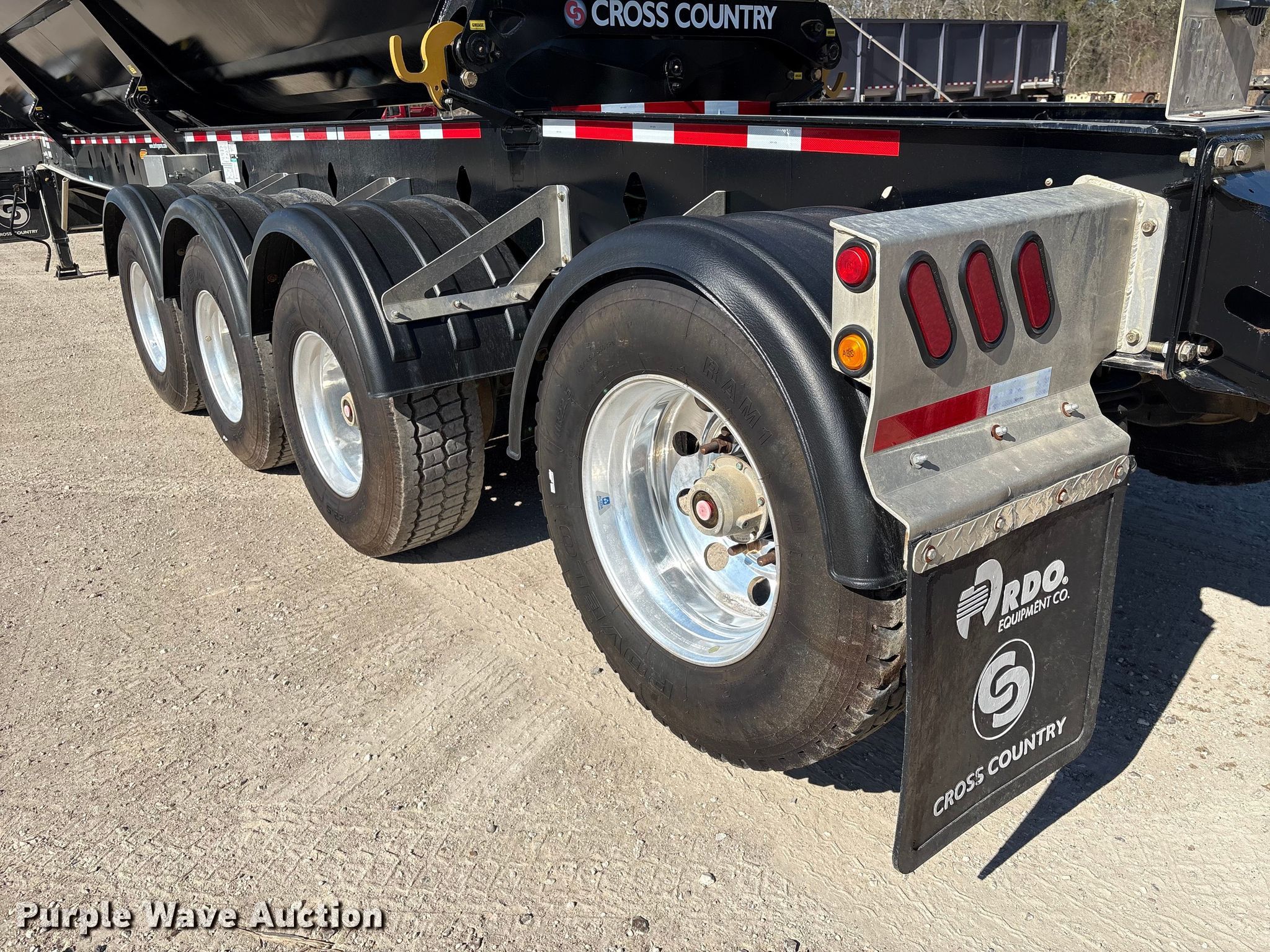 2024 Cross Country Manufacturing 494SDX side dump trailer. VIN: 2C9SEW4V1RM183051. Dimensions Overall Length: 50' 4", Width: 8' 6", Body Length: 38', Width: 8'. Features Body type: Steel, Ram: Dual, Trailer controls, Roll tarp. Chassis Landing gear: Dual, Suspension: Air, Brakes: Air, Axles: Quad, Tag axle, GVWR: 103,617 lbs. Tires Aluminum wheels, Size: 385/65R22.5, Tag axle: 11R22.5. Mississippi title. Title distribution may be delayed up to 14 days from verification of funds. Wallisville, TX 77597