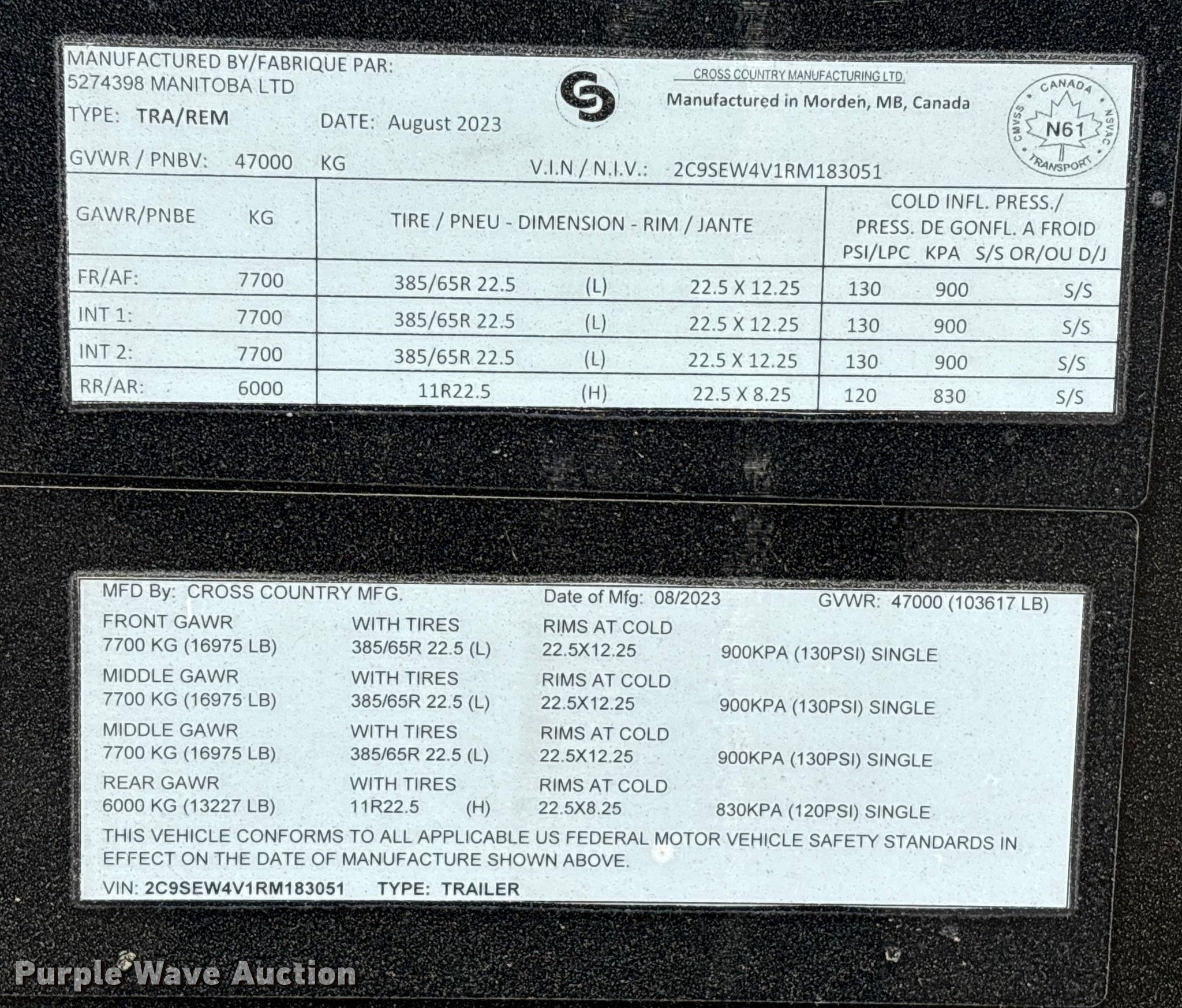 Purple Wave is selling a used Side Tilt Dump Trailer in Texas. This item is a 2024 Cross Country Manufacturing 494SDX side dump trailer with the following: VIN: 2C9SEW4V1RM183051