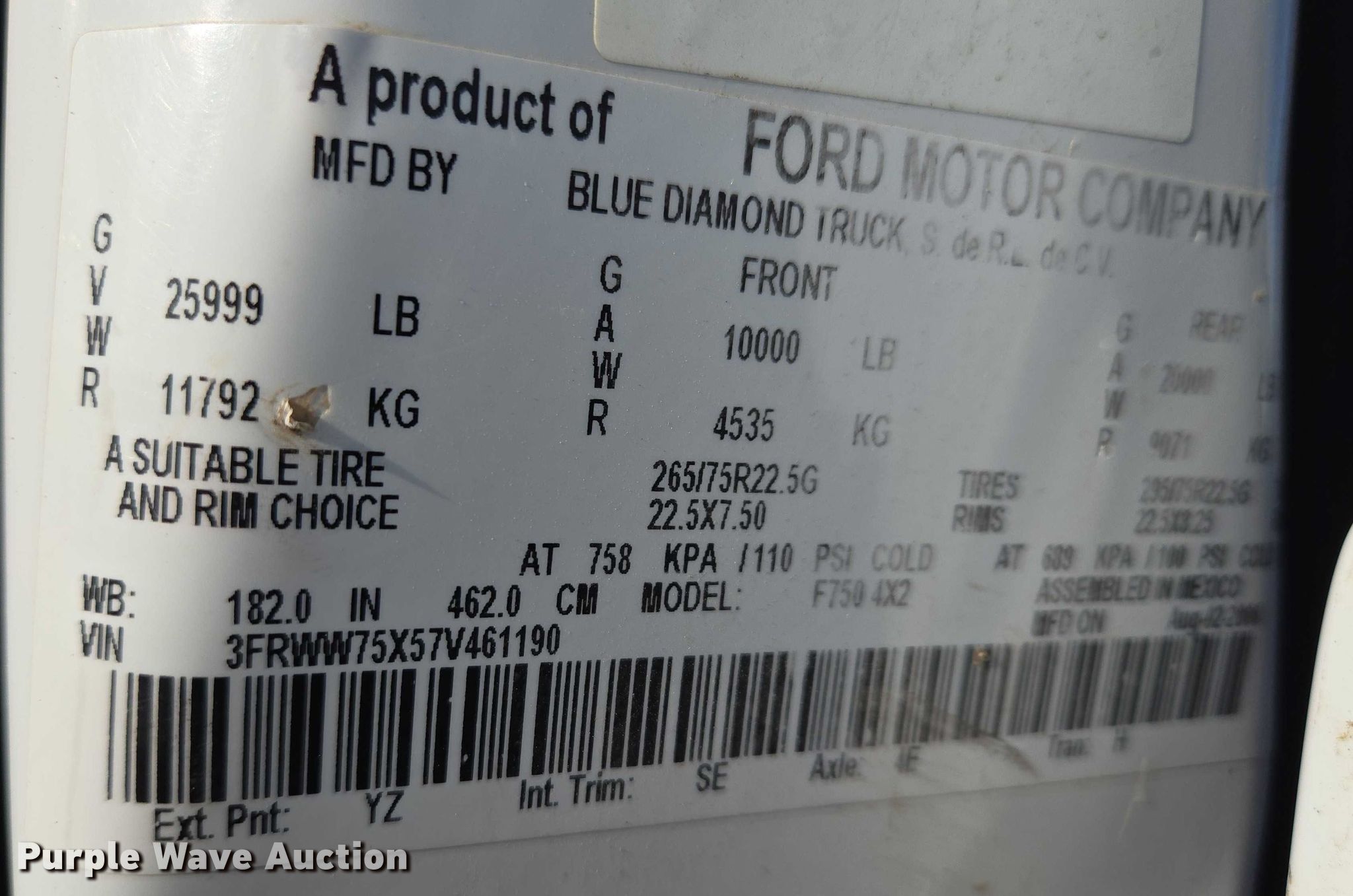 • VIN: 3FRWW75X57V461190
