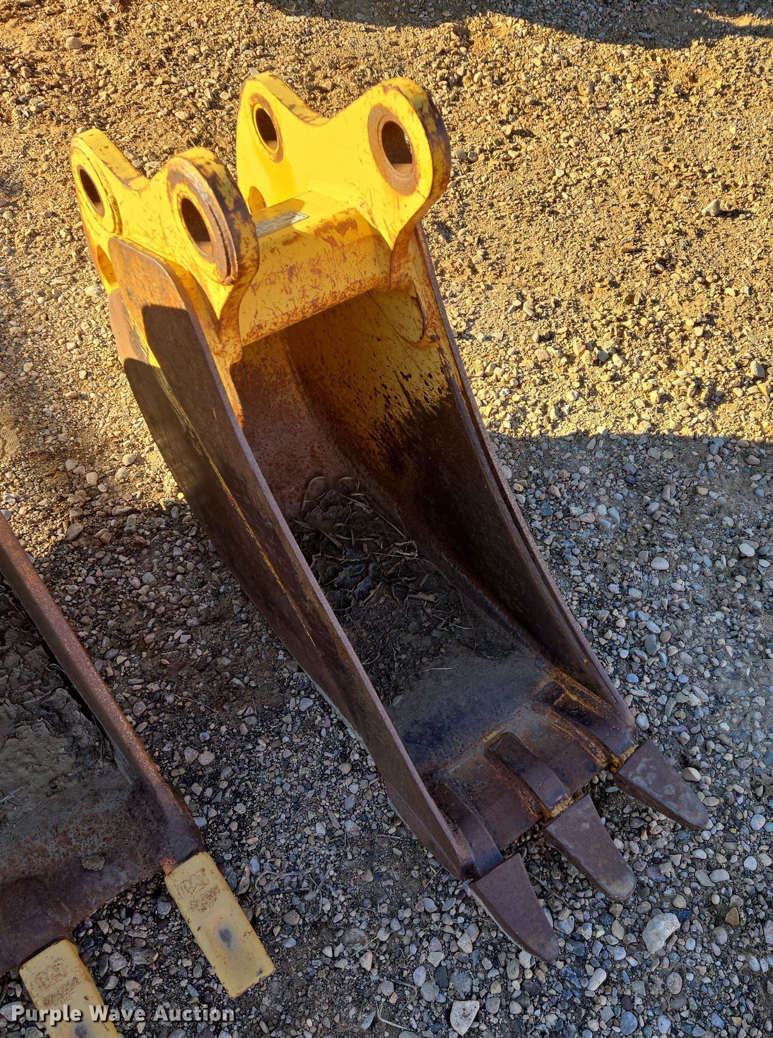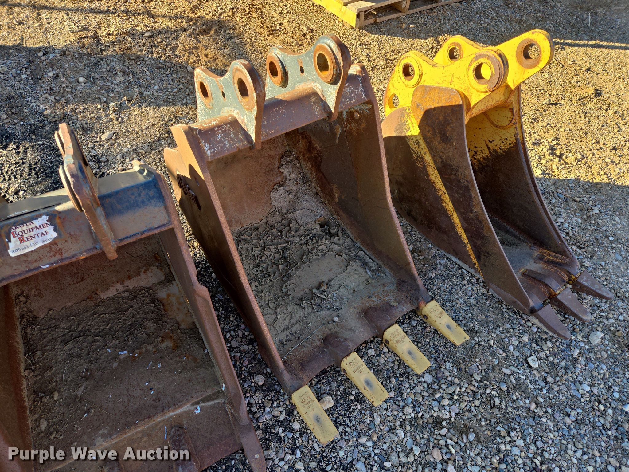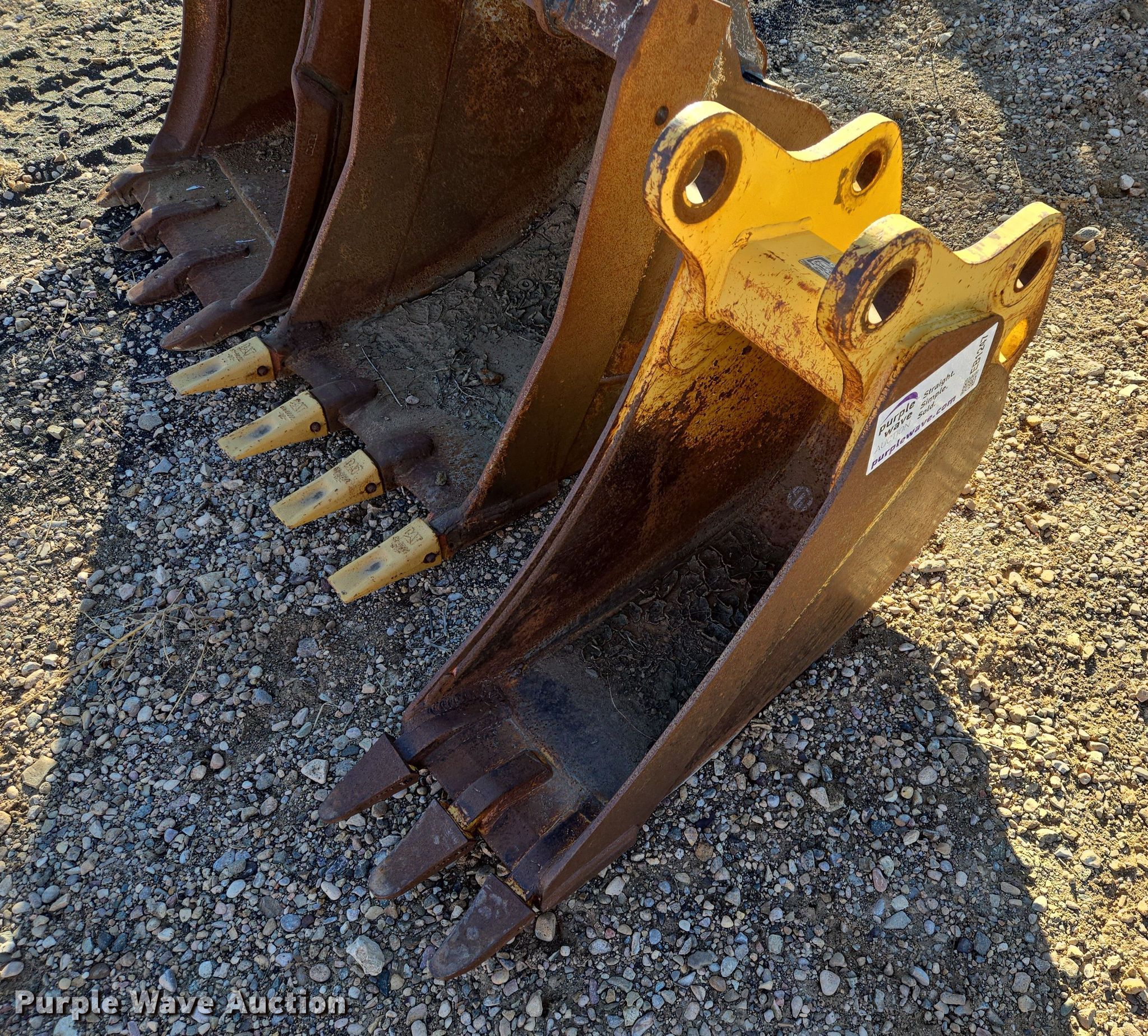 Purple Wave is selling a used Excavator Attach. in South Dakota. This item is a (3) excavator buckets with the following: John Deere bucket, Serial: 1934479, Teeth: 3, Width: 12", Ami bucket, Teeth: 4, Width: 24", Bobcat Bucket, Serial: 7322123, Teeth: 2, Width: 24"