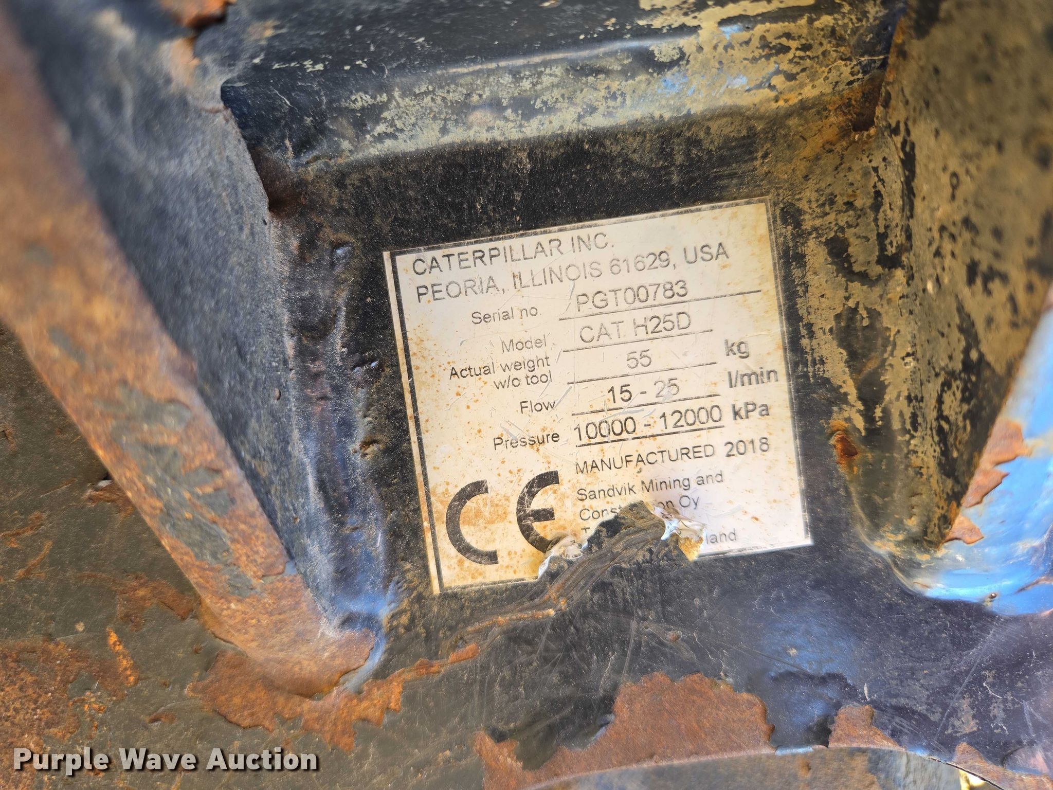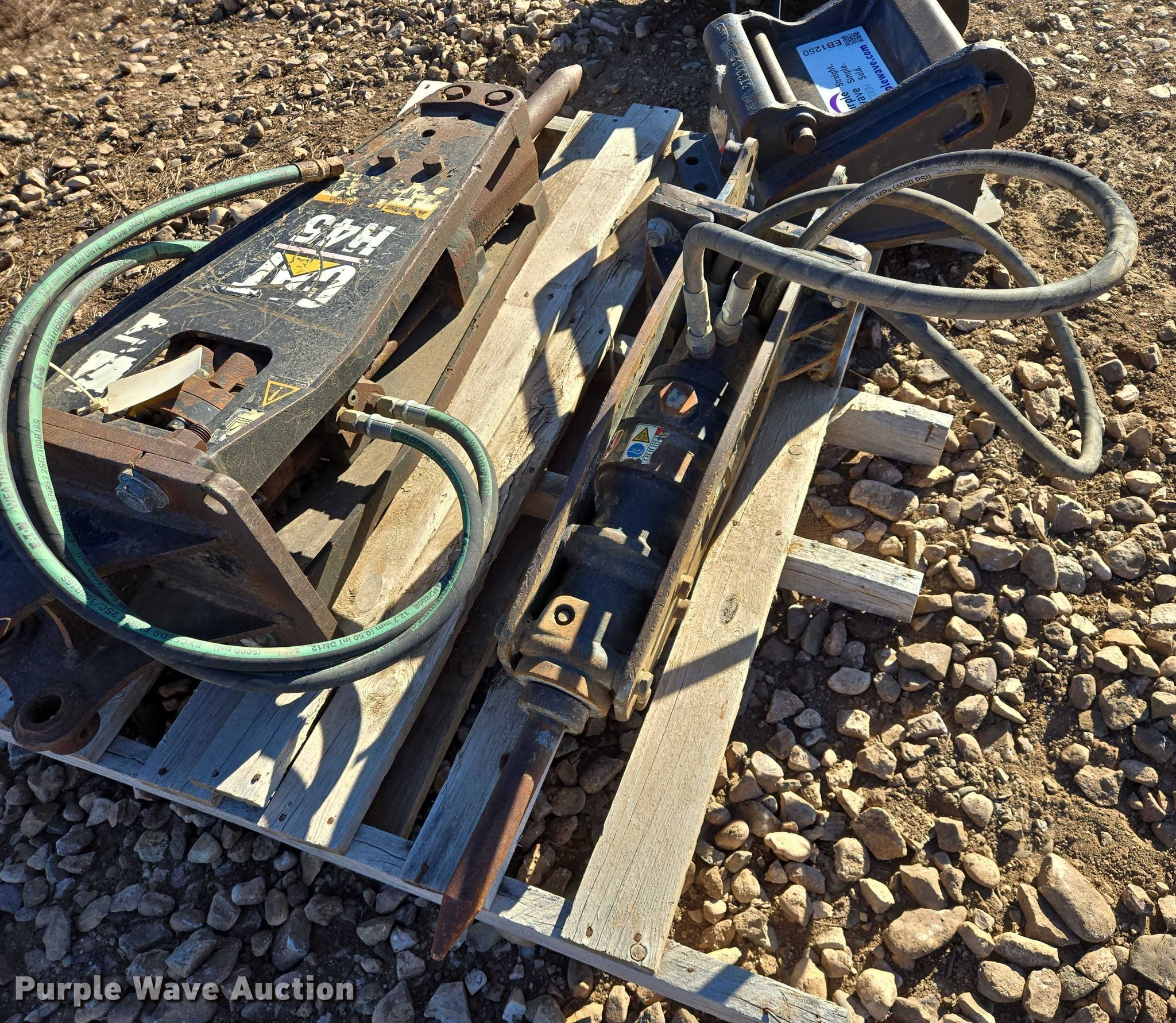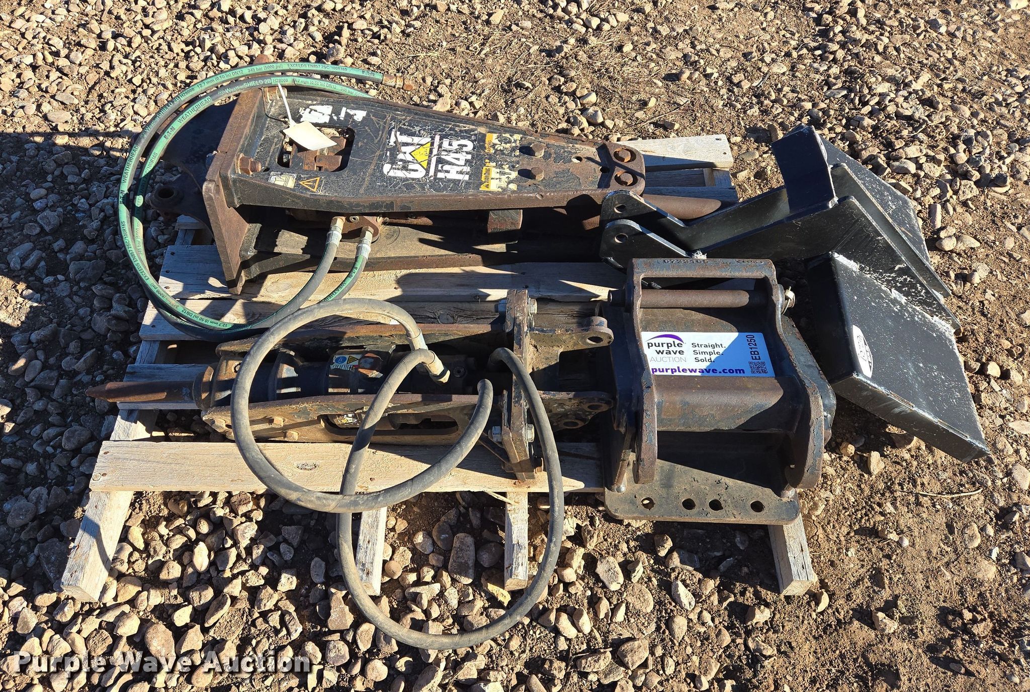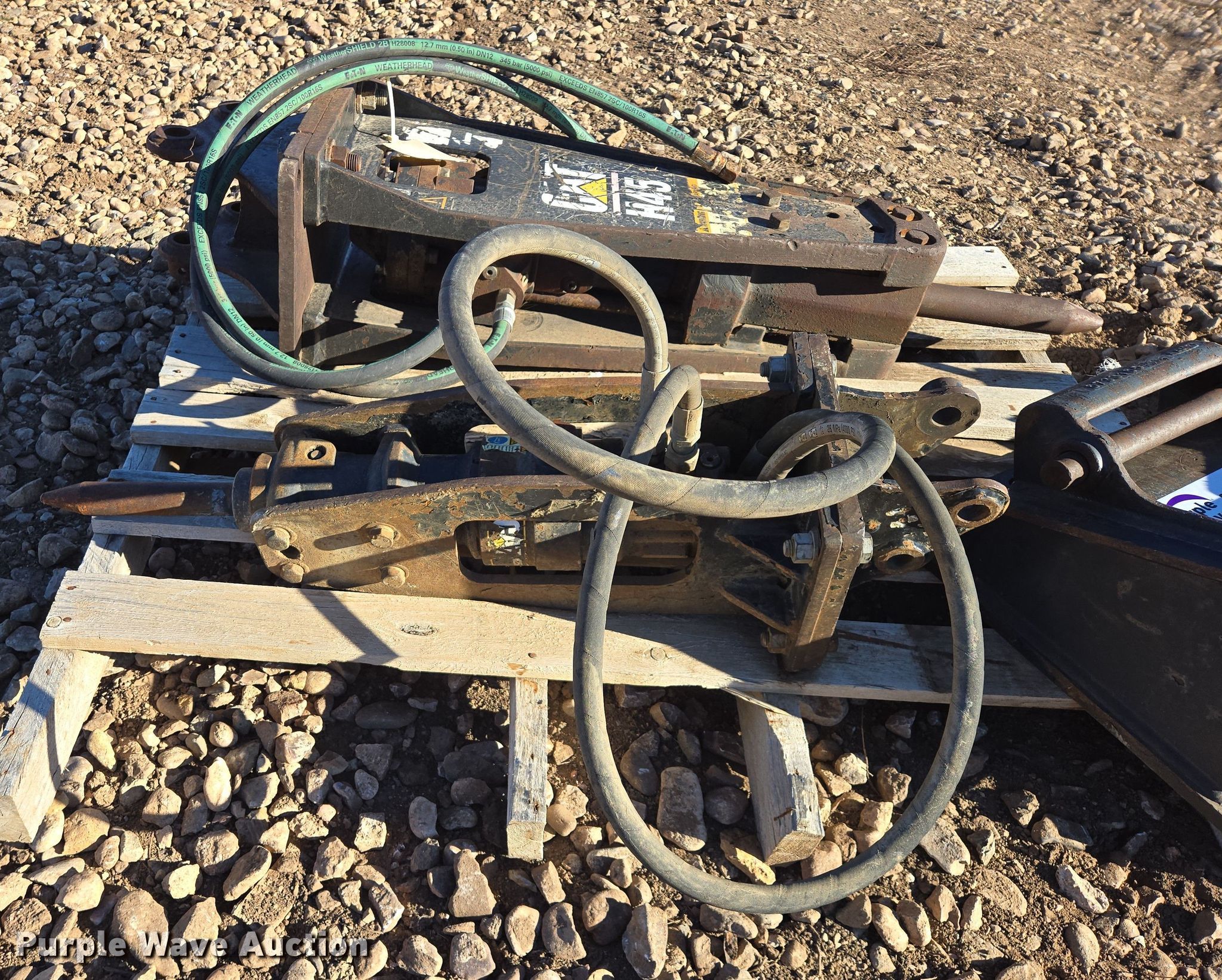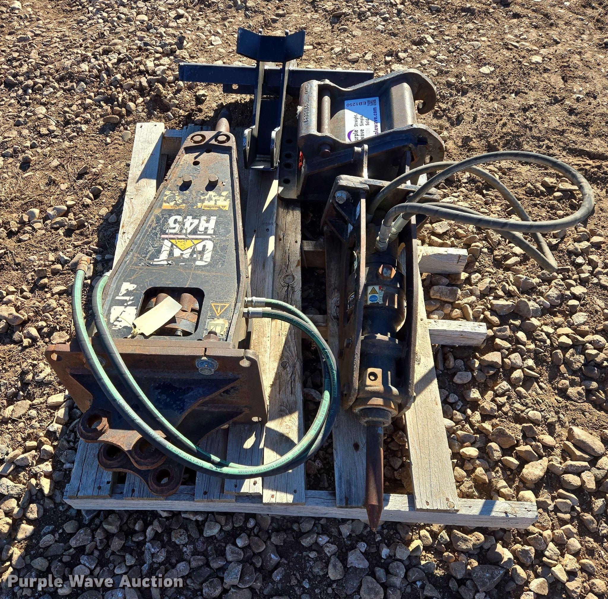 Purple Wave is selling a used Excavator Attach. in South Dakota. This item is a (2) Caterpillar breakers with the following: H45, H25D, Serial: PGT00783, Mini excavator quick attach