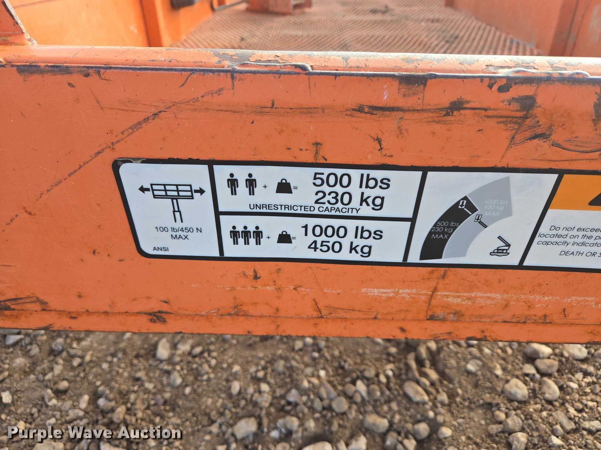 2006 JLG 400S boom lift. Hours: 2,777 on meter, Serial: 0300089622. Engine Cylinders: 4, Fuel type: Gas, LPG, Dual fuel. Chassis Four wheel drive. Features Rough terrain, Boom type: Telescopic, Maximum reach length: 32', Maximum lift height: 40', Hydraulic leveling, Platform: 96" L x 37" W, Controls: Platform, Ground, Platform rotation: Hydraulic, Safety alarm. Tires Tire size: 12-16.5. Dakota Equipment and Rental. Spearfish, SD 57783