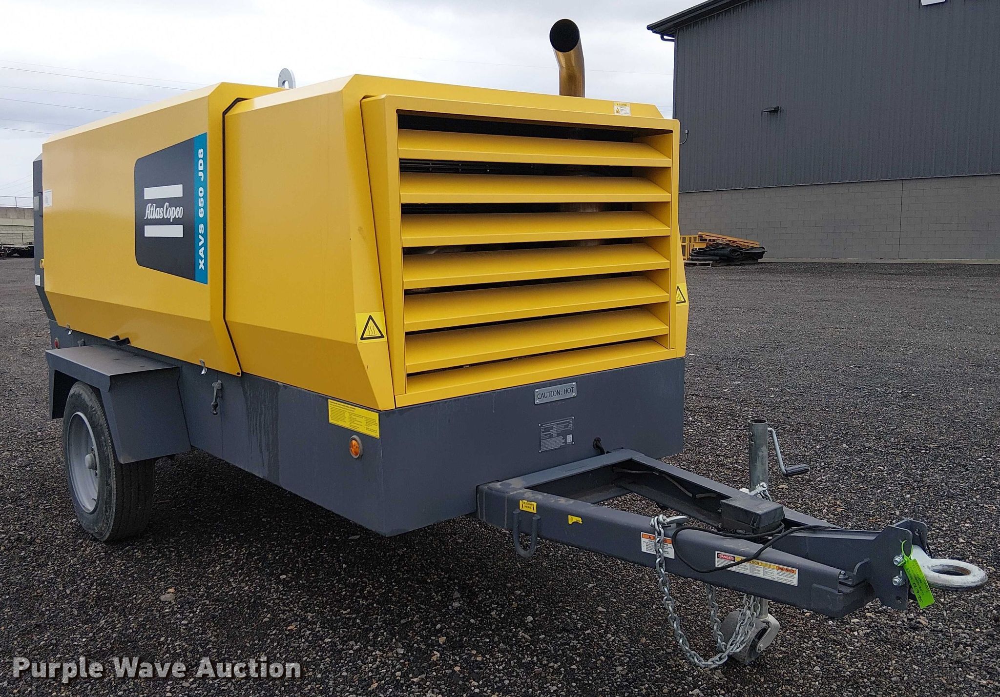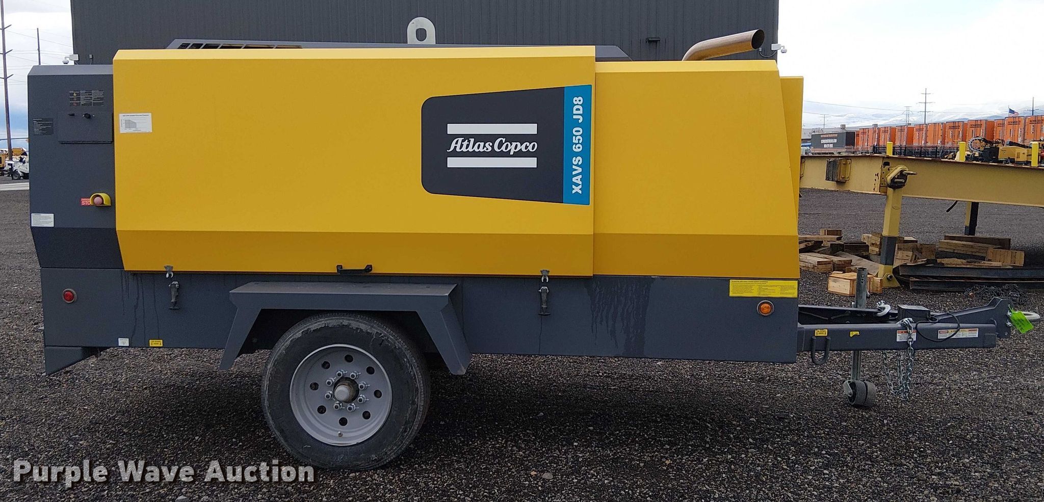 Purple Wave is selling a used Air Compressor in Utah. This item is a 2024 Atlas Copco XAVS 650 JD8 air compressor with the following: Hours: 166 on meter, VIN: 4500B1816RR902071, Serial: UVC902071