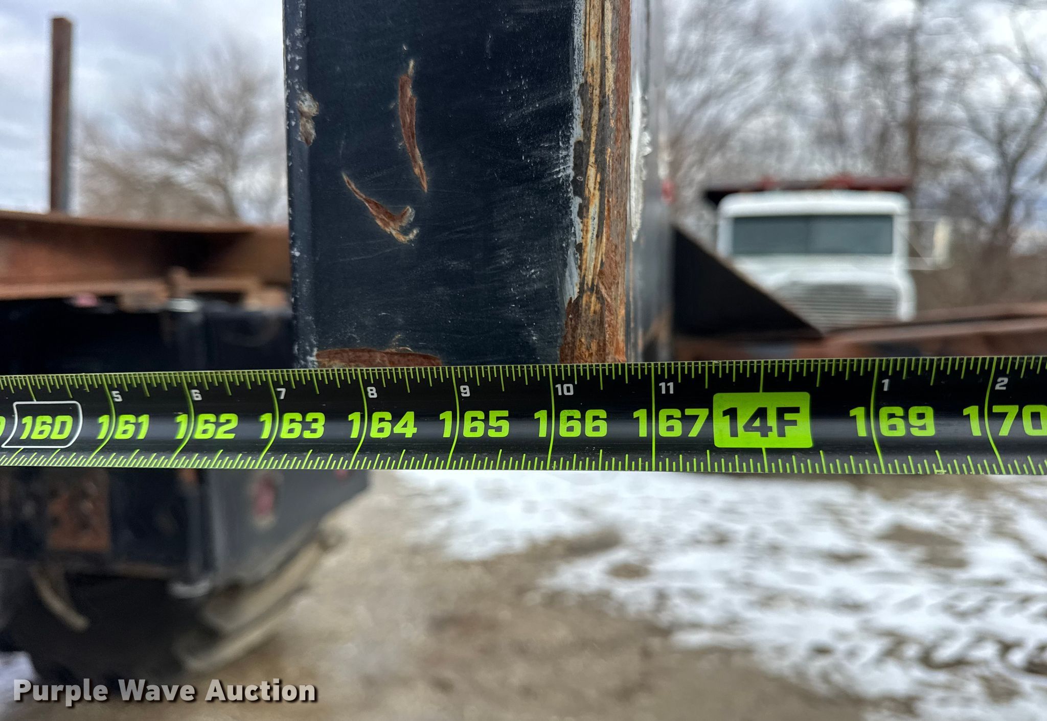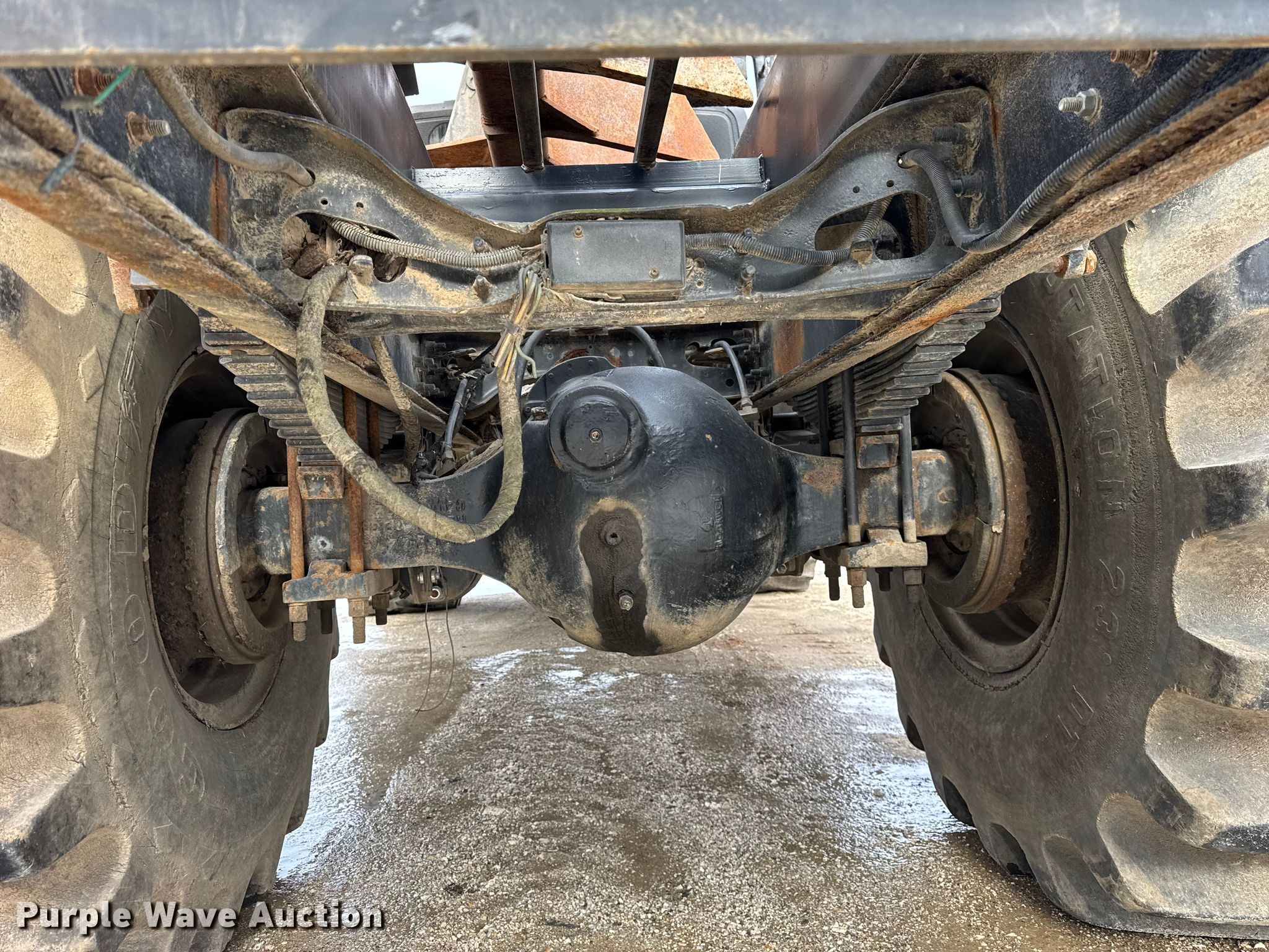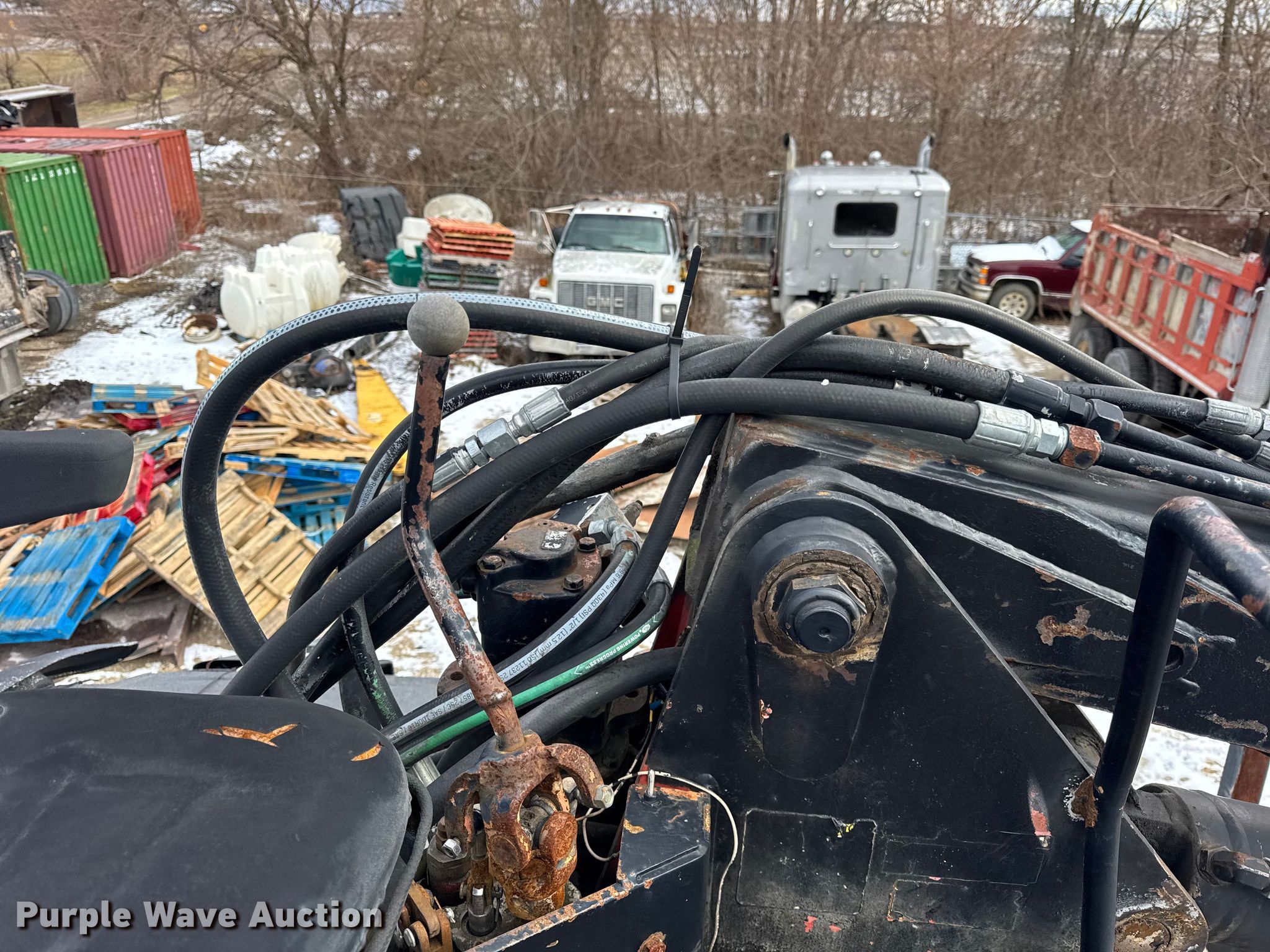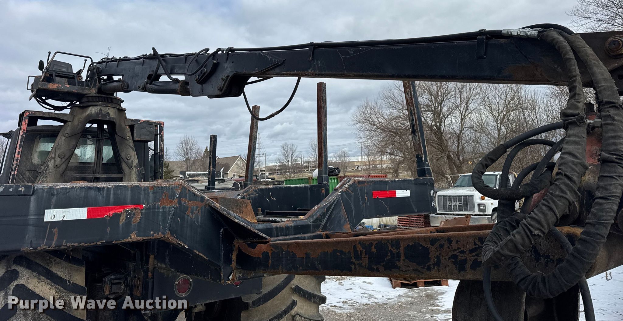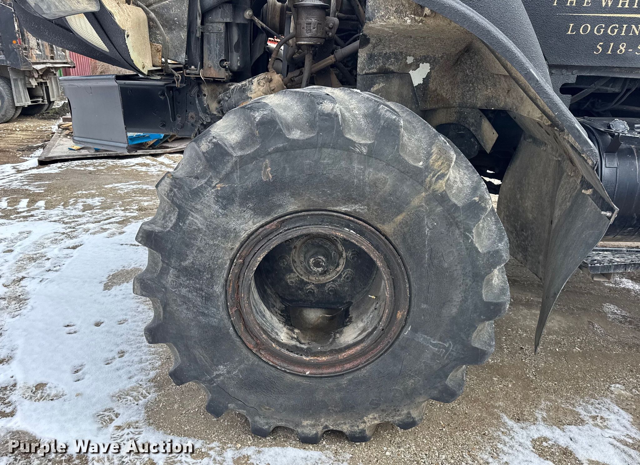 2004 International 7400 log loader truck. Miles: 45,852 on odometer, Hours: 3,895 on meter, VIN: 1HTWDADR540623368. Engine International, Cylinders: 6, Fuel type: Diesel. Transmission Automatic. Chassis Axles: Single, Suspension: Spring, Brakes: Air. Interior AC, Heat, Cruise control. Features Bed Flatbed, Length: 14', Width: 11' 3", Crane Maximum boom length: 24'. Tires Front: 48x31.00-20, Rear: 66x43.00-25. Notes Dozer root rake will be removed prior to auction, Windshield chipped or cracked, Hydraulic leak. This is worksite support equipment and will not come with a title. Transfer of ownership documentation will be a bill of sale. Mount Sterling, IL 62353