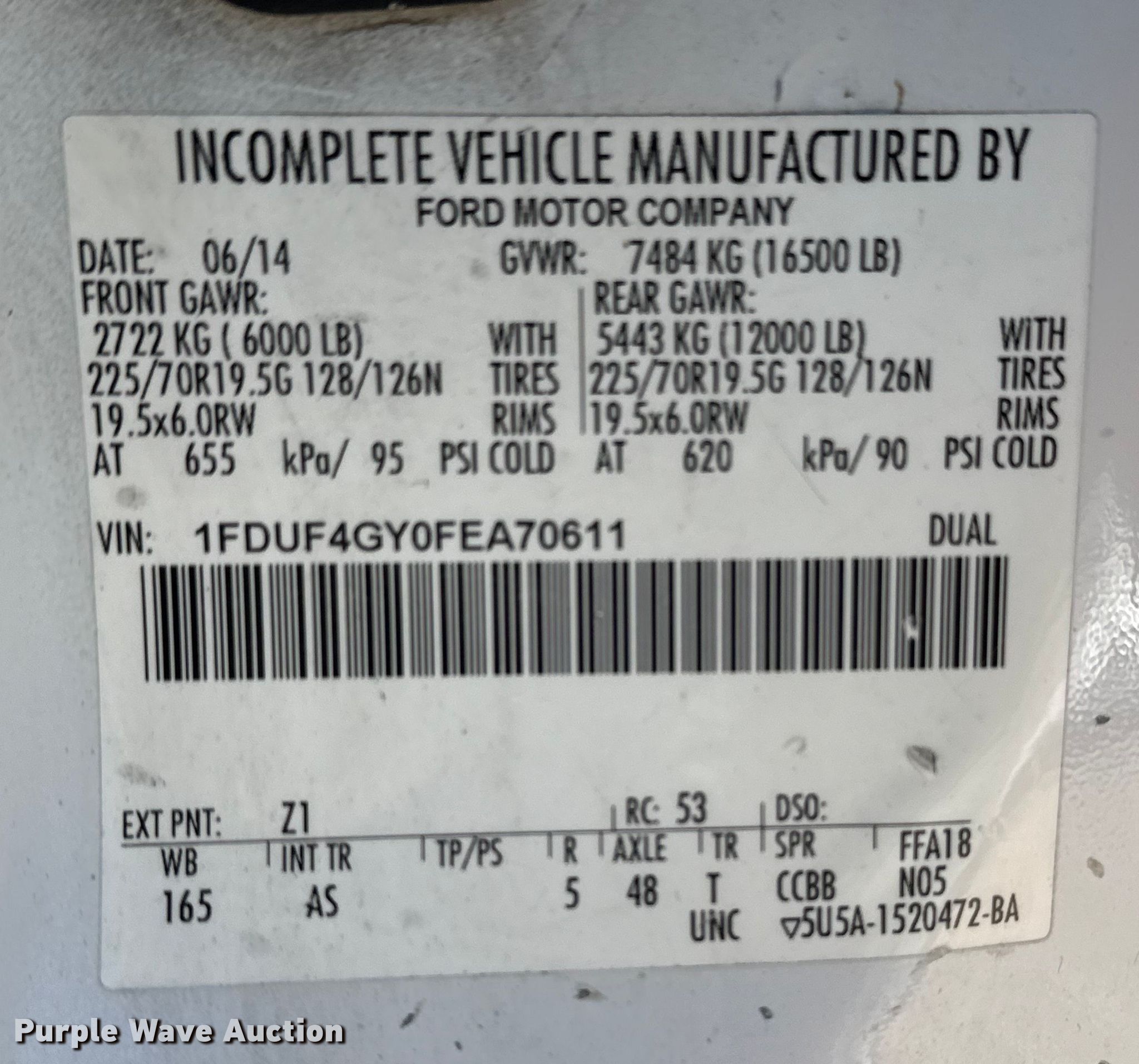 - VIN: 1FDUF4GY0FEA70611