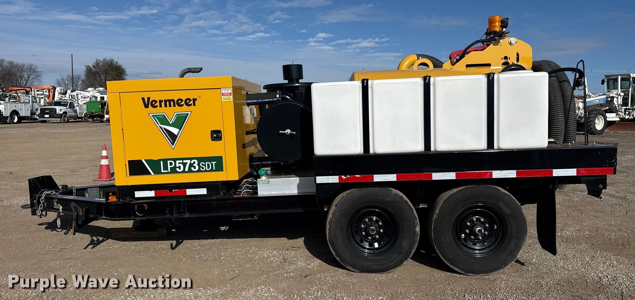 2022 Vermeer LP573SDT vacuum excavator. Hours: 87 on meter. Engine Yanmar 4TNV88C, Displacement: 2.19L, Cylinders: 4, Fuel type: Diesel. Features Water pump Vactron, Vacuum pump General Pump Evolution Series, Inlet valve size: 4", Outlet valve size: 6", Suction hose Diameter: 4".. Trailer 2024 Vermeer, VIN: 7NWH16A62RK050626, 18' L x 75" W, Hitch: Pintle, Suspension: Spring, Brakes: Electric, Axles: Tandem, Tire size: ST235/80R16, GVWR: 9,995 lbs, GAWR: 4,998 lbs. Oklahoma title. Seller is an Oklahoma licensed motor vehicle dealer. Buyers may be required to provide identification to the licensed dealer to comply with state laws. Title will be assigned and distributed by the dealer. Please contact the seller for distribution questions. Title distribution may be delayed up to 30 days from verification of funds. Collinsville, OK 74021