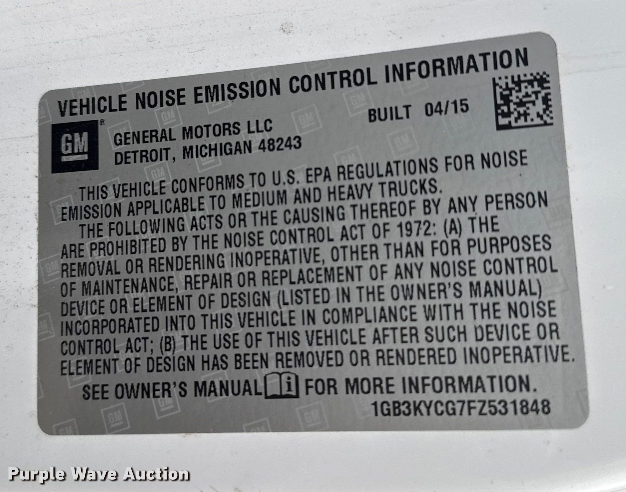 Purple Wave is selling a used 3/4 or 1 Ton Pickup or Van in Oklahoma. This item is a 2015 Chevrolet Silverado 3500HD utility bed pickup truck with the following: Miles: 180,406 on odometer, VIN: 1GB3KYCG7FZ531848
