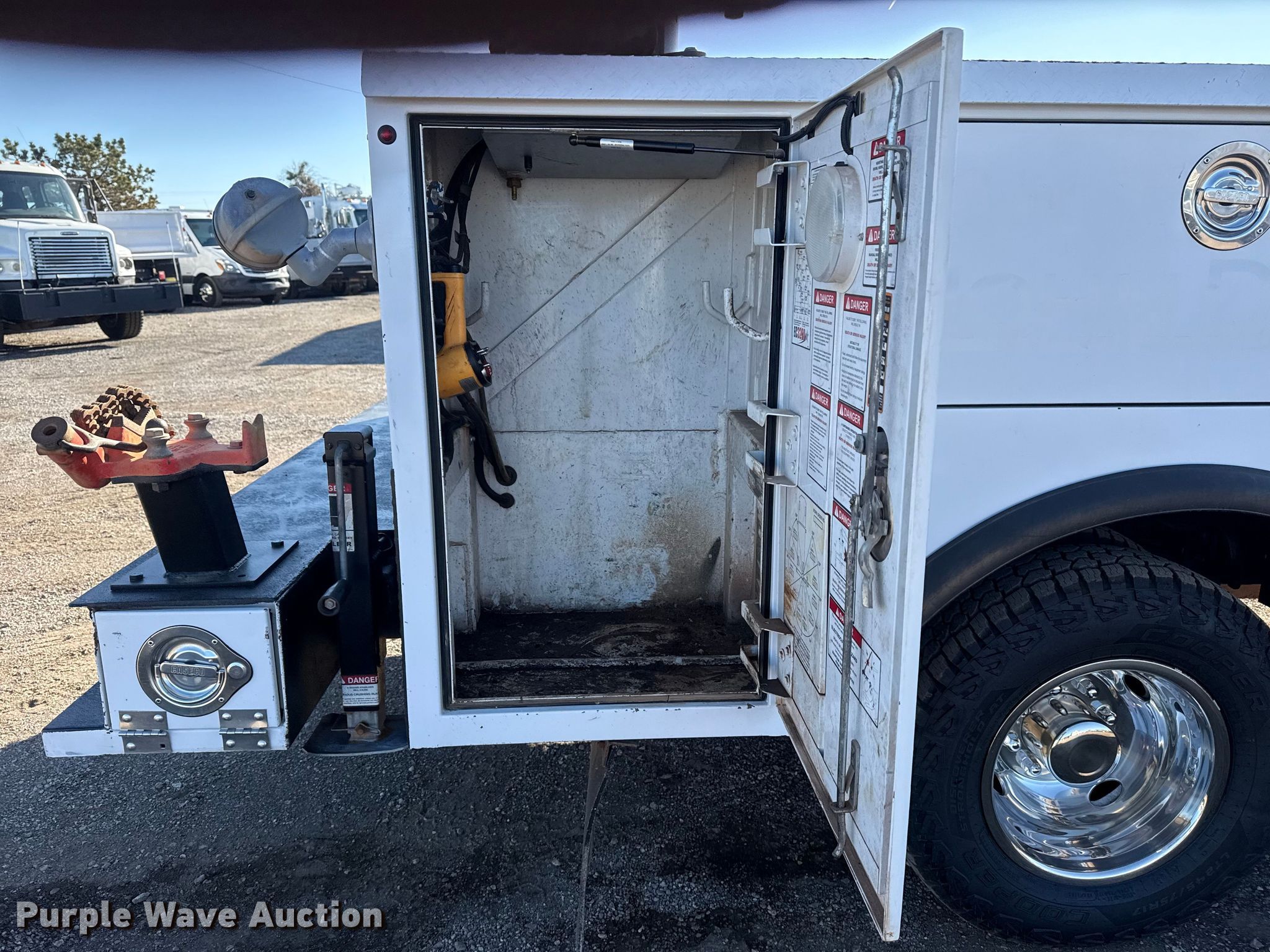 2014 Ford F350 Super Duty utility bed pickup truck. Miles: 171,670 on odometer, VIN: 1FDRF3H60EEB41043. Engine Displacement: 6.2L, Cylinders: 8, Fuel type: Gas. Transmission Automatic. Chassis Four wheel drive, Suspension: Spring, Brakes: Hydraulic, PTO. Interior AC, Heat, Heated mirrors, Power windows, Power locks, Cruise control, Auxiliary controls. Features Bed Caseco, Length: 9', Width: 96", Oil/lube system Hose reels, Crane Stellar EC3200, Maximum boom length: 16' Maximum lift capacity: 3,200 lbs.. Tires Size: LT245/75R17. Oklahoma title. Seller is an Oklahoma licensed motor vehicle dealer. Buyers may be required to provide identification to the licensed dealer to comply with state laws. Title will be assigned and distributed by the dealer. Please contact the seller for distribution questions. Title distribution may be delayed up to 30 days from verification of funds. Collinsville, OK 74021