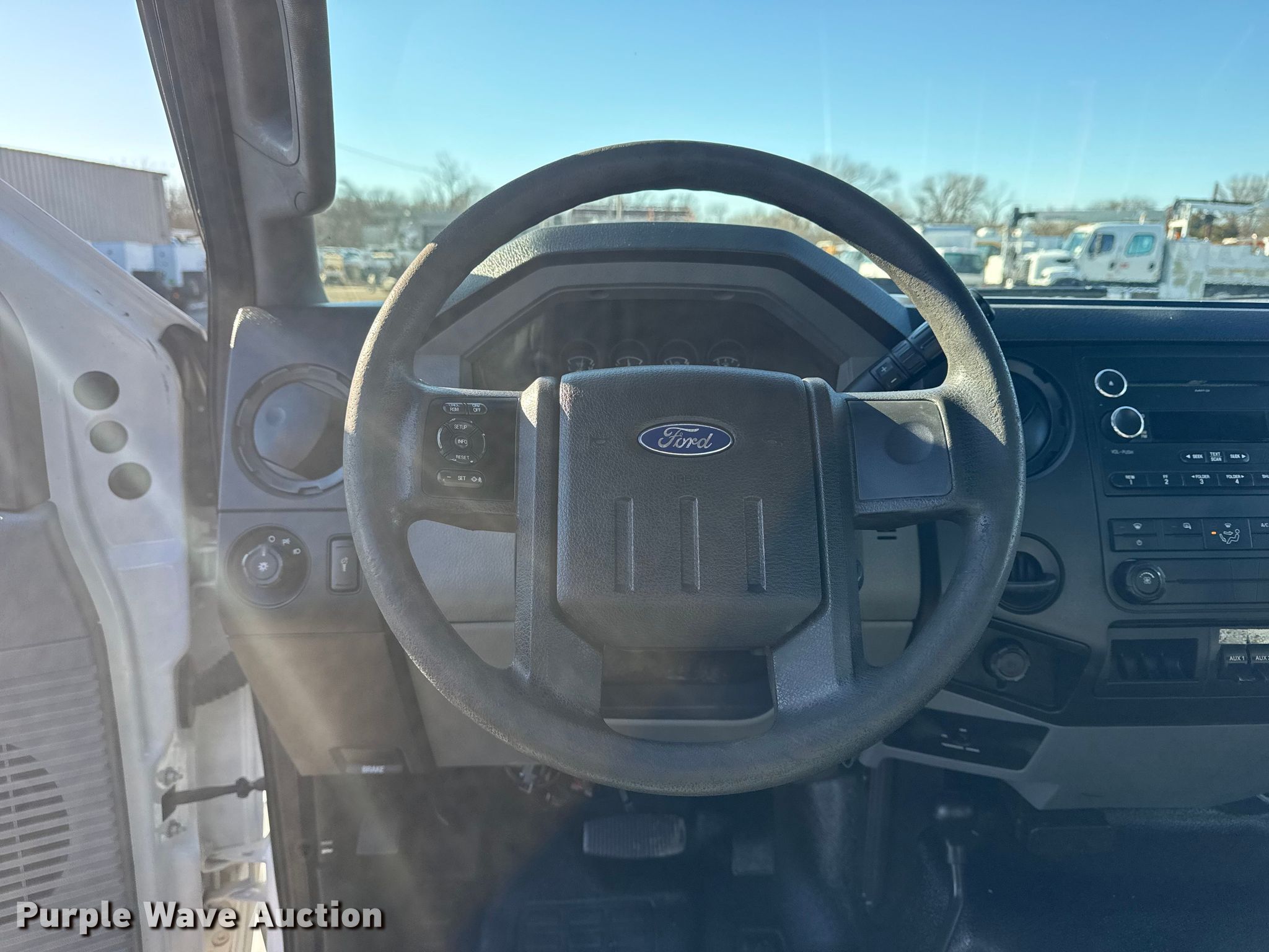 This 2014 Ford F350 Super Duty utility bed pickup truck will sell to the highest bidder regardless of price.
