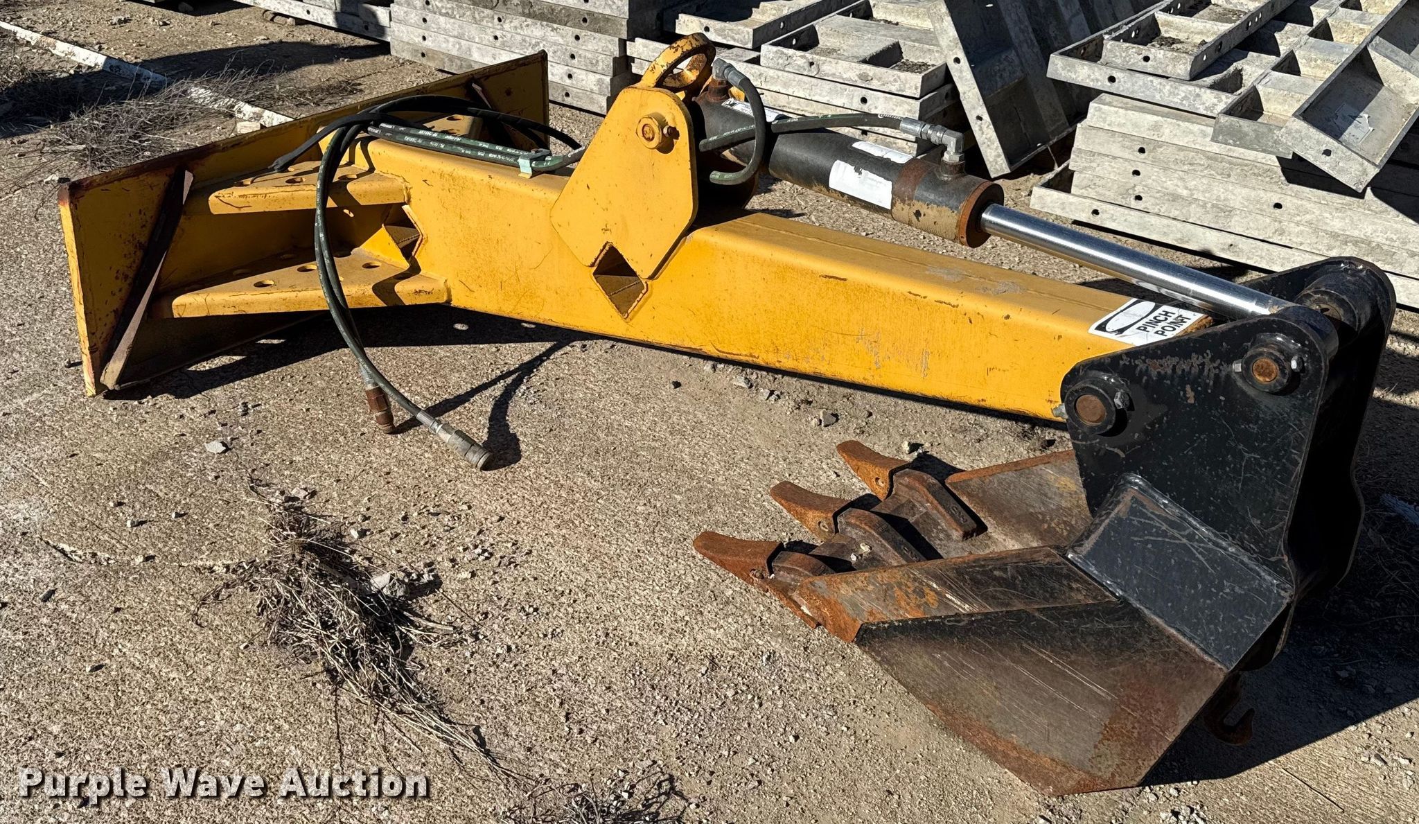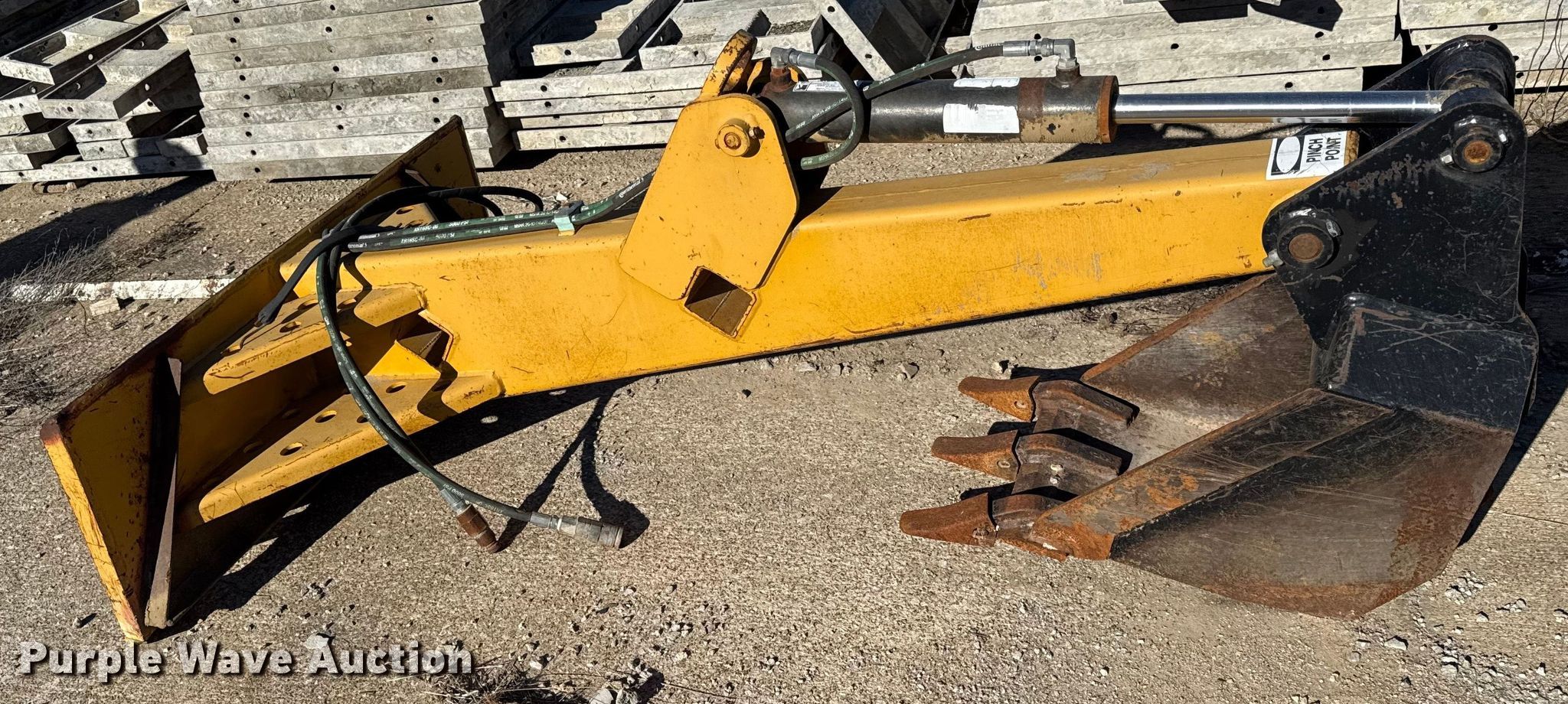 Purple Wave is selling a used Skid Steer Attach. in Kansas. This item is a Skid steer backhoe with the following: Bucket width: 14", Digging depth: 5'