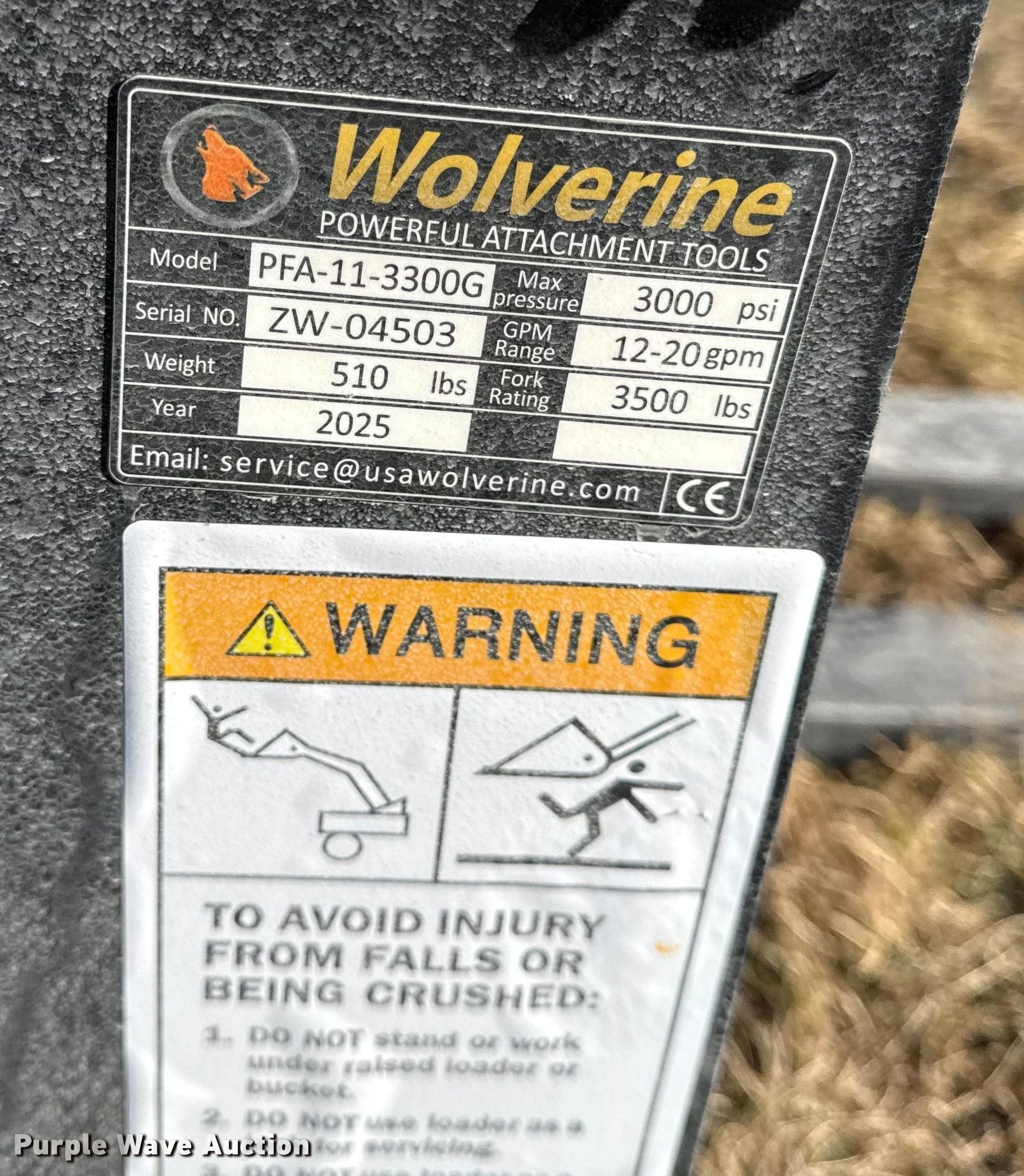 Purple Wave is selling a used Skid Steer Attach. in Kansas. This item is a 2025 Wolverine skid steer forks with the following: Serial: ZW-04503, Length: 48"