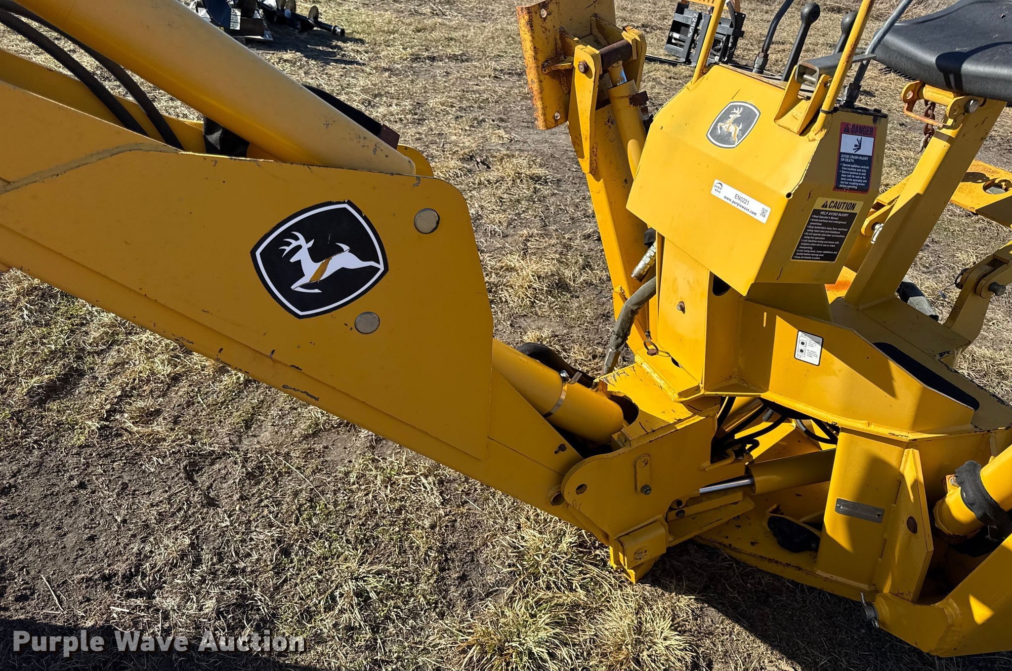 John Deere 911 extender skid steer backhoe for sale in Yates Center, Kansas. Item EN0221 will sell on February 12th, 2026.
