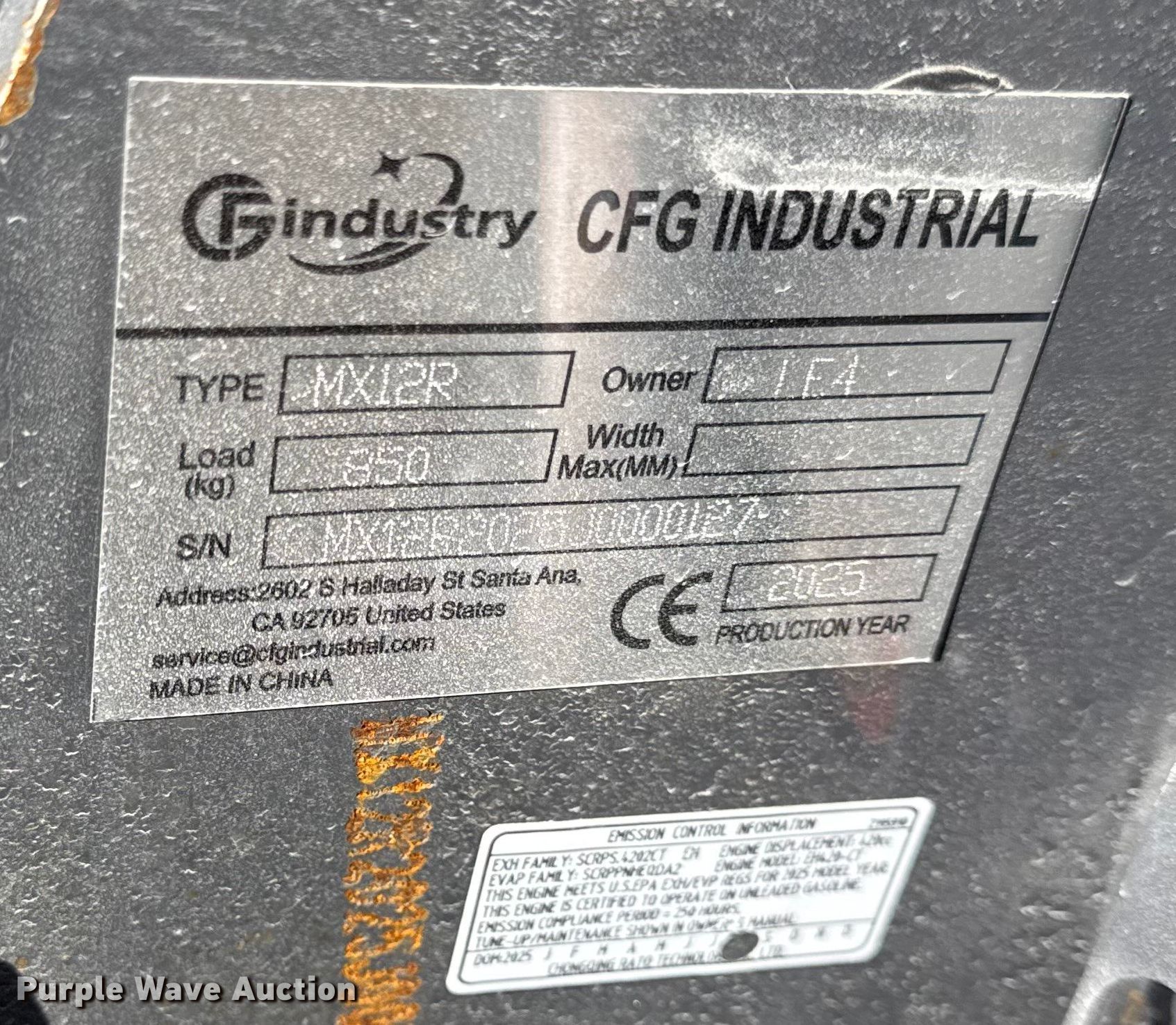 Purple Wave is selling a used Mini Excavator in Kansas. This item is a 2025 CFG indrustial MX12R mini excavator with the following: Hours: 0.1 on meter, Serial: MX12P202JJ0000127