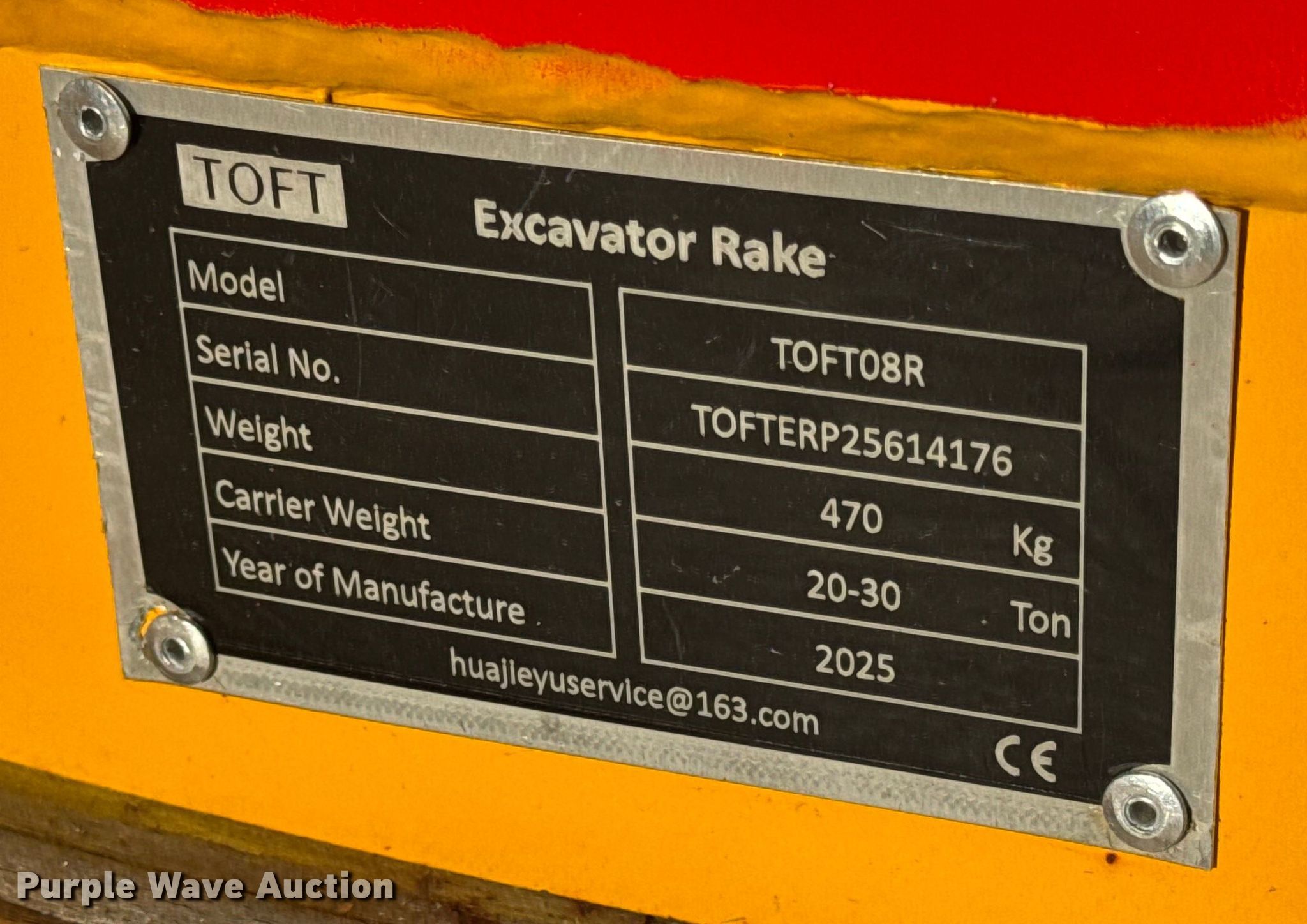 This 2025 Toft 08R excavator rake will sell to the highest bidder regardless of price.