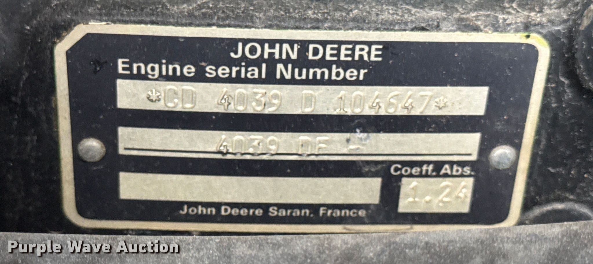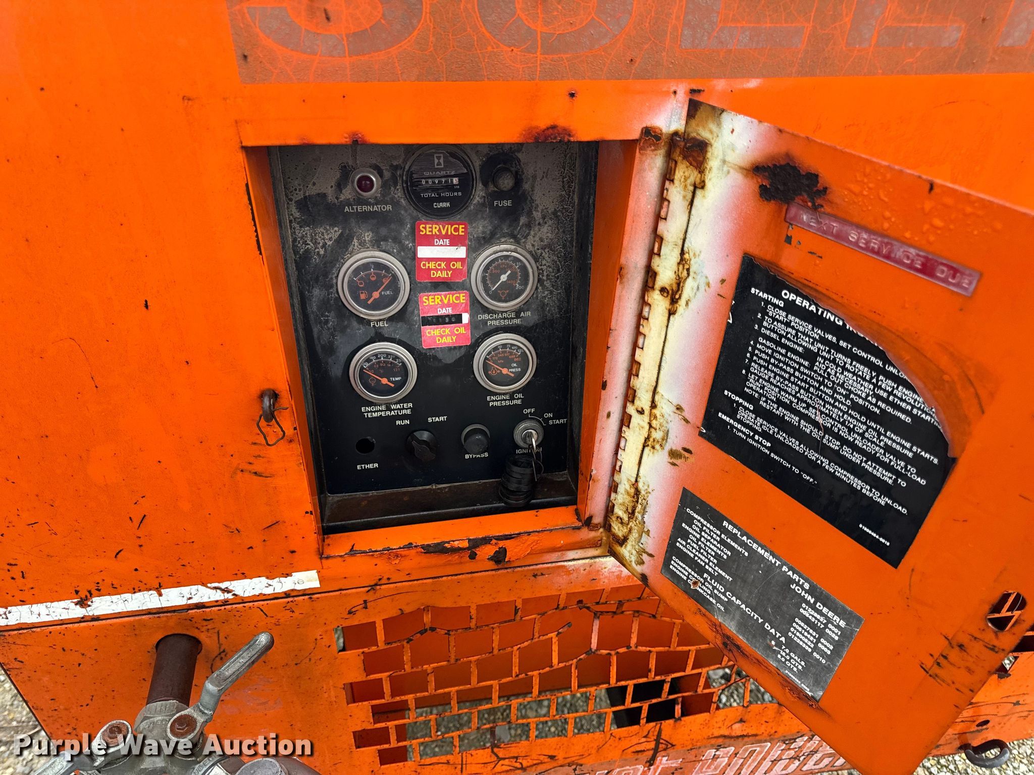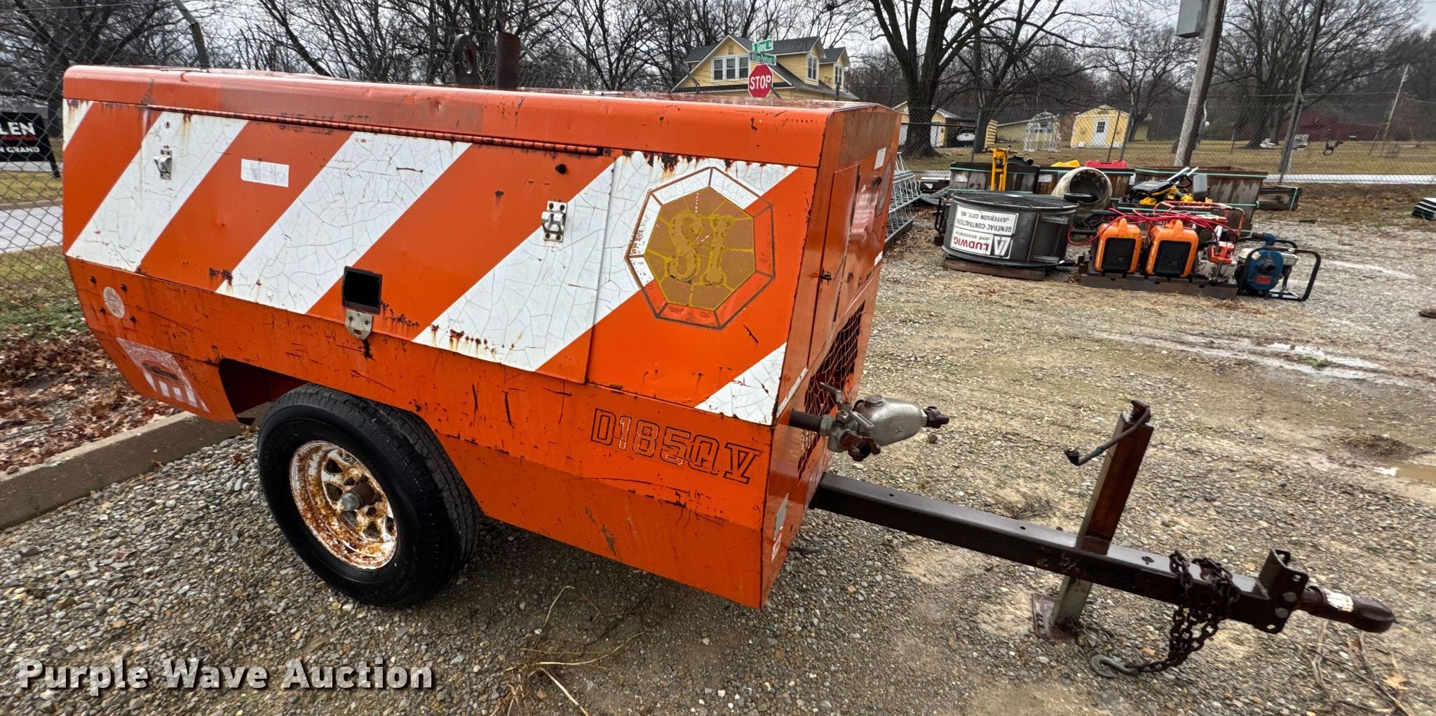 Sullivan D185Q5 air compressor. Hours: 971 on meter, Serial: 11257. Engine John Deere 4039DF, Serial: CD4039D104647, Cylinders: 4, Fuel type: Diesel. Features Air compressor CFM: 185, PSI: 125. Trailer Ball hitch size: 2 5/16", Suspension: Spring, Axles: Single, Tire size: ST225/75R15. Notes Pallet of air hoses. This is worksite support equipment and will not come with a title. Transfer of ownership documentation will be a bill of sale. Septagon Construction. Sedalia, MO 65301