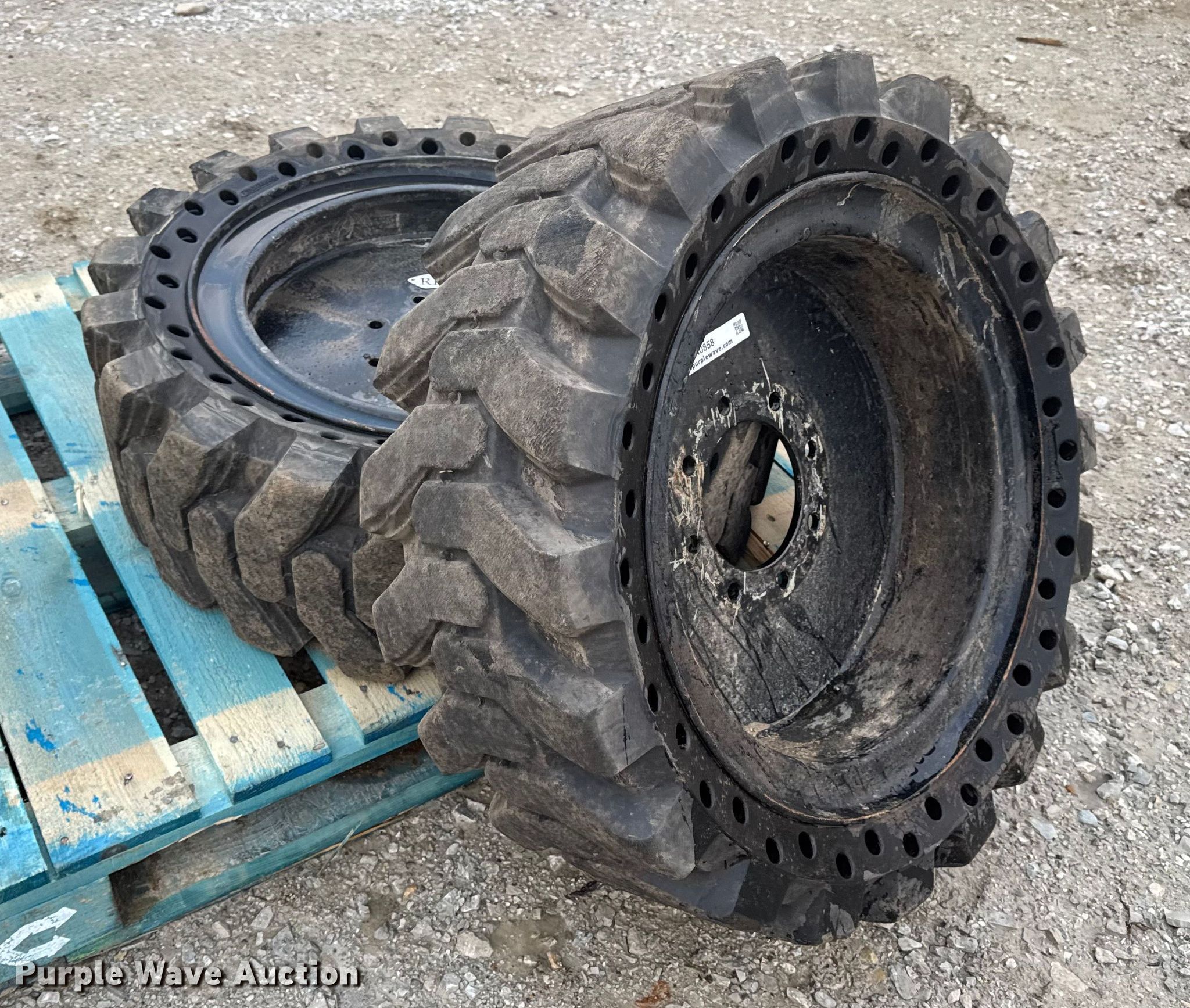 This (2) Dobermann 33X12-20 skid steer tires and wheels will sell to the highest bidder regardless of price.
