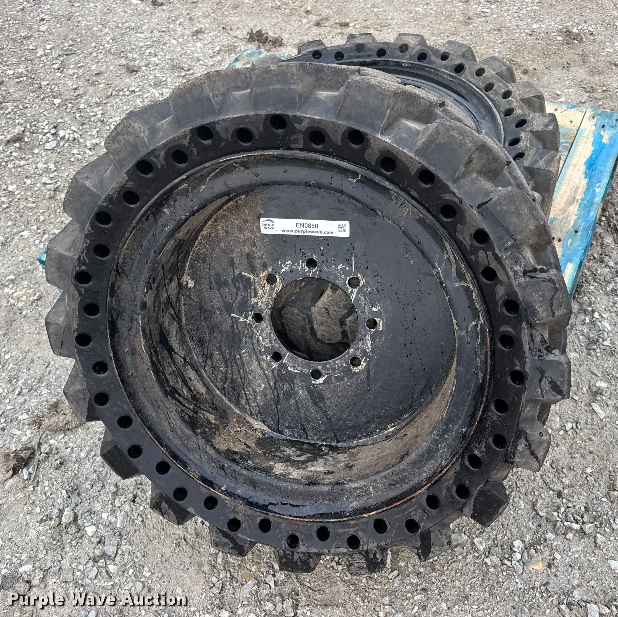 (2) Dobermann 33X12-20 skid steer tires and wheels for sale in New Bloomfield, Missouri. Item EN0858 will sell on February 12th, 2026.