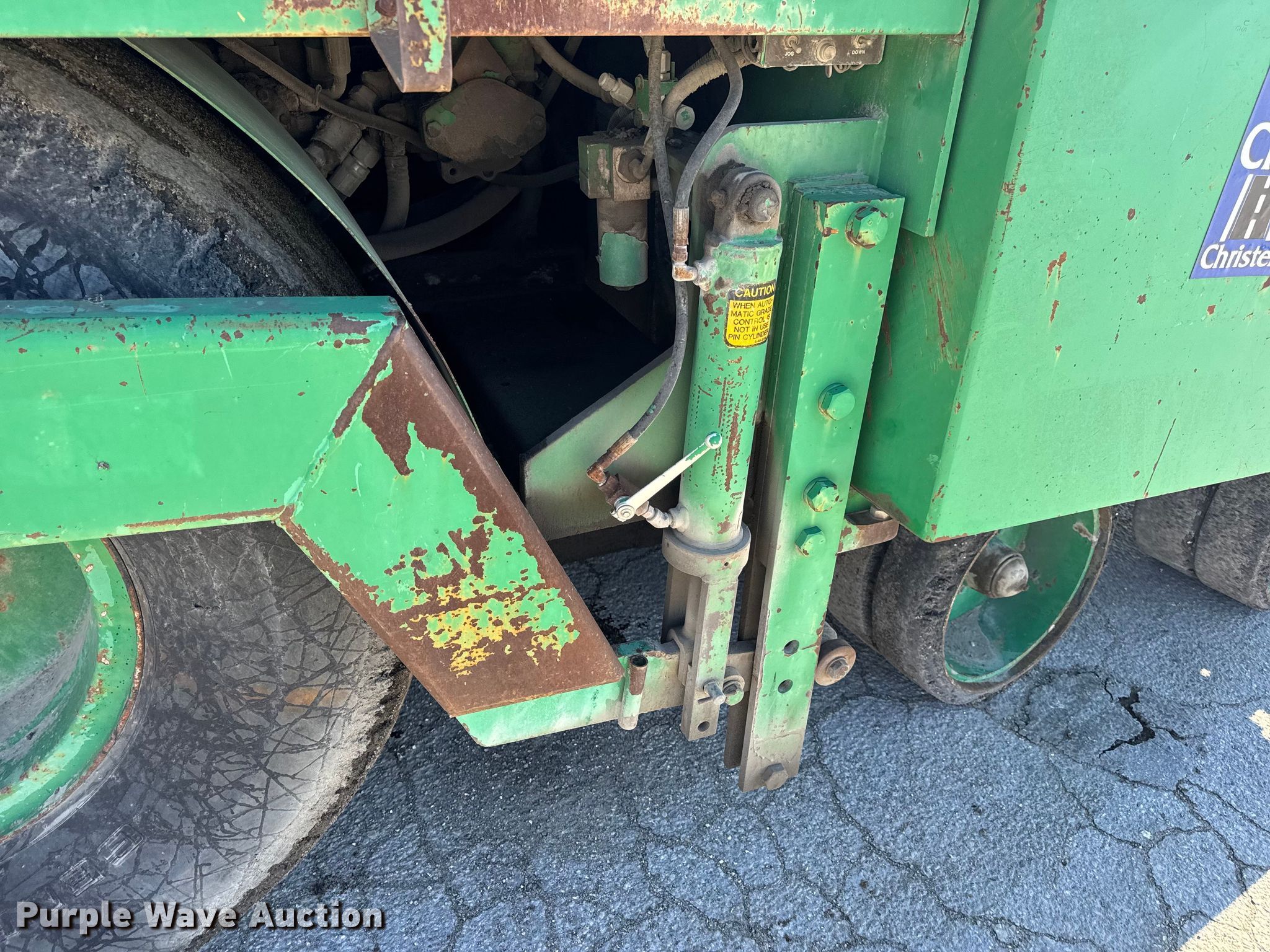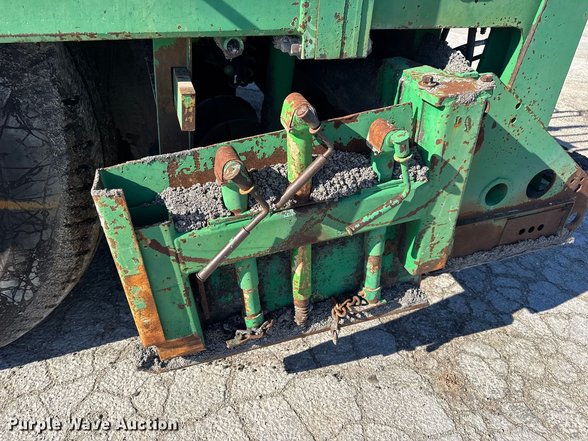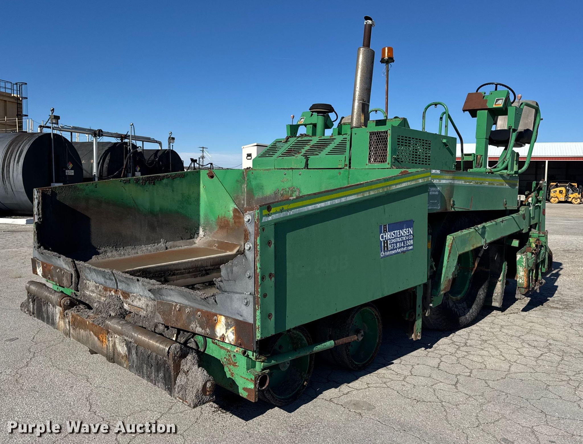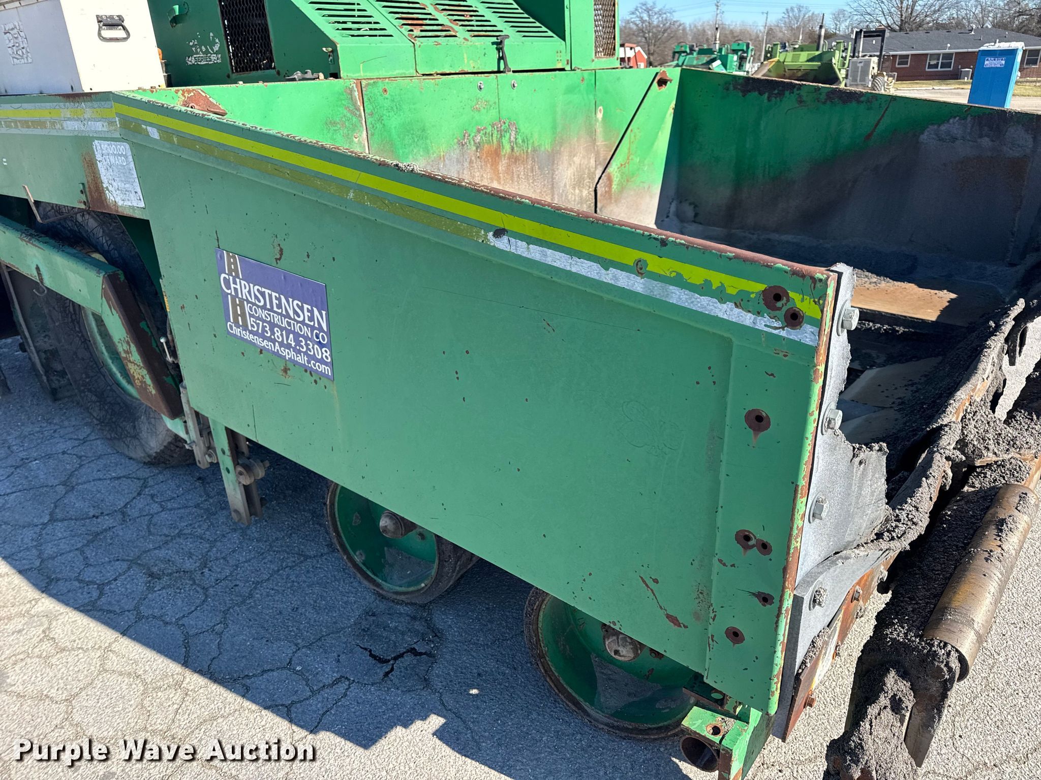 Barber-Greene BG240B screed. Hours: 5,290 on meter, Serial: BG240B666. Engine John Deere 4239TF001, Serial: T04239T221000, Cylinders: 4, Fuel type: Diesel. Transmission Hydrostatic. Features Screed Barber-Greene, Serial: SV100719, Paving width: 10' to 16', Extensions Quantity: 2, Screed heater: Diesel, Material conveyor Width: 57", Grade and slope controls. Tires Size: 16.00-24. Notes Hydraulic Leak, Non-operational Right side throttle controls. Christensen Construction. Columbia, MO 65202