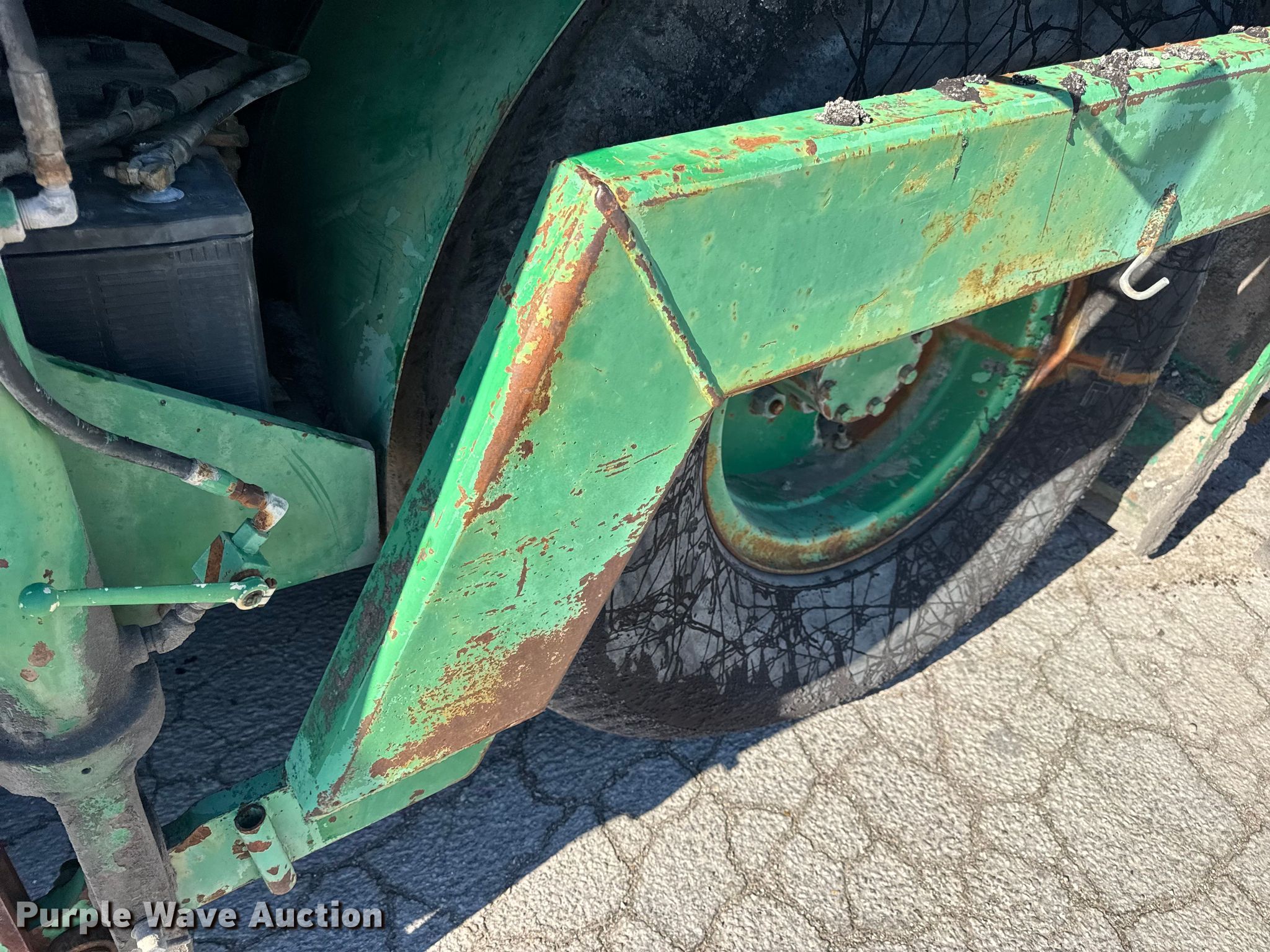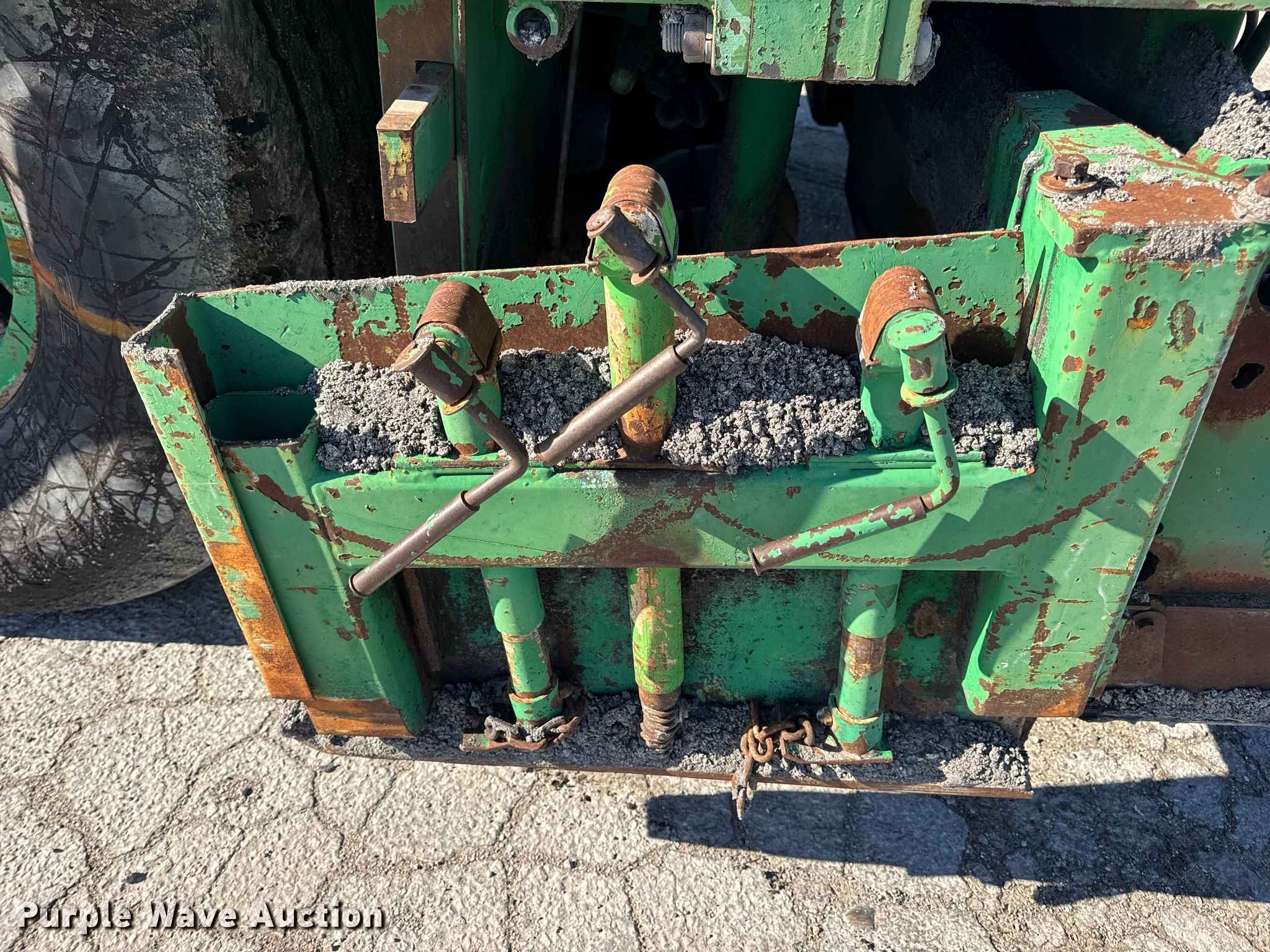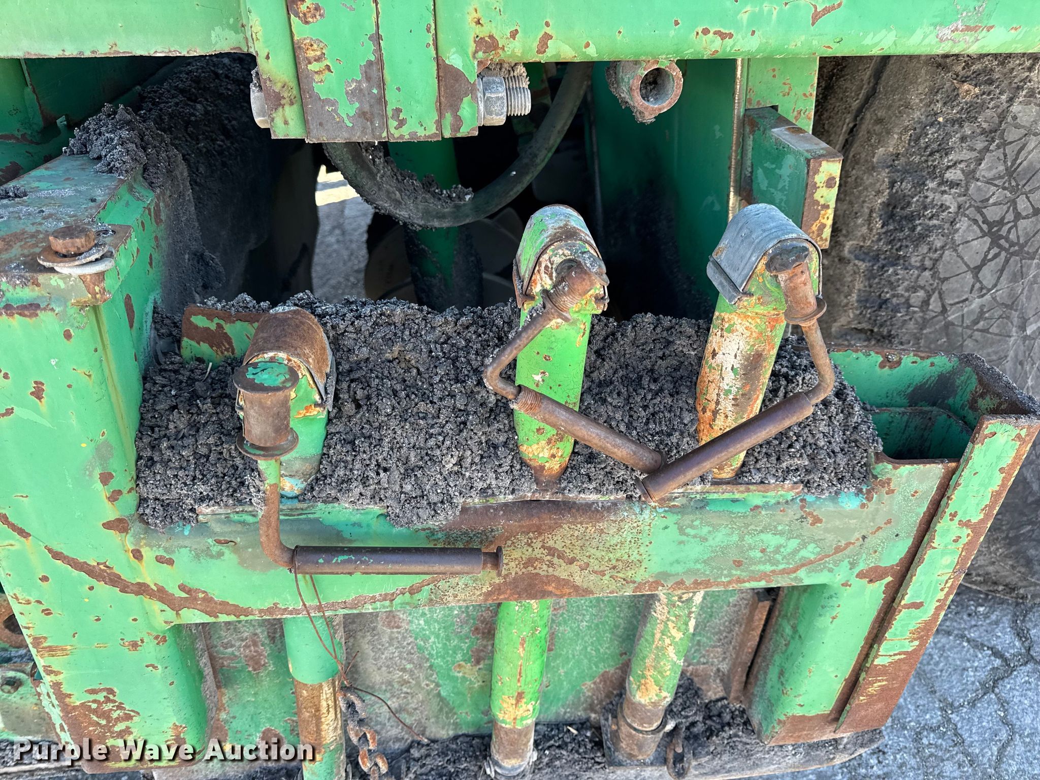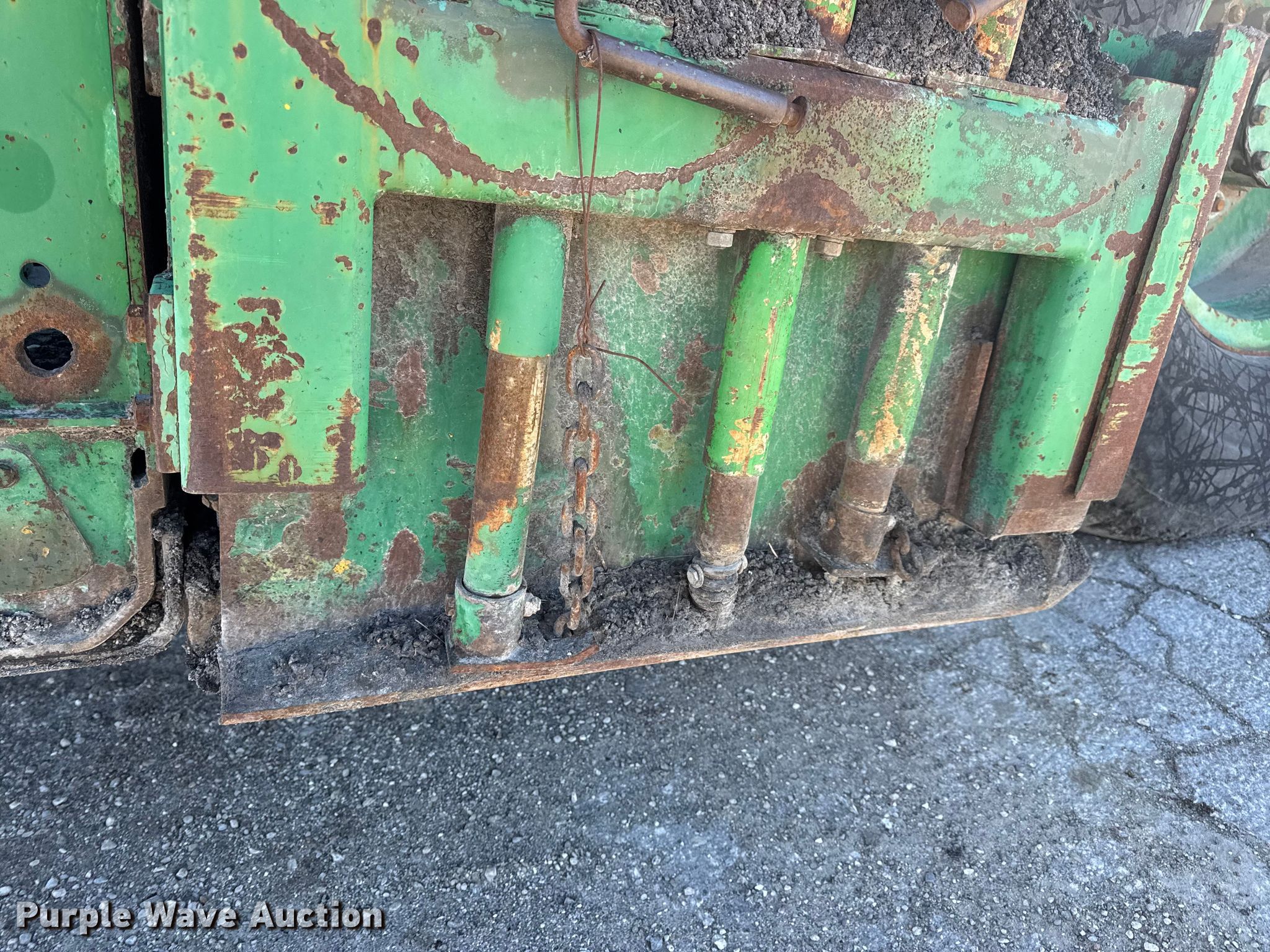 Barber-Greene BG240B screed. Hours: 5,290 on meter, Serial: BG240B666. Engine John Deere 4239TF001, Serial: T04239T221000, Cylinders: 4, Fuel type: Diesel. Transmission Hydrostatic. Features Screed Barber-Greene, Serial: SV100719, Paving width: 10' to 16', Extensions Quantity: 2, Screed heater: Diesel, Material conveyor Width: 57", Grade and slope controls. Tires Size: 16.00-24. Notes Hydraulic Leak, Non-operational Right side throttle controls. Christensen Construction. Columbia, MO 65202