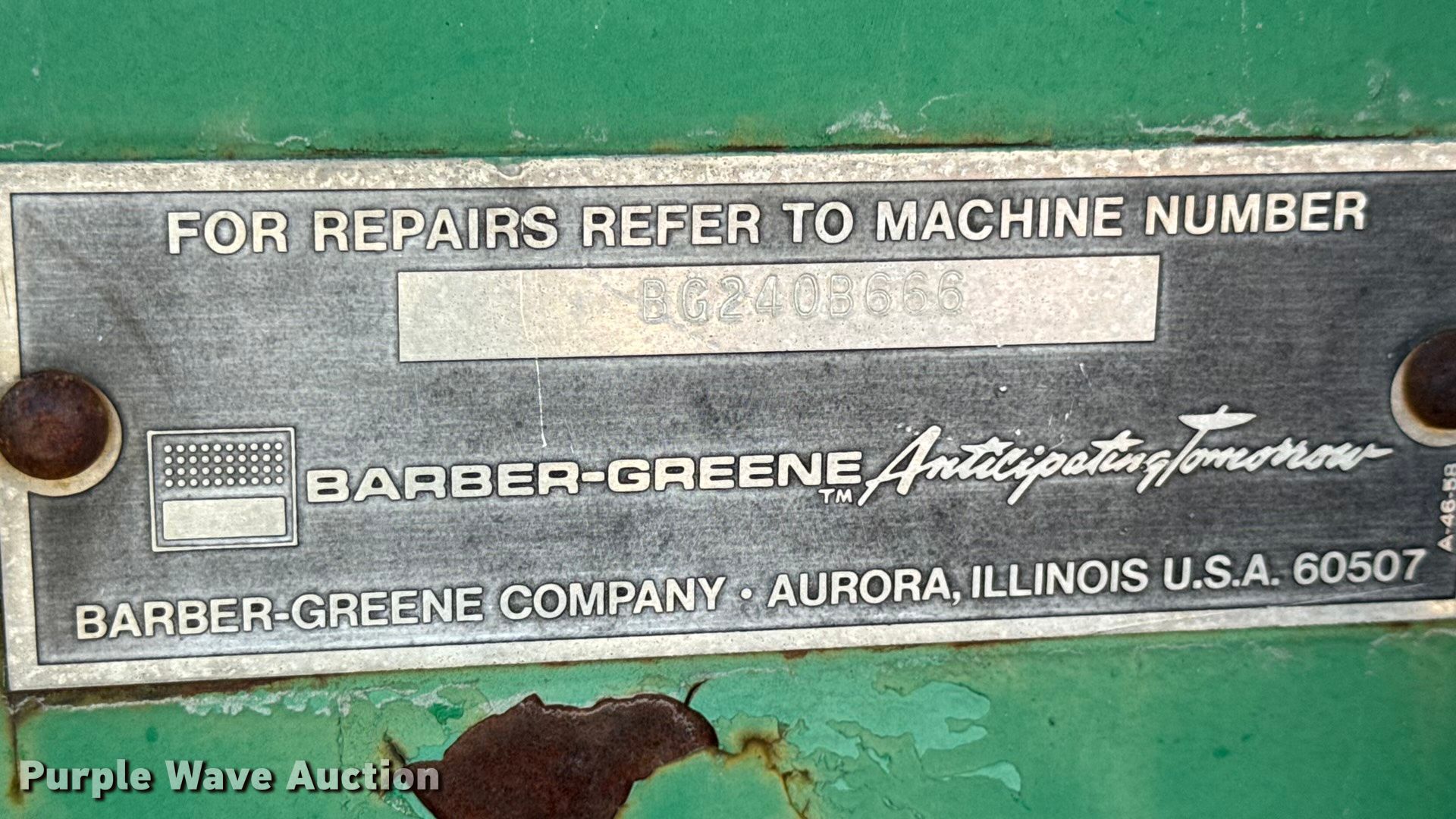 Purple Wave is selling a used Paver or Screed in Missouri. This item is a Barber-Greene BG240B screed with the following: Hours: 5,290 on meter, Serial: BG240B666
