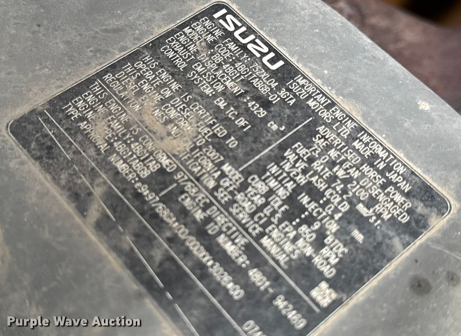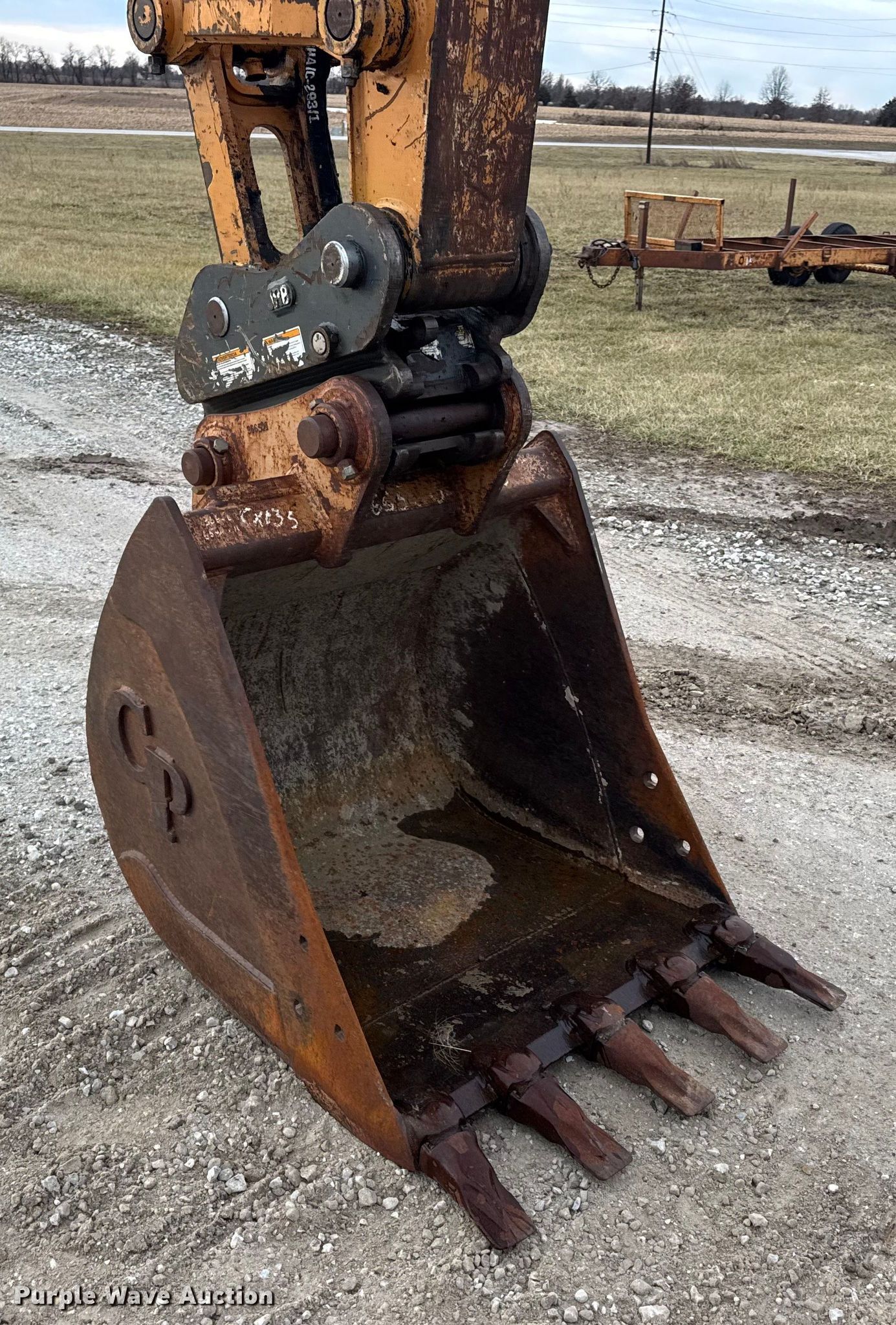 2007 Case CX135SR excavator. Hours: 2,385 on meter, Serial: DAC151580. Engine Isuzu BB-4BG1T, Cylinders: 4, Fuel type: Diesel. Transmission Hydrostatic, Two speed travel. Operators station Enclosed cab, AC, Heat. Features Auxiliary hydraulics, Boom Standard, Stick Stick length: 7' 11", Quick coupler: Hydraulic JRB, Bucket CP, Width: 36", Teeth: 5. Tracks Width: 19.5", Track pads: Rubber. Lawson Construction. Kirksville, MO 63501