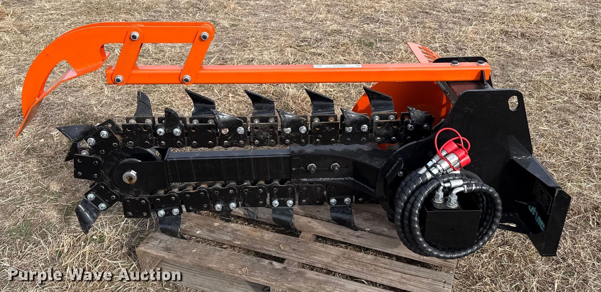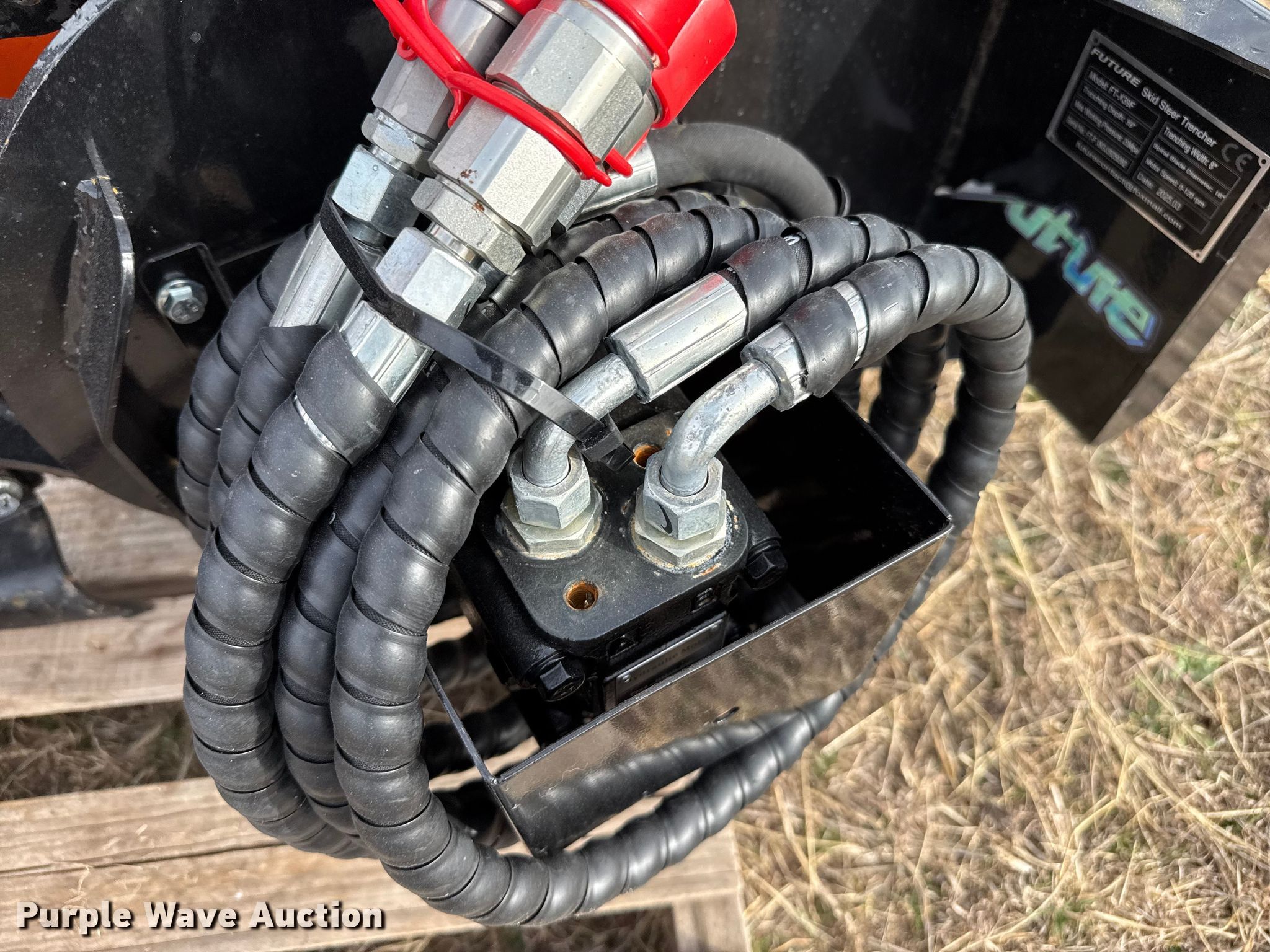 Purple Wave is selling a used Skid Steer Attach. in Oklahoma. This item is a 2025 Future FT-X39F compact utility loader trencher with the following: Serial: FT-F XKGJ39250362, Estimated dig depth: 30", Cutting width: 8", Teeth: Dirt, Manual crumber