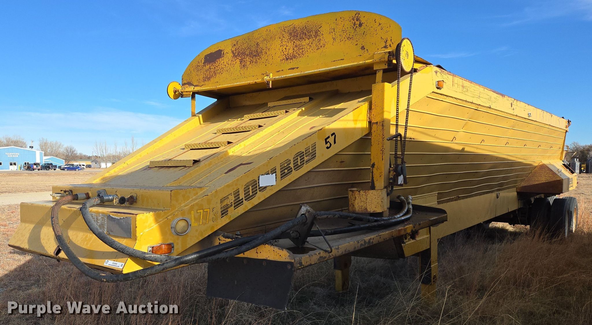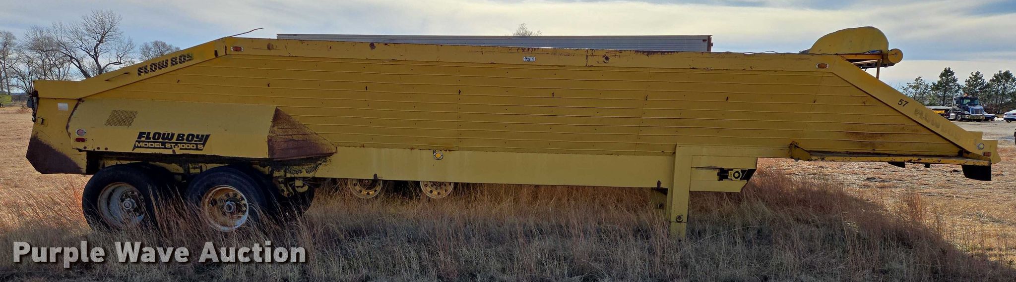This 1986 Flowboy ST-1000S belt trailer will sell to the highest bidder regardless of price.