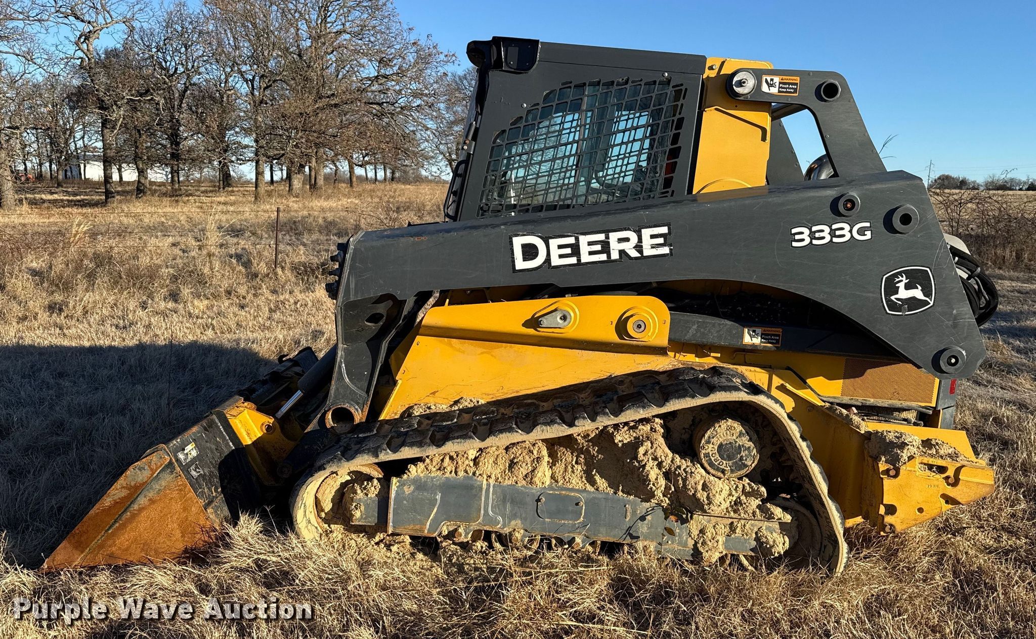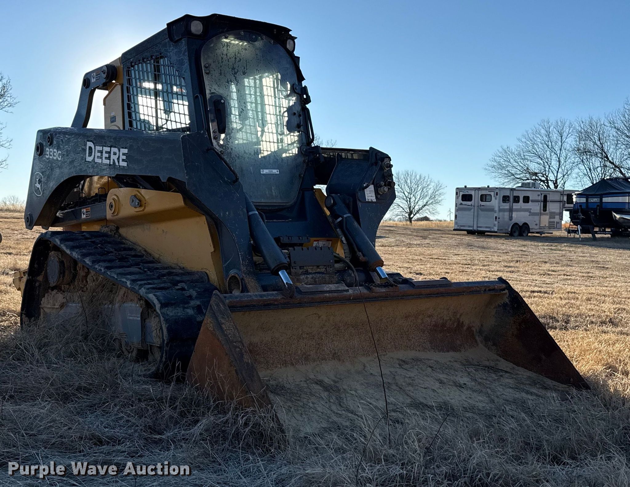 Purple Wave is selling a used Skid Steer Loader in Oklahoma. This item is a 2020 John Deere 333G tracked skid steer loader with the following: Hours: 2,114 on meter, Serial: 1T0333GMVKF365392, Unit #: 5-808930