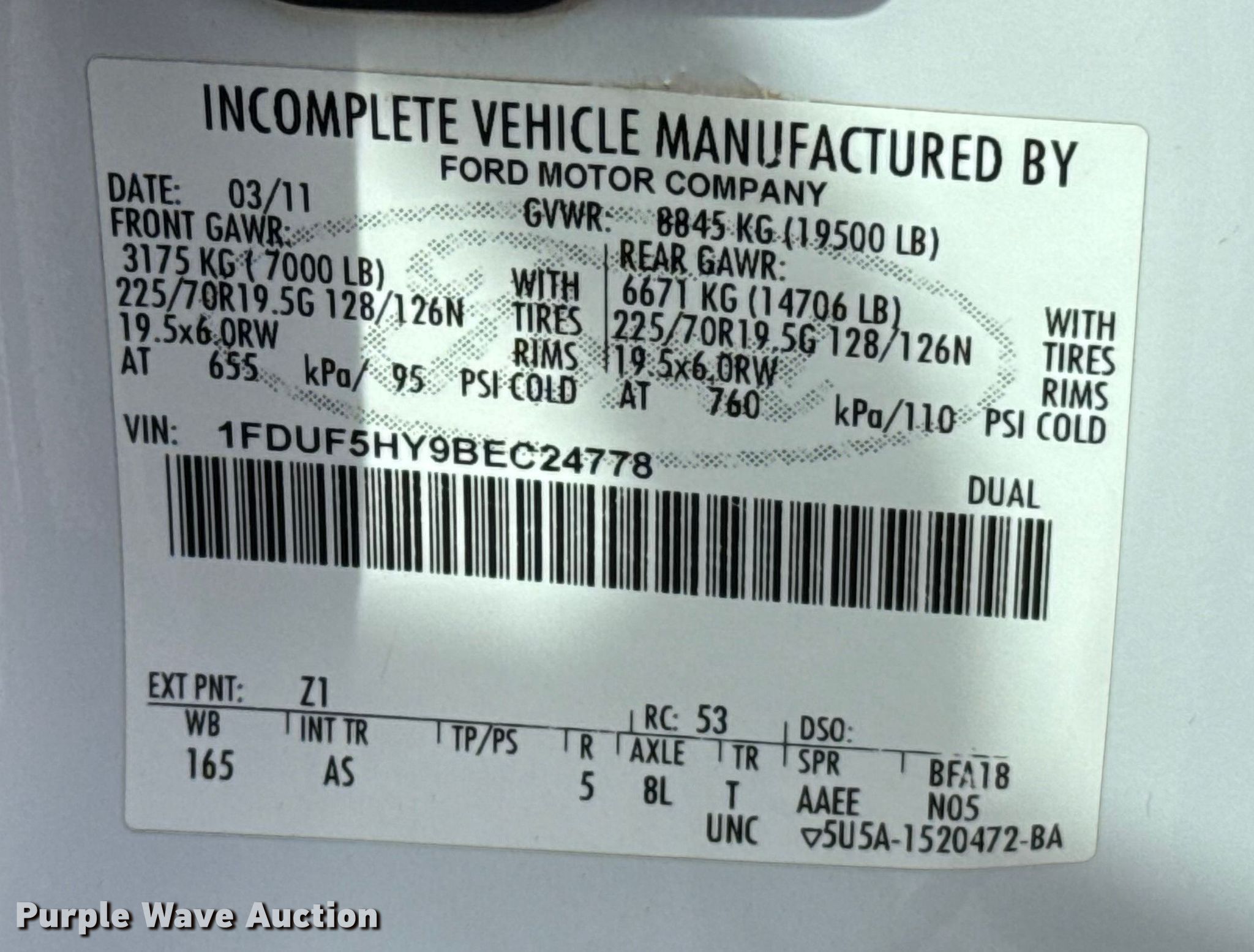 Purple Wave is selling a used 3/4 or 1 Ton Pickup or Van in Oklahoma. This item is a 2011 Ford F550 Super Duty XL flatbed truck with the following: Miles: 20,162 on odometer, Hours: 713 on meter, VIN: 1FDUF5HY9BEC24778