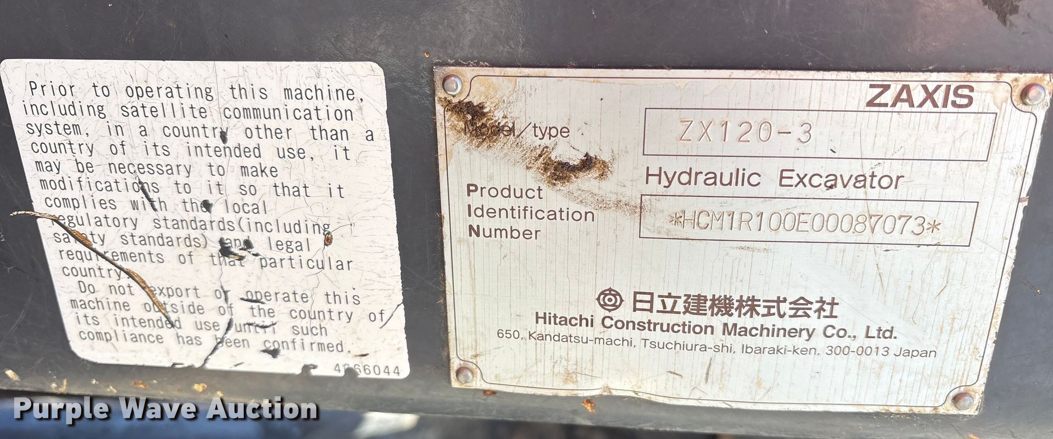 Take a look at this used 2012 Hitachi Zaxis 120-3 excavator being sold on February 12th, 2026 in the Thursday February 12 Construction Equipment Auction made by Hitachi. Take a look at all of the item information below or take a look at similar auctions for Excavators.