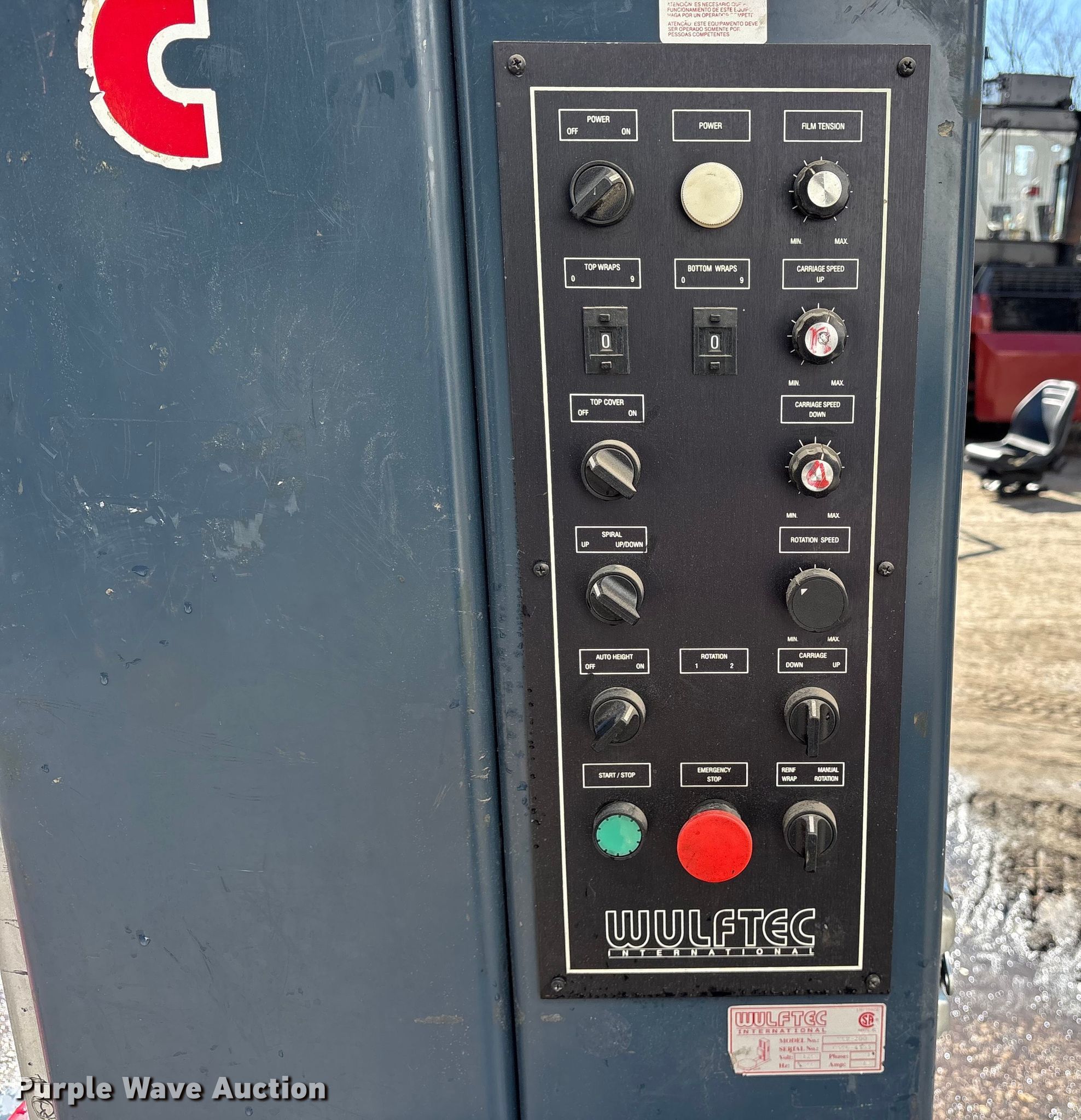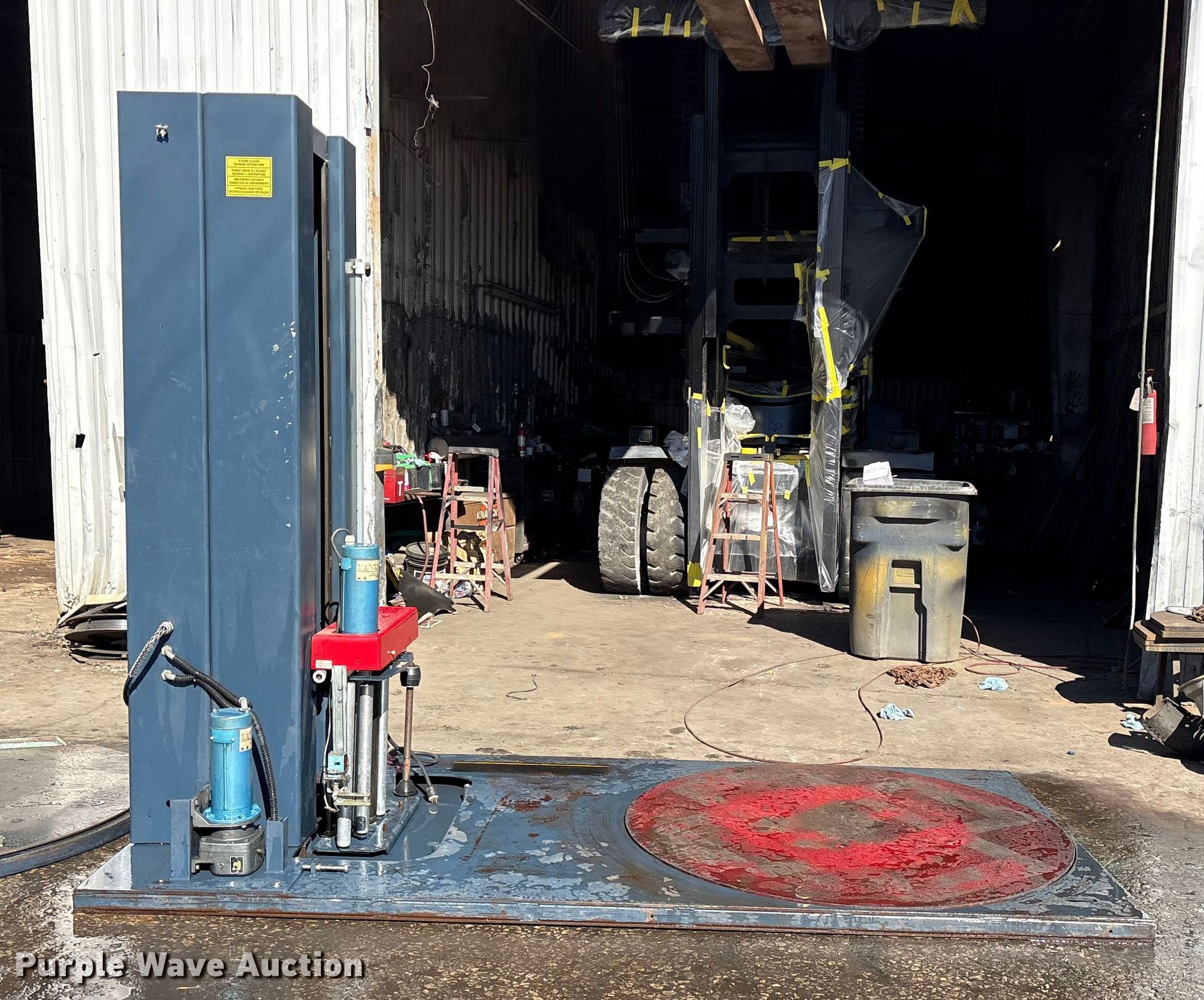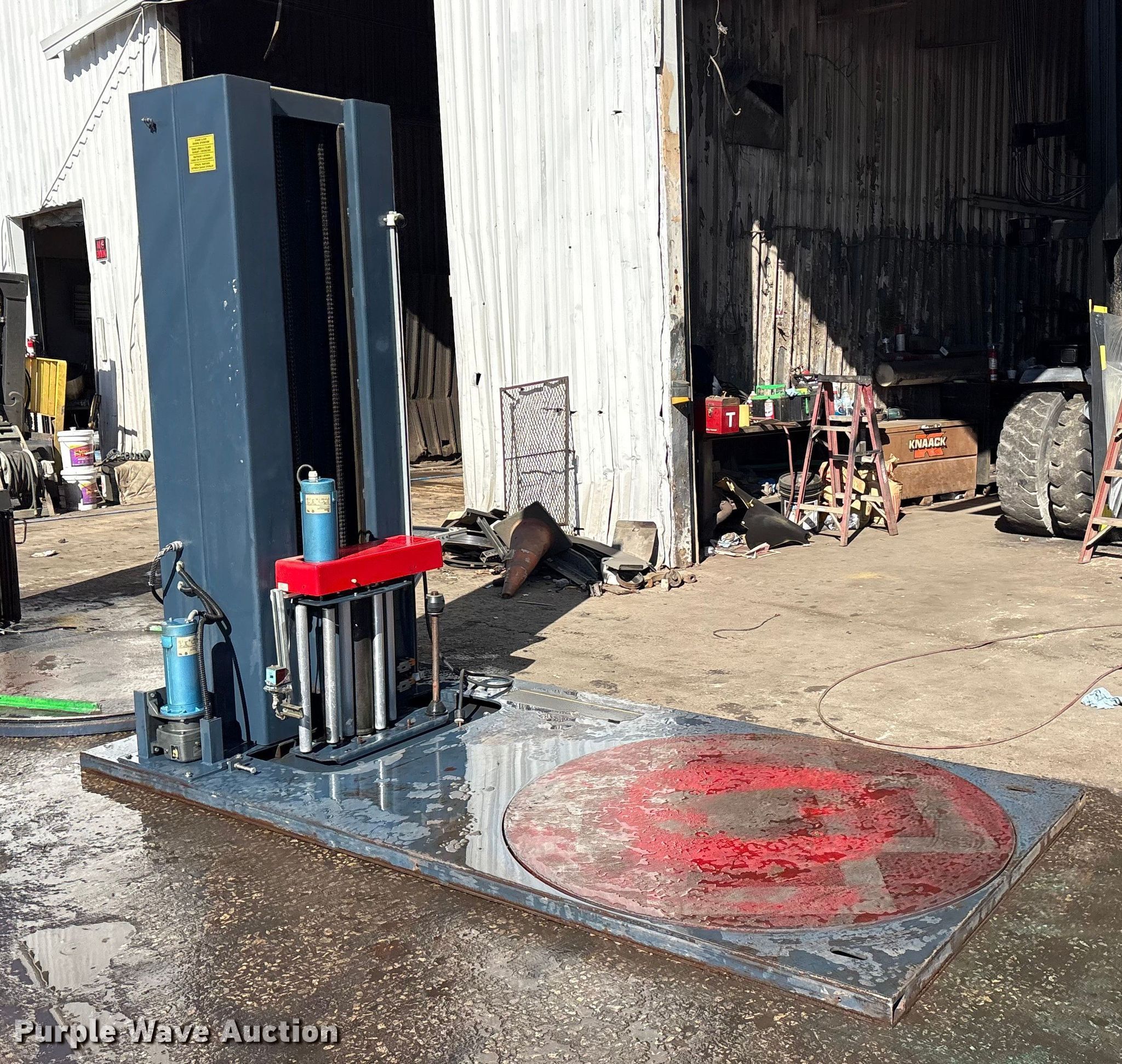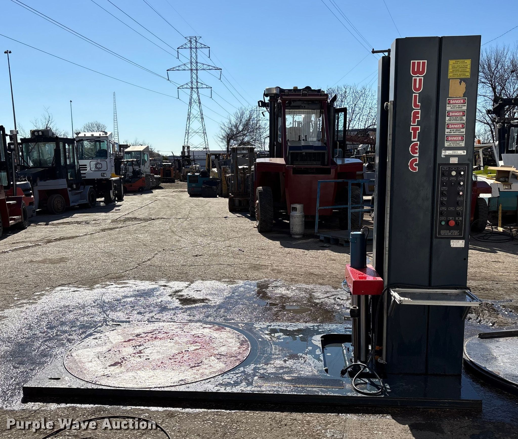 Purple Wave is selling a used Tools in Texas. This item is a Wilfred International WLP-200 pallet wrap machine with the following: Wheel size: 4'10", Volts: 120, Phase: 1, Serial: 0599-4535