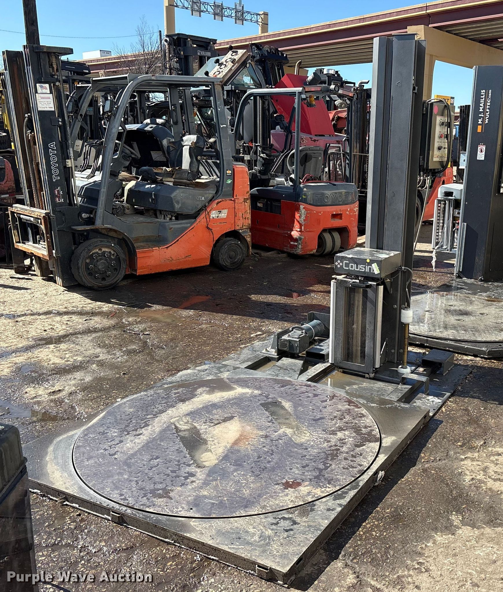 Purple Wave is selling a used Tools in Texas. This item is a Cousins LP2100 wrap machine with the following: 57" wheel, Volts: 115, Phase: Single, Serial: 080104-2L-4873
