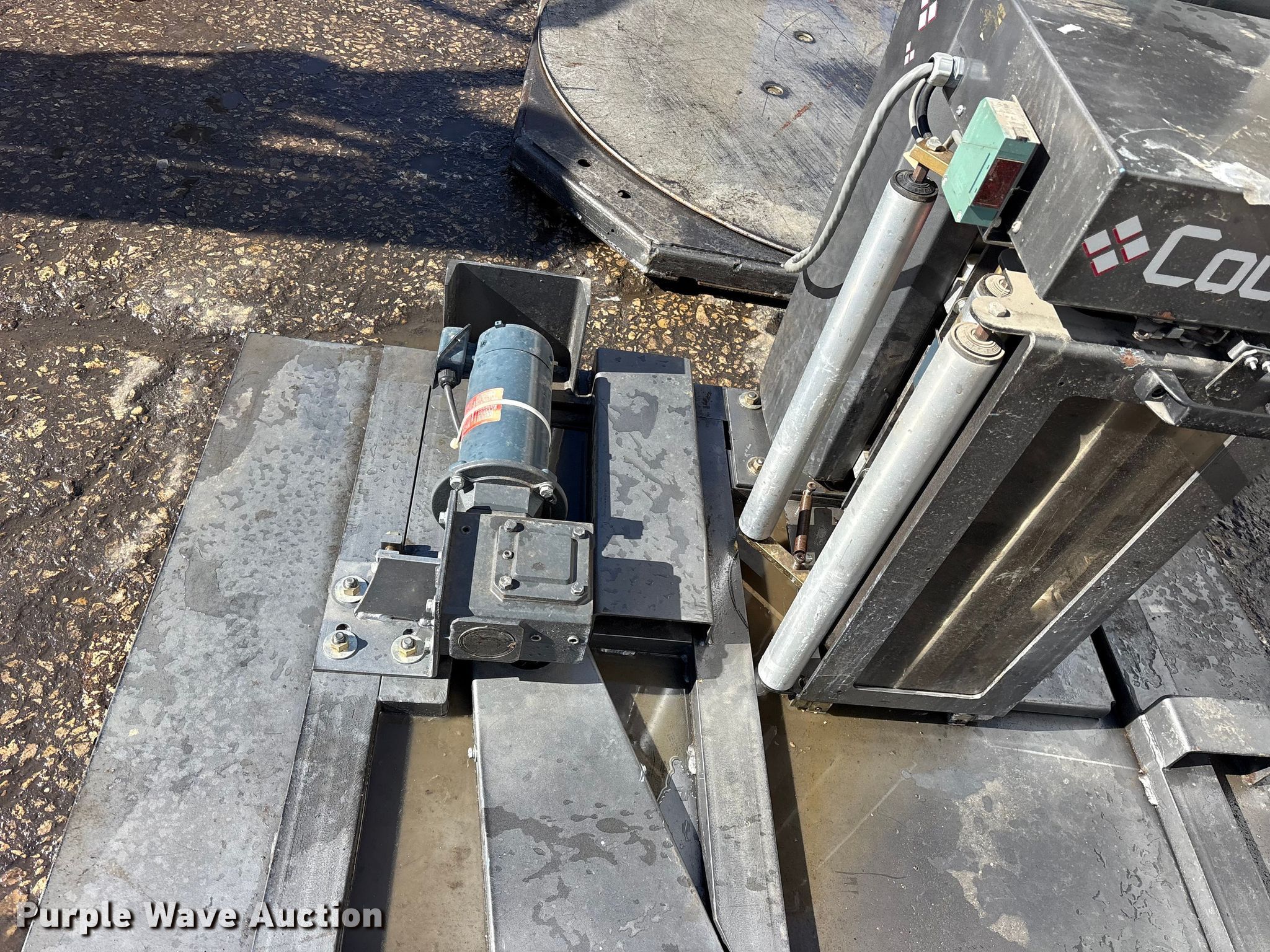 Cousins LP2100 wrap machine. 57" wheel, Volts: 115, Phase: Single, Serial: 080104-2L-4873. Notes Non-operational unit. Scott's Equipment. Irving, TX 75061