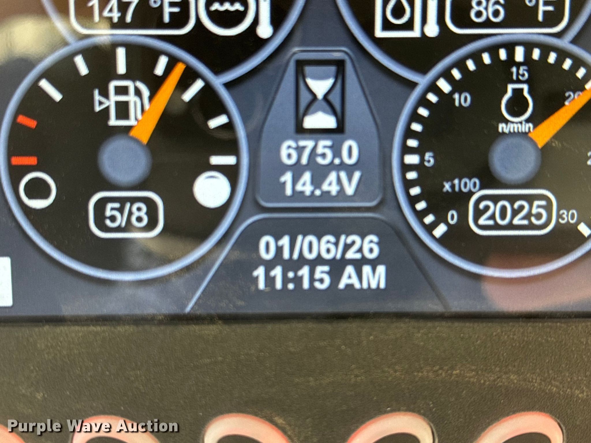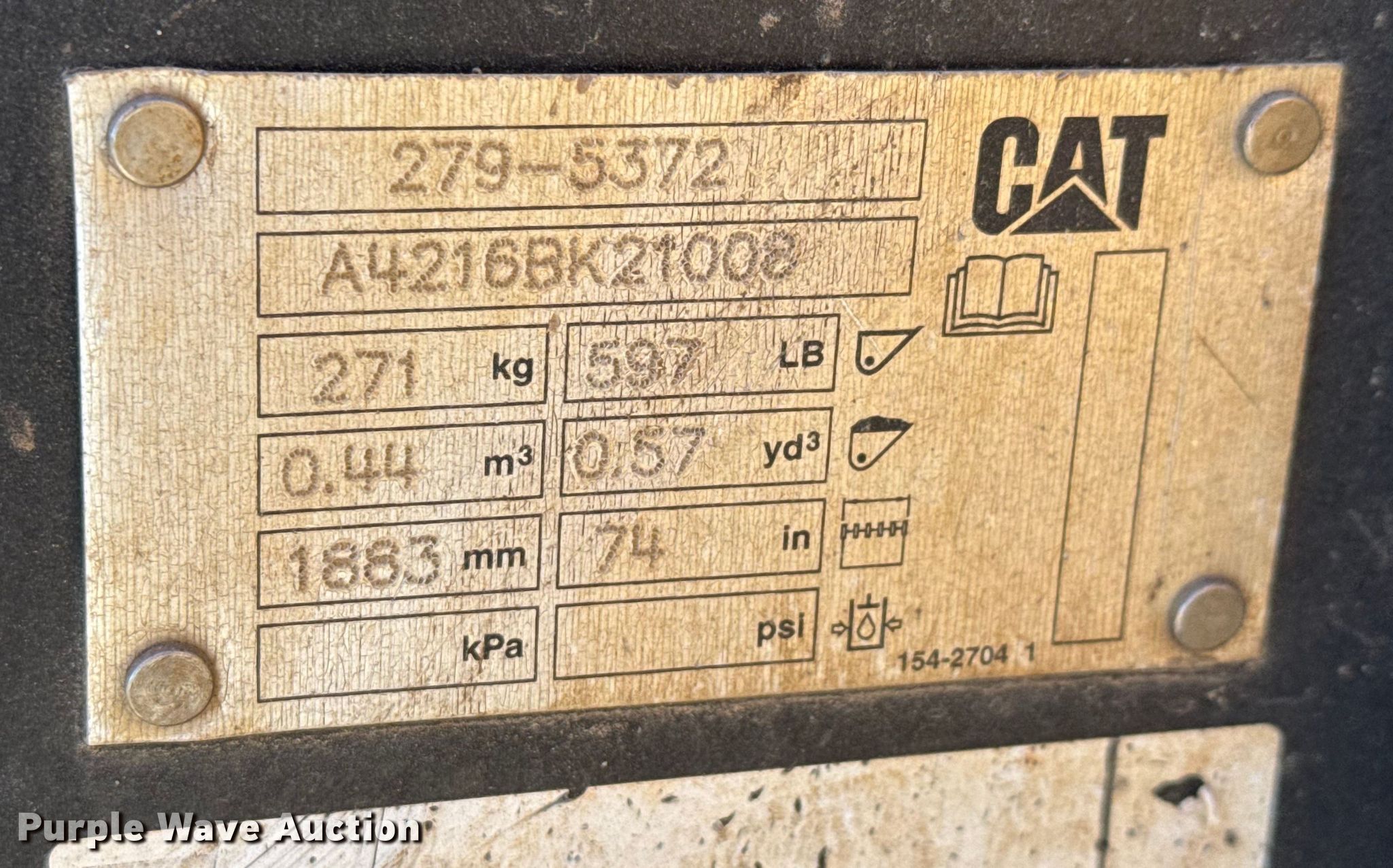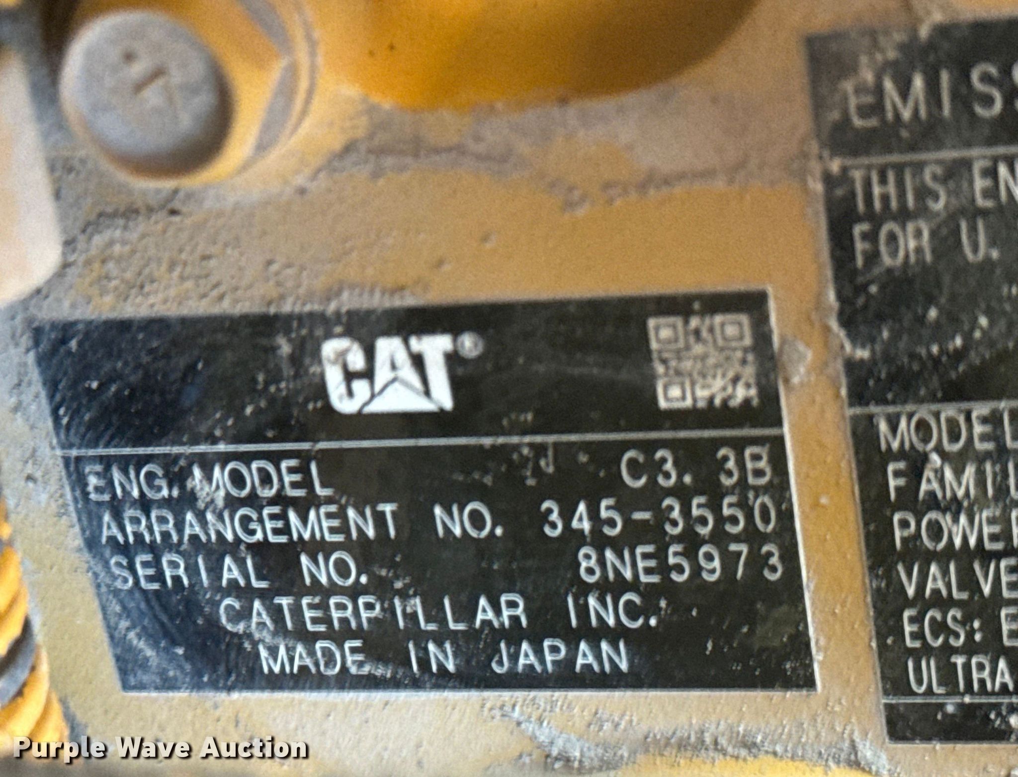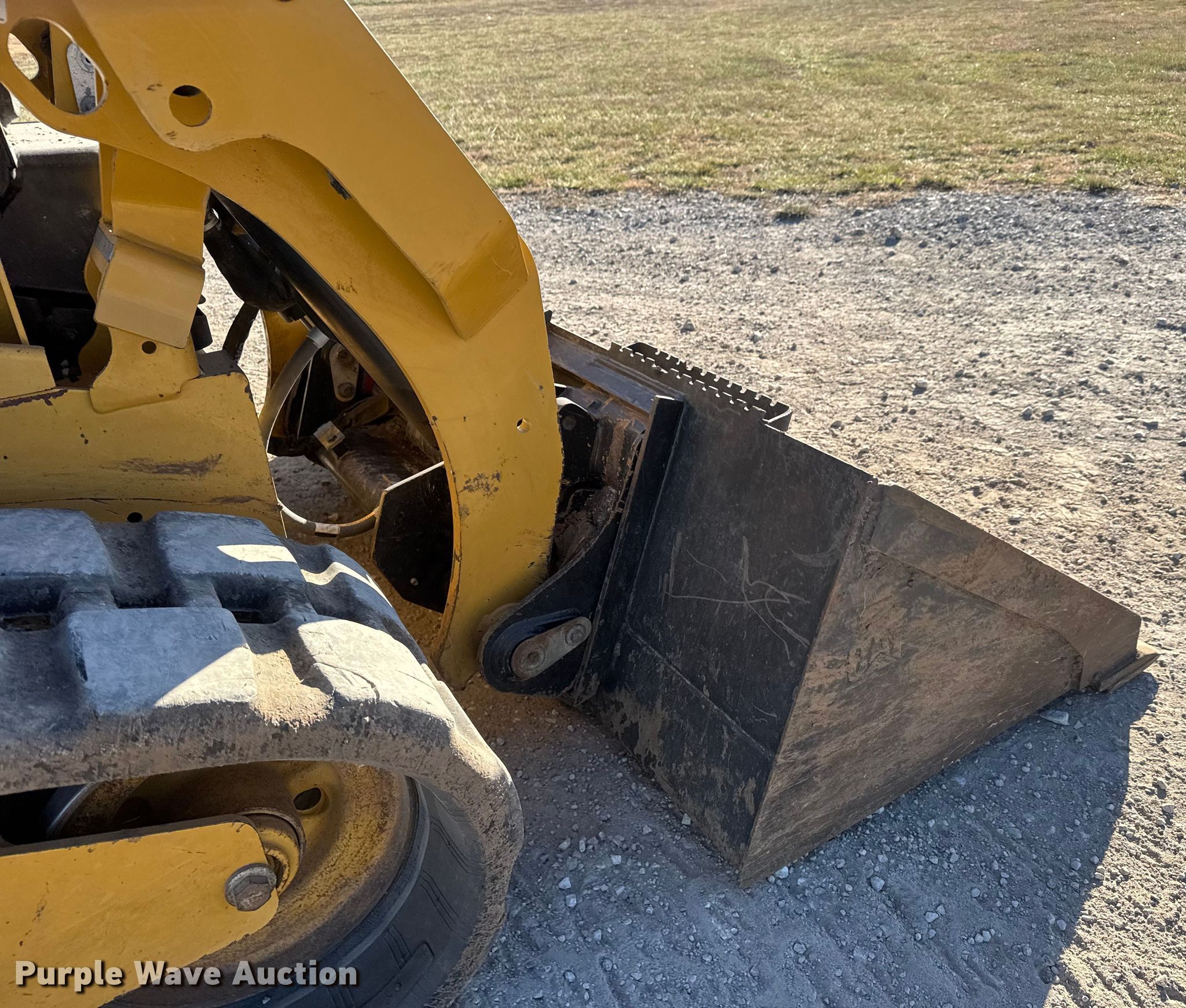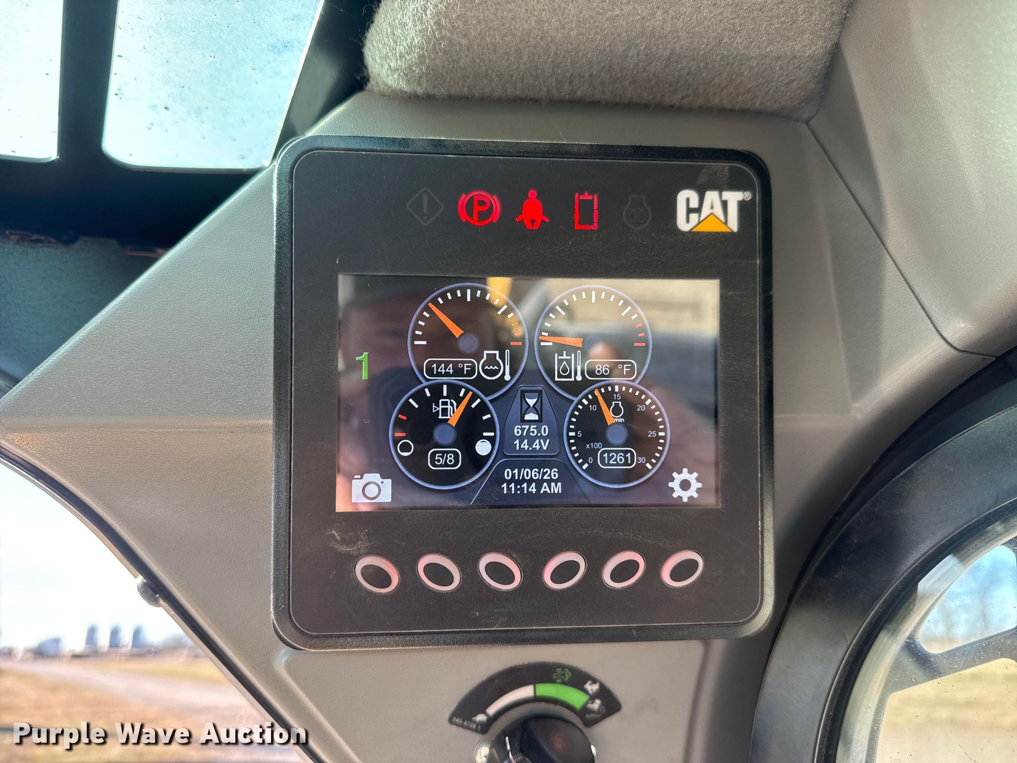 2022 Caterpillar 259D3 tracked skid steer loader. Hours: 675 on meter, Serial: CAT0259DCCW920589. Engine Caterpillar C3.3B-CR-T-EF04, Serial: 8NE5973, Displacement: 3.3L, Cylinders: 4, Fuel type: Diesel. Transmission Hydrostatic, Two speed travel. Operators station Enclosed cab, AC, Heat, Backup camera, Bucket control: Hand, Pattern changer, Electronic Monitoring System panel. Features Auxiliary hydraulics, Auxiliary electrical outlet, Quick coupler: Hydraulic, Counter weights, Bucket Caterpillar, Width: 74", Cutting edge: Bolt-on. Tracks Width: 15.5". Stands Farms, LLC. El Dorado, KS 67042