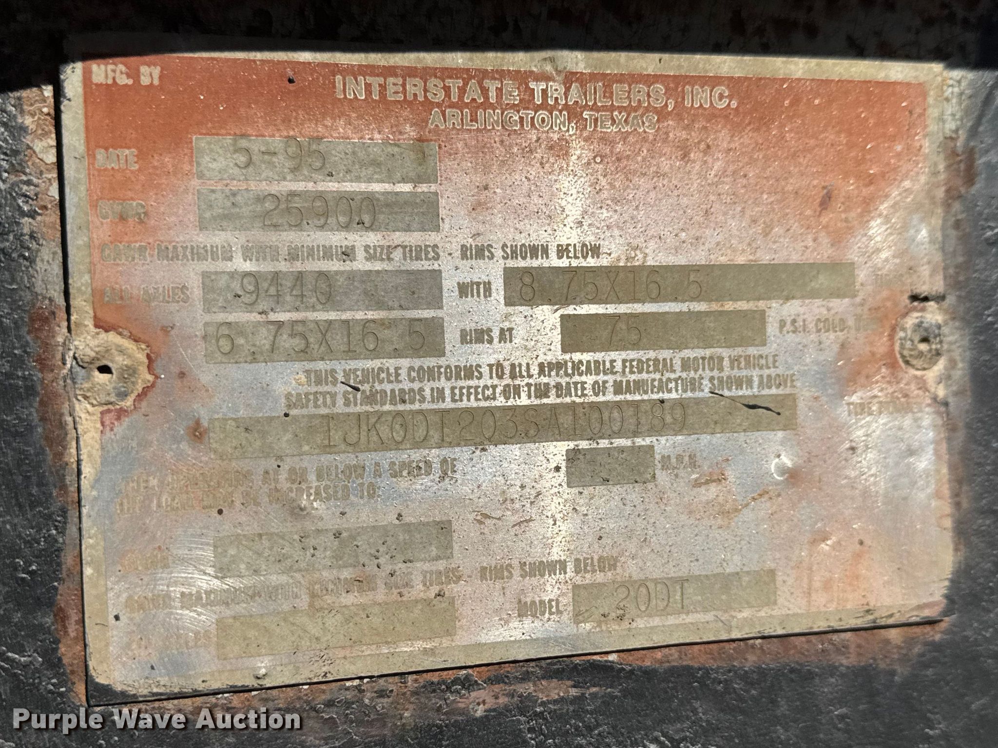 Purple Wave is selling a used Equip. Trailer in Kansas. This item is a 1995 Interstate 20DT equipment trailer with the following: VIN: 1JK0DT203SA100189