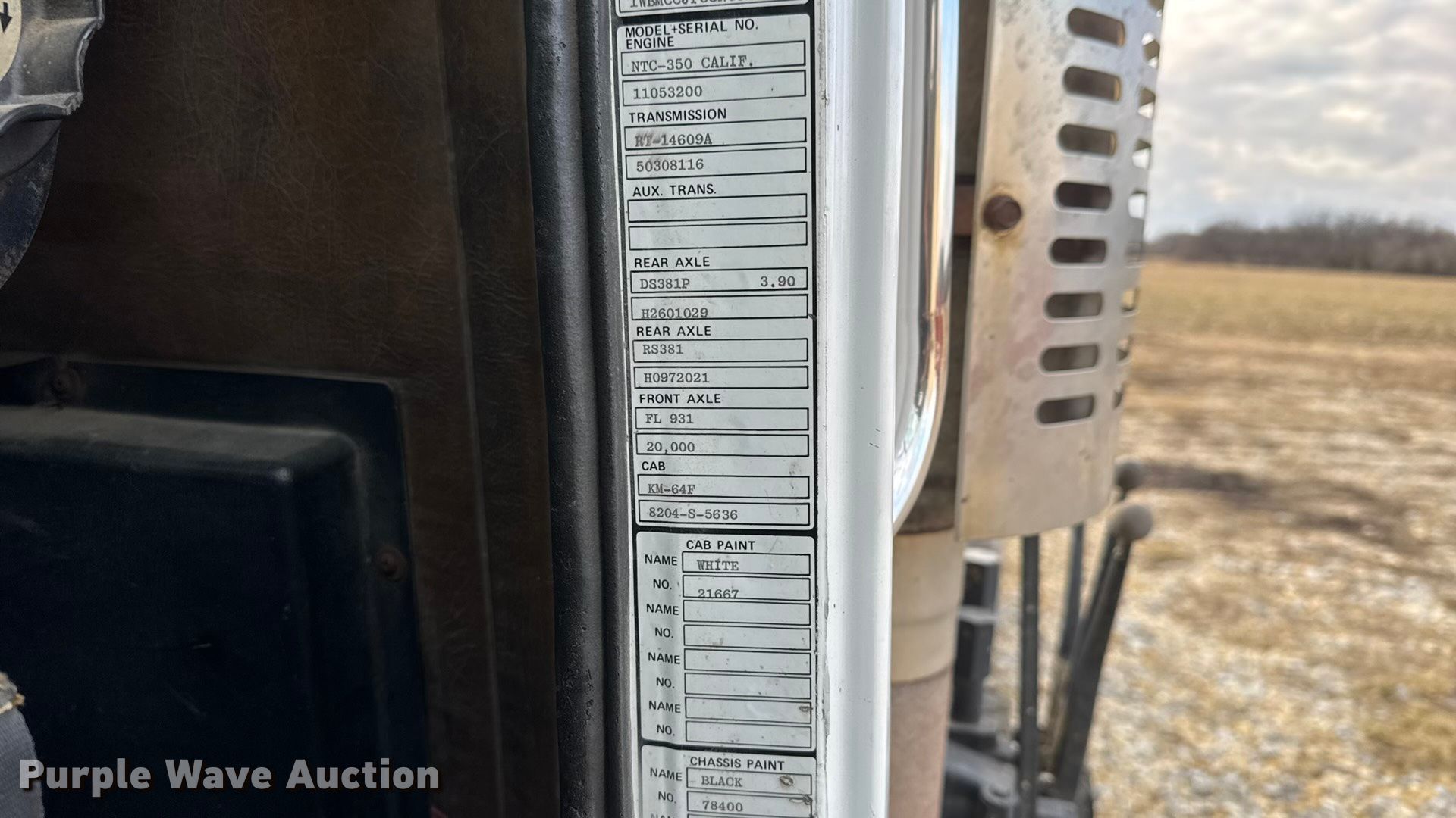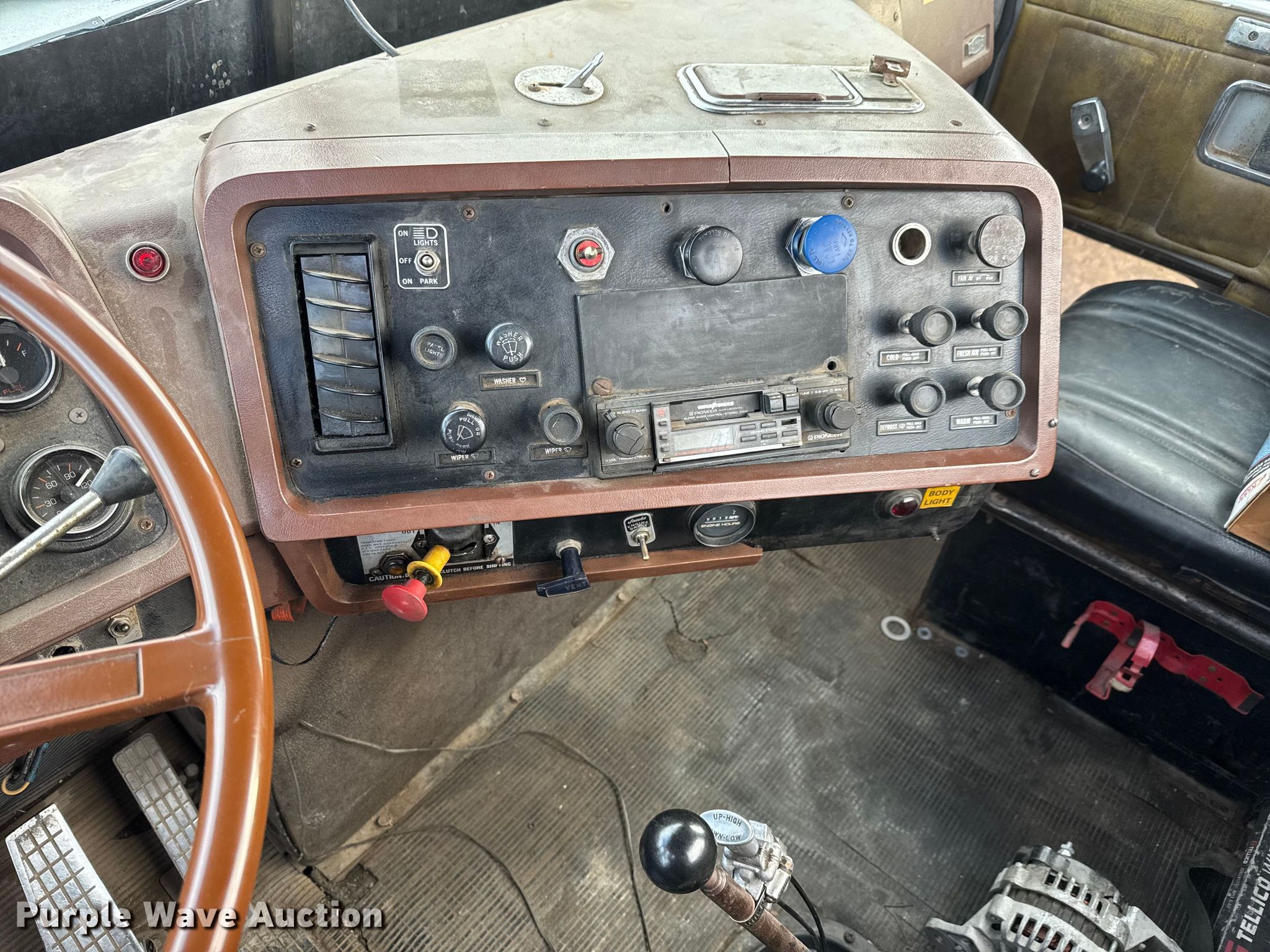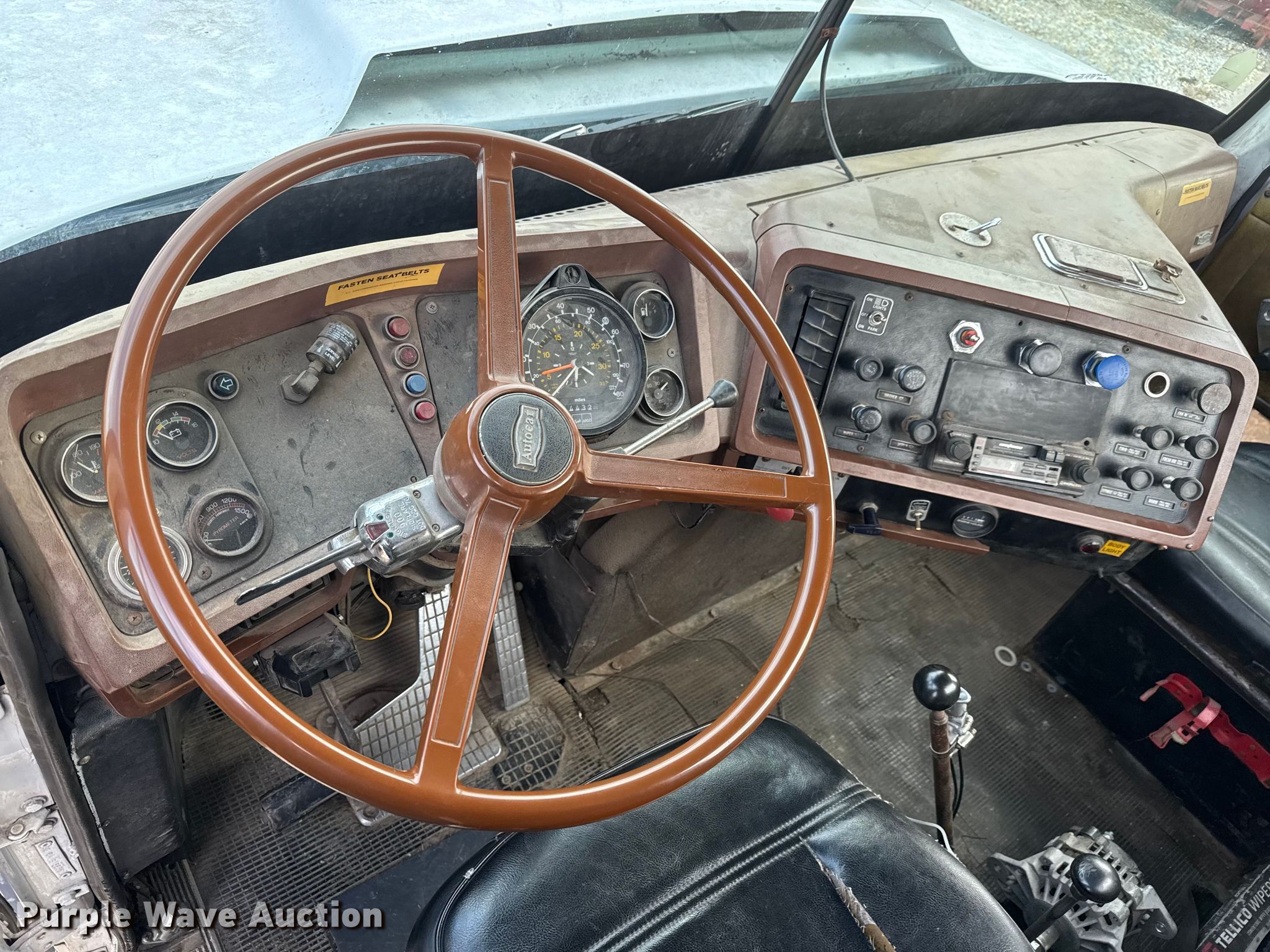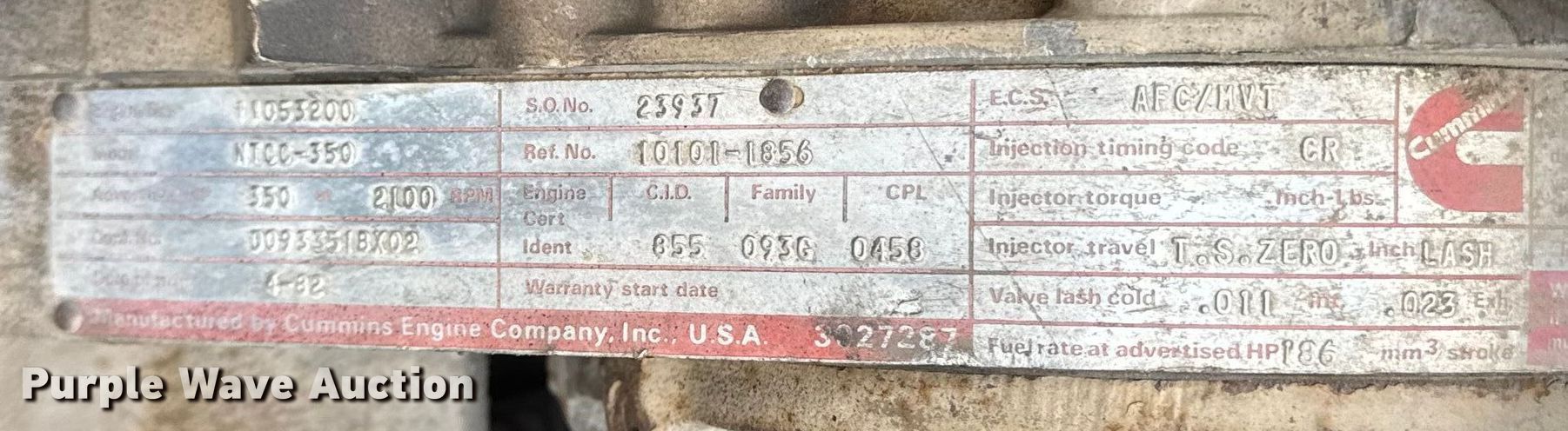 1982 Autocar Construcktor 2 roll-off container truck. Miles: 314,432 on odometer, Hours: 100,013 on meter, Actual hours unknown, Miles or hours may vary, unit still in use, VIN: 1WBMCCJF6CN054425. Engine Cummins NTCC-350, Serial: 11053200, Displacement: 855 C.I.D., Cylinders: 6, Fuel type: Diesel, HP: 325. Transmission Fuller Roadranger, Manual, Speed: 9. Chassis Axles: Tandem, Suspension: Spring over walking beam, Brakes: Air, PTO. Interior AC, Heat. Features Bed Roll-off bed, Amrep AMRO-11-22, Serial: 82128, Length: 22' 4", Width: 34", Ram: Dual, Tulsa winch. Tires Size: 11R24.5. Notes Hour meter rolled over, Non-operational AC. Kansas electronic title. Title has a lien that will be released following the close of the auction. A paper title will be printed once the lien is released. Title distribution may be delayed up to 30 days from verification of funds. Durham, KS 67438