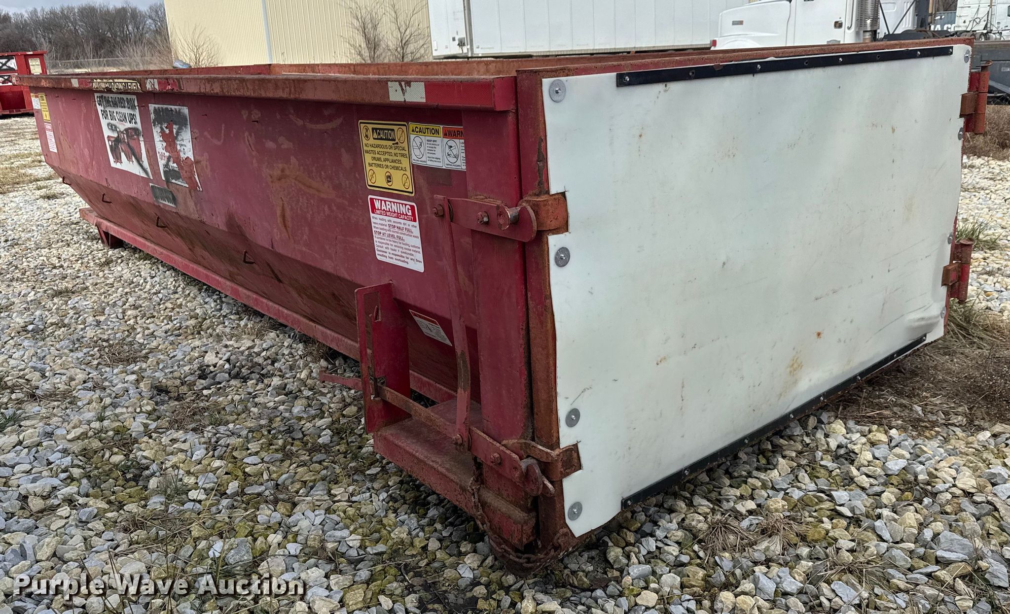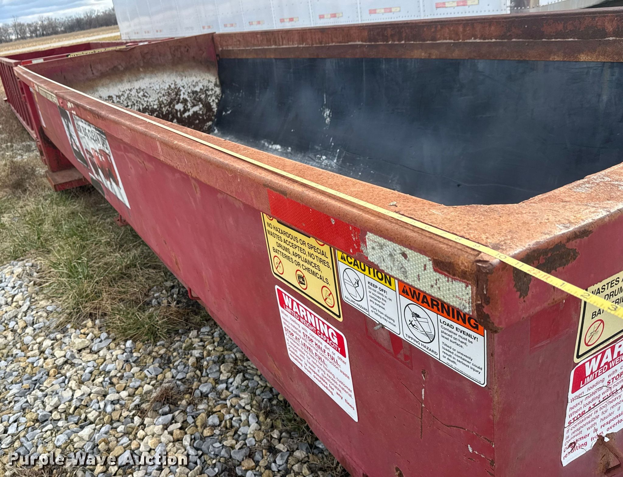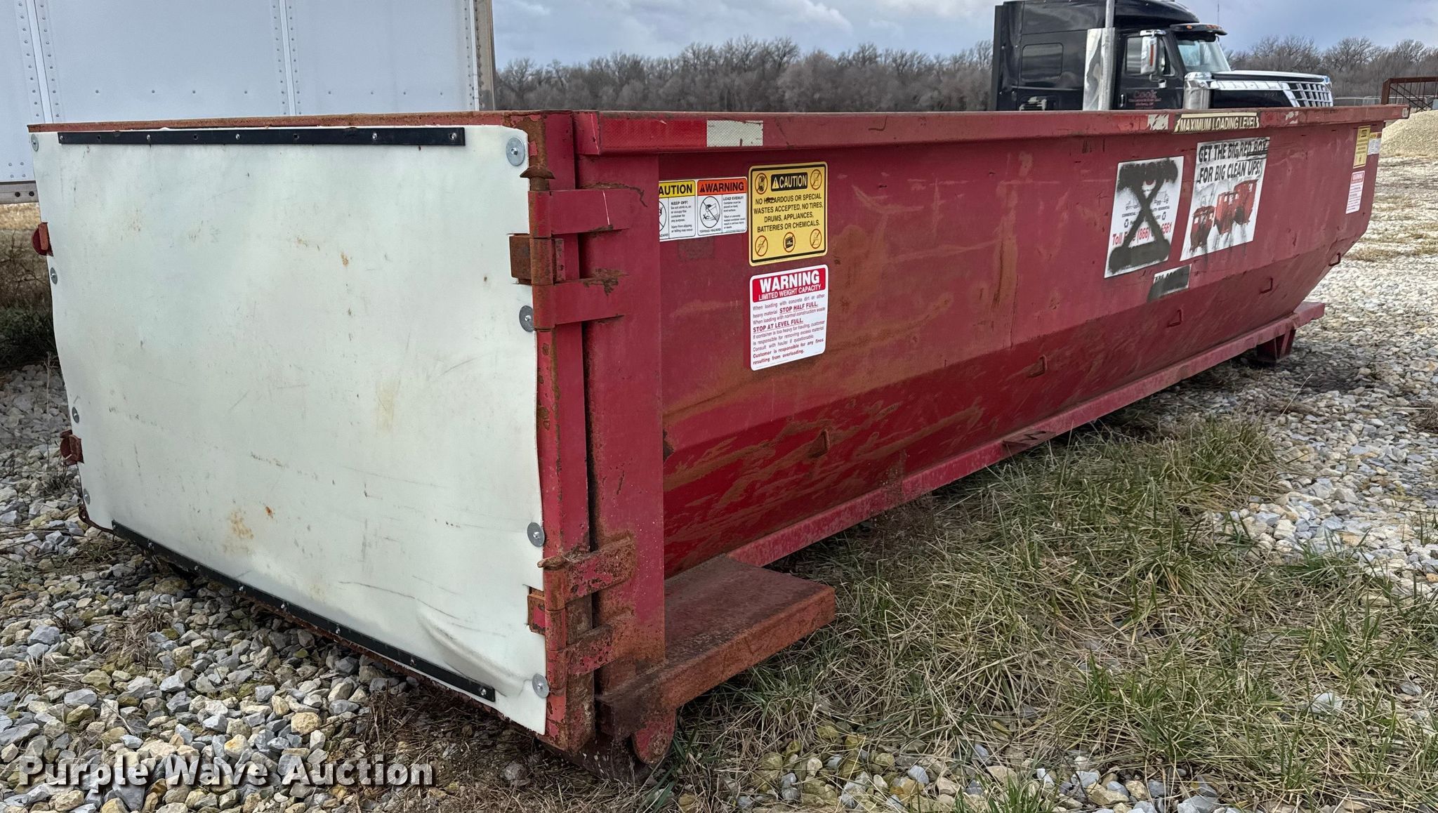 Purple Wave is selling a used Refuse or Compaction Equip. in Kansas. This item is a Roll Offs roll-off dumpster with the following: Serial: 217038 – RO0208