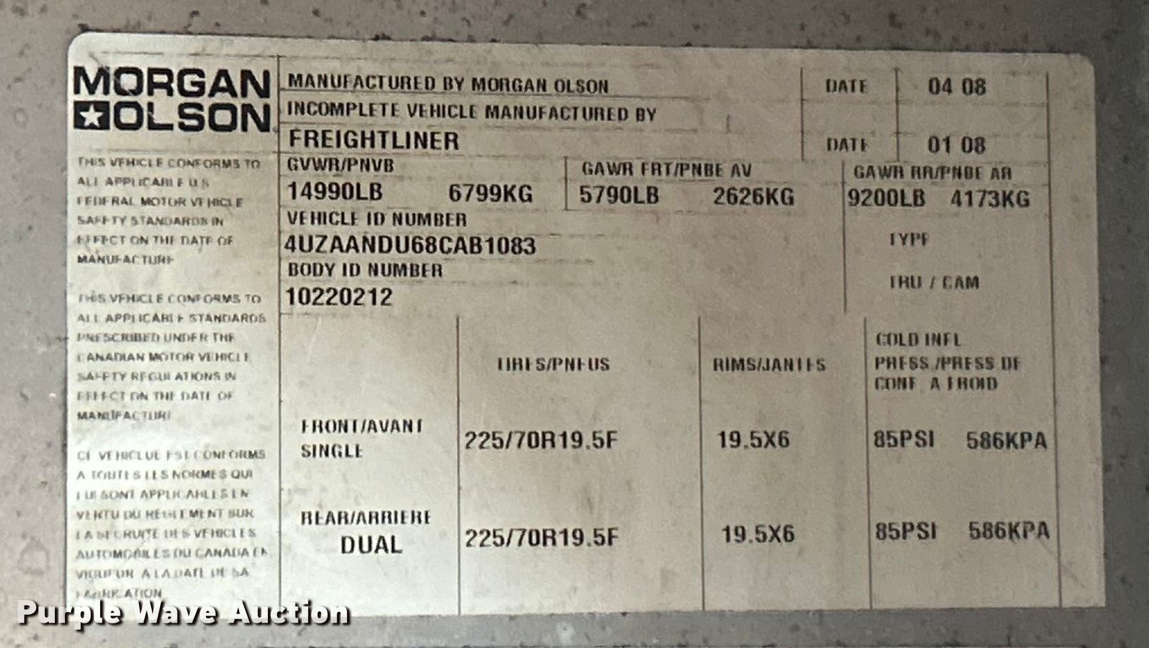 Purple Wave is selling a used Delivery Truck or Van in Illinois. This item is a 2008 Freightliner MT45 delivery van with the following: Miles: 248,869 on odometer, VIN: 4UZAANDU68CAB1083