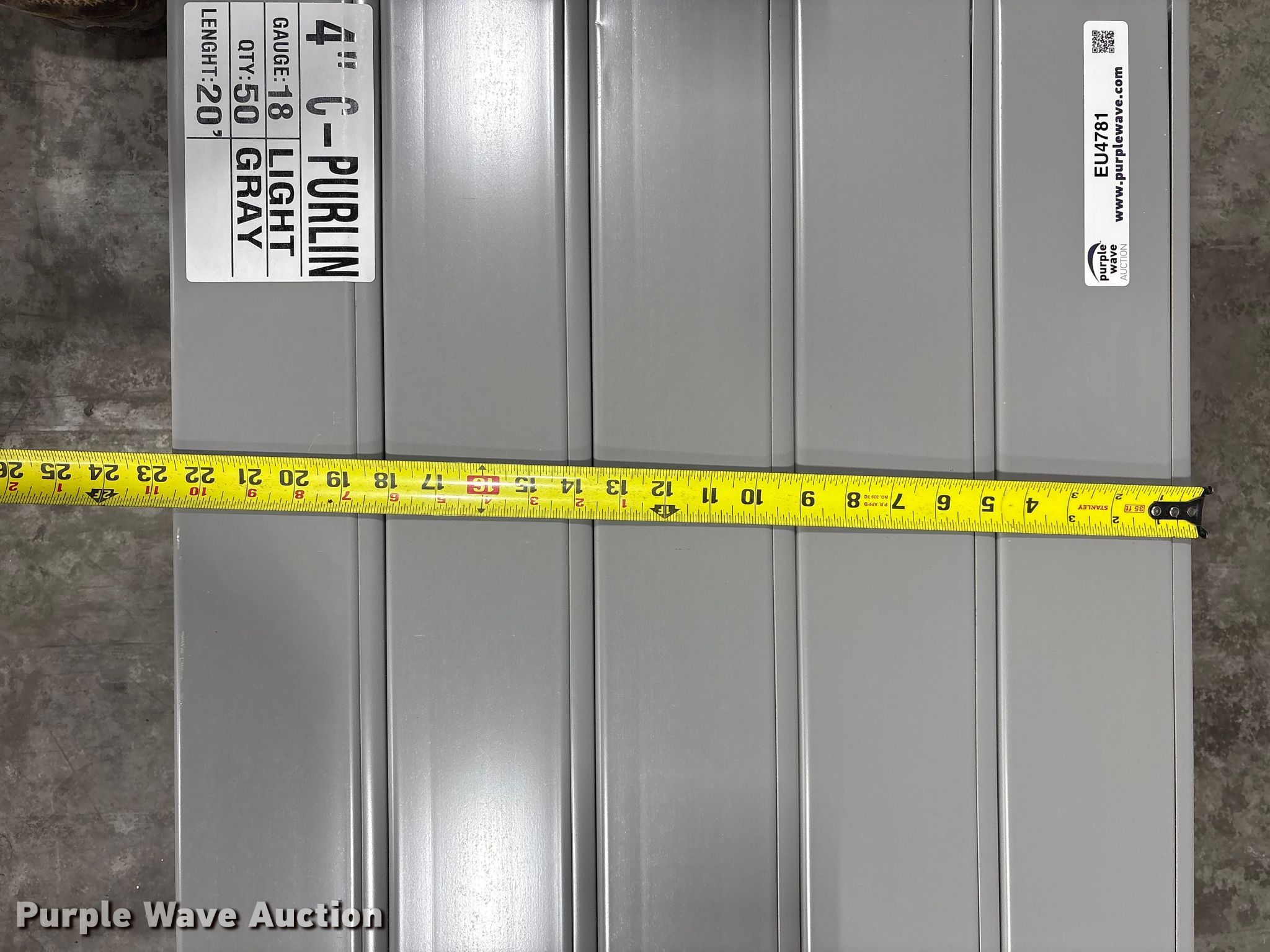 Purple Wave is selling a used Building Materials in Texas. This item is a (50) Doerksen Metal Components C-Purlins with the following: 20' L x 4" W, Possible blemishes