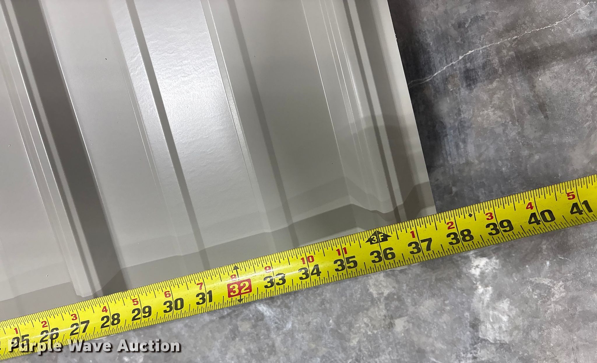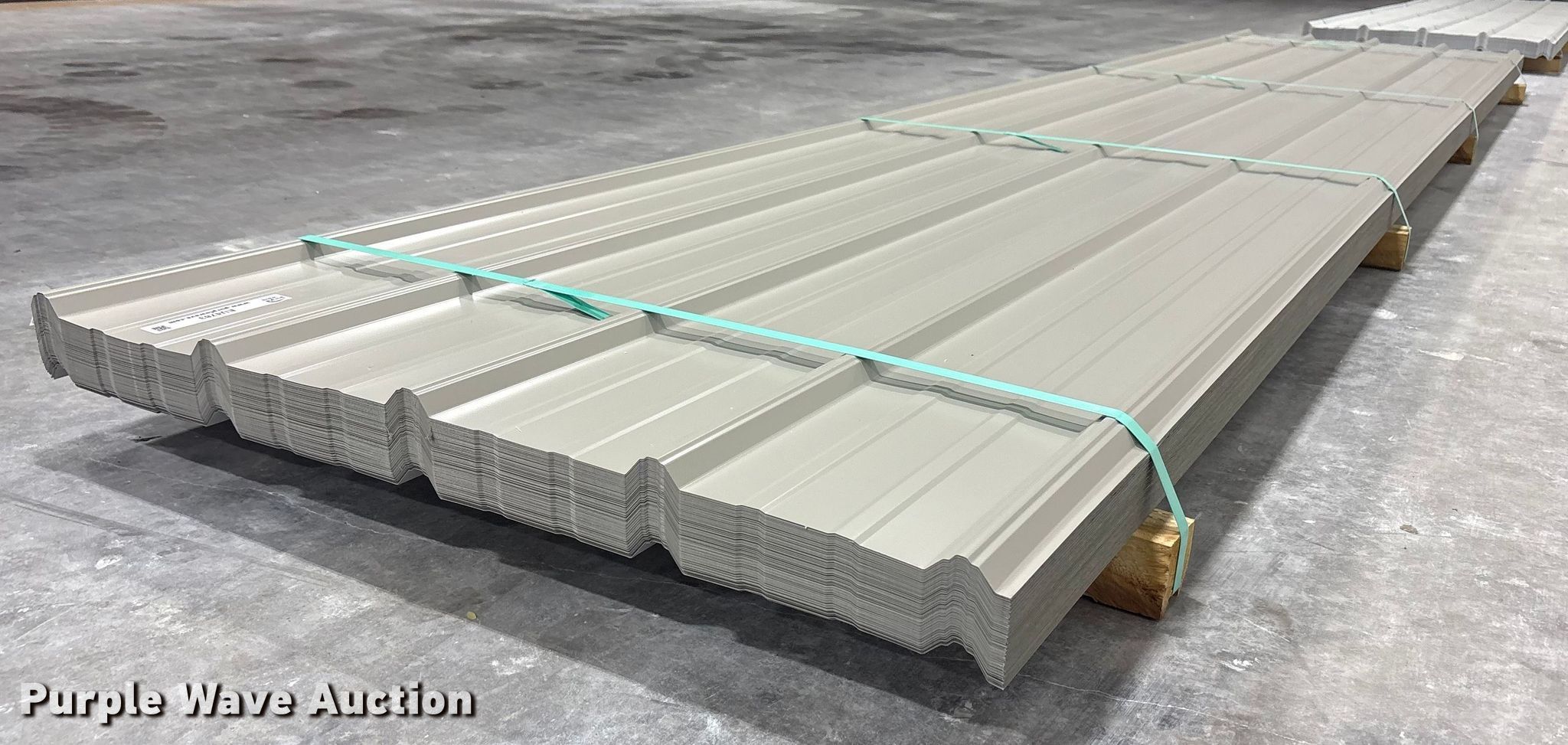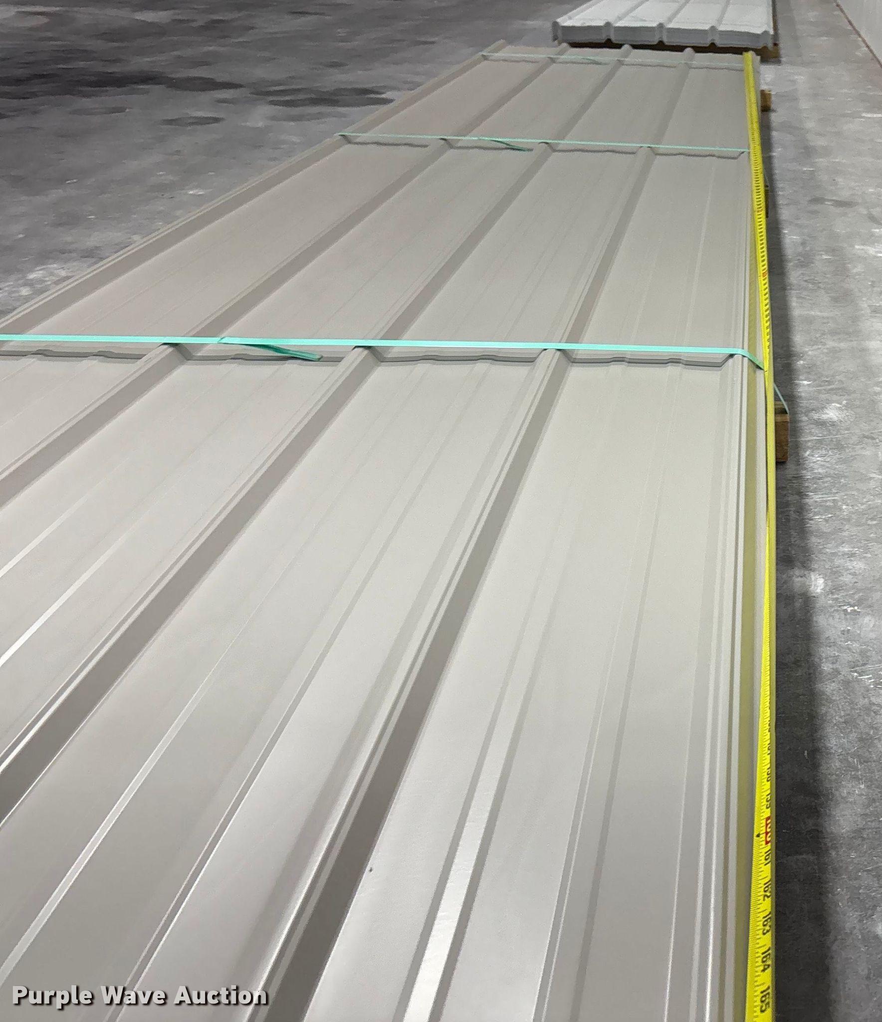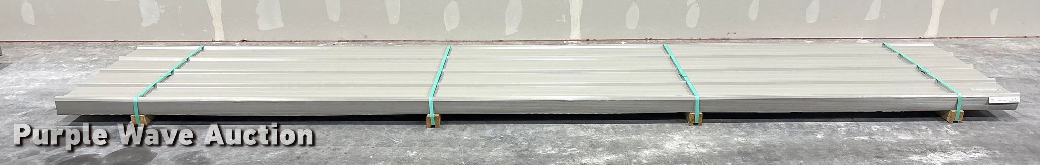Purple Wave is selling a used Building Materials in Texas. This item is a (103) sheets of Doerksen Metal Components metal siding/roofing with the following: 16' L x 36" W, Gauge: 29, Color: Ash Gray, Possible blemishes