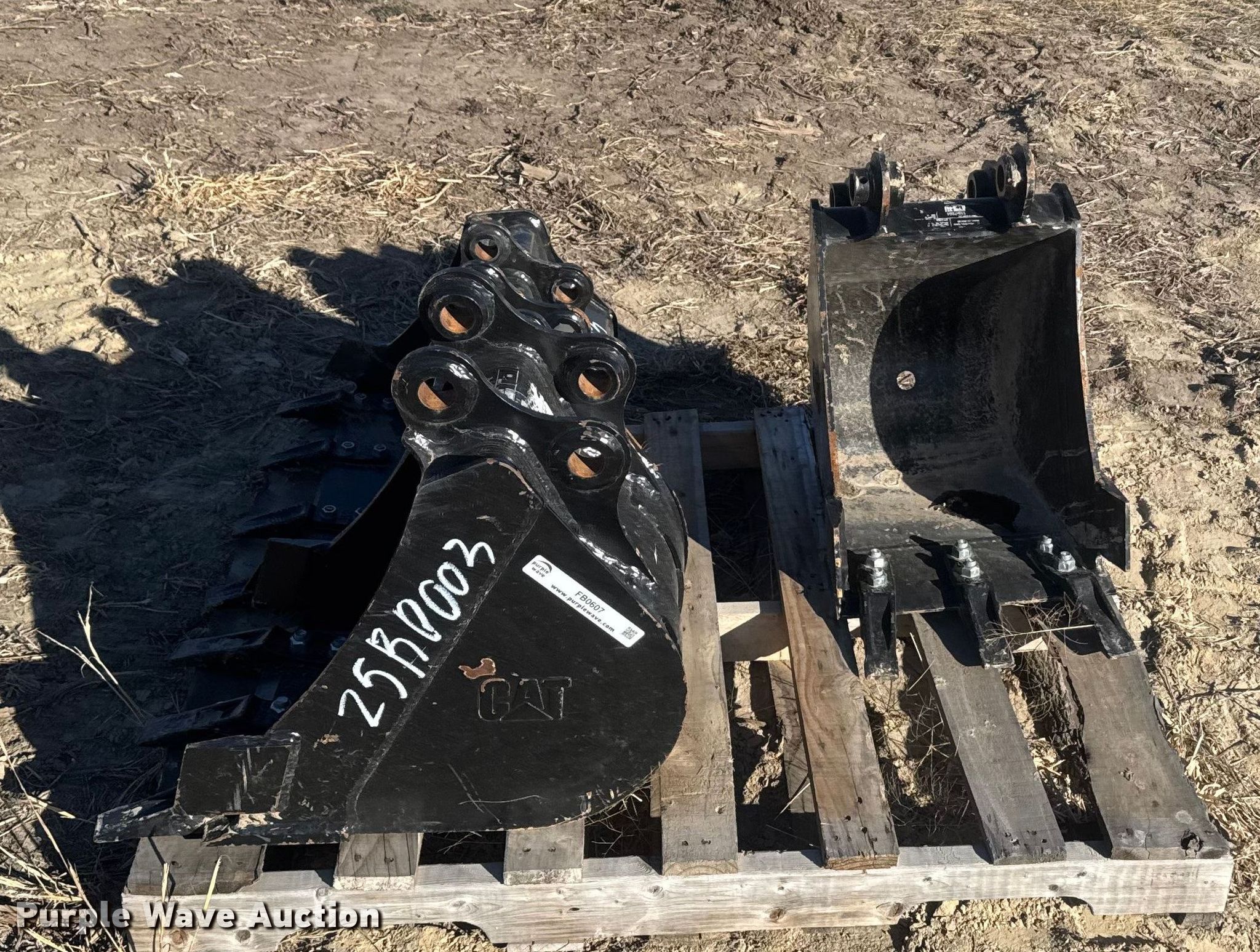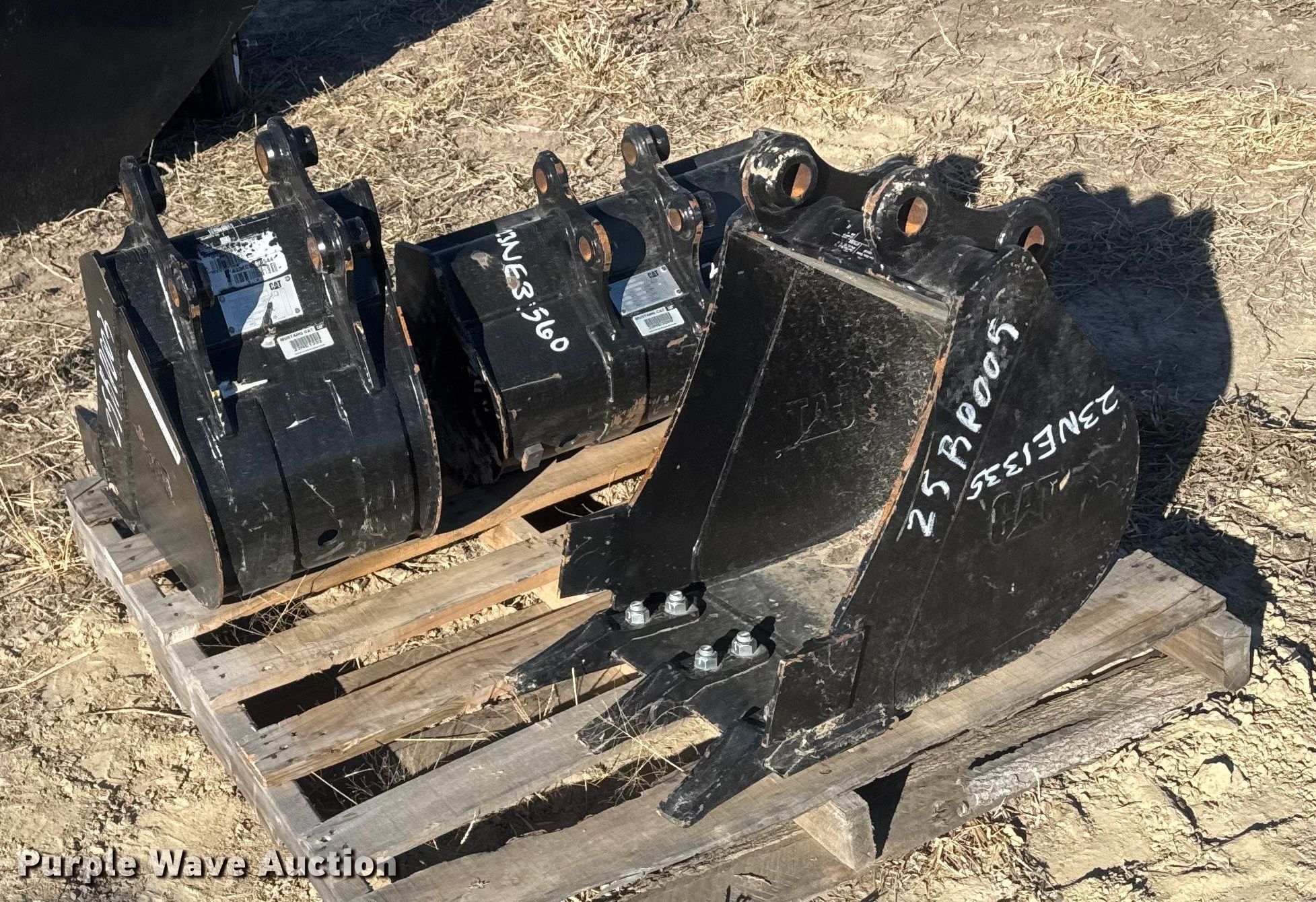 Purple Wave is selling a used Excavator Attach. in Nebraska. This item is a Caterpillar (3) Caterpillar mini excavator buckets with the following: (2) 16" W, Teeth: 3, Width: 24", Teeth: 4