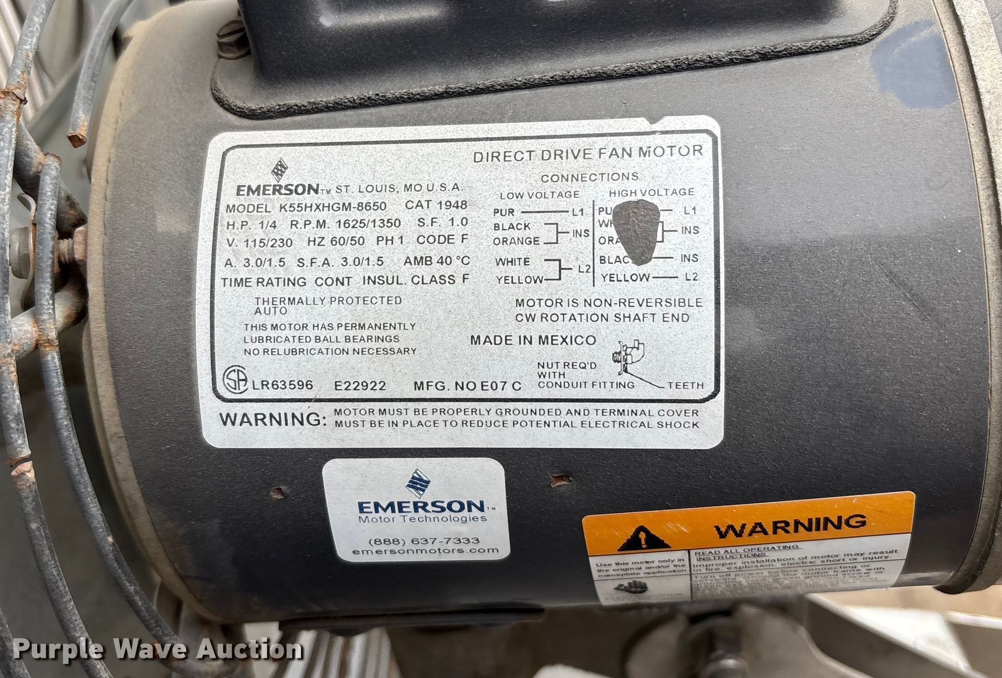 2008 I.E. Adam's 6720 mister fan. Serial: 46021. Electric Motor Emerson K55HXHGM8650, Volts: 115/230. Rent All Equipment. Saint Joseph, MO 64506