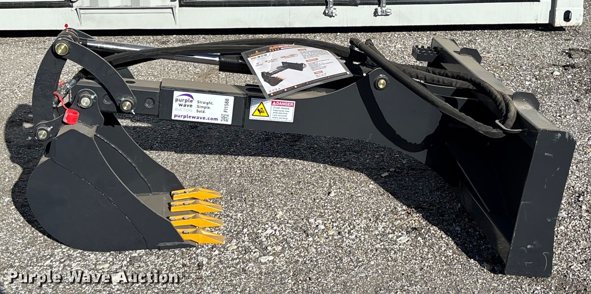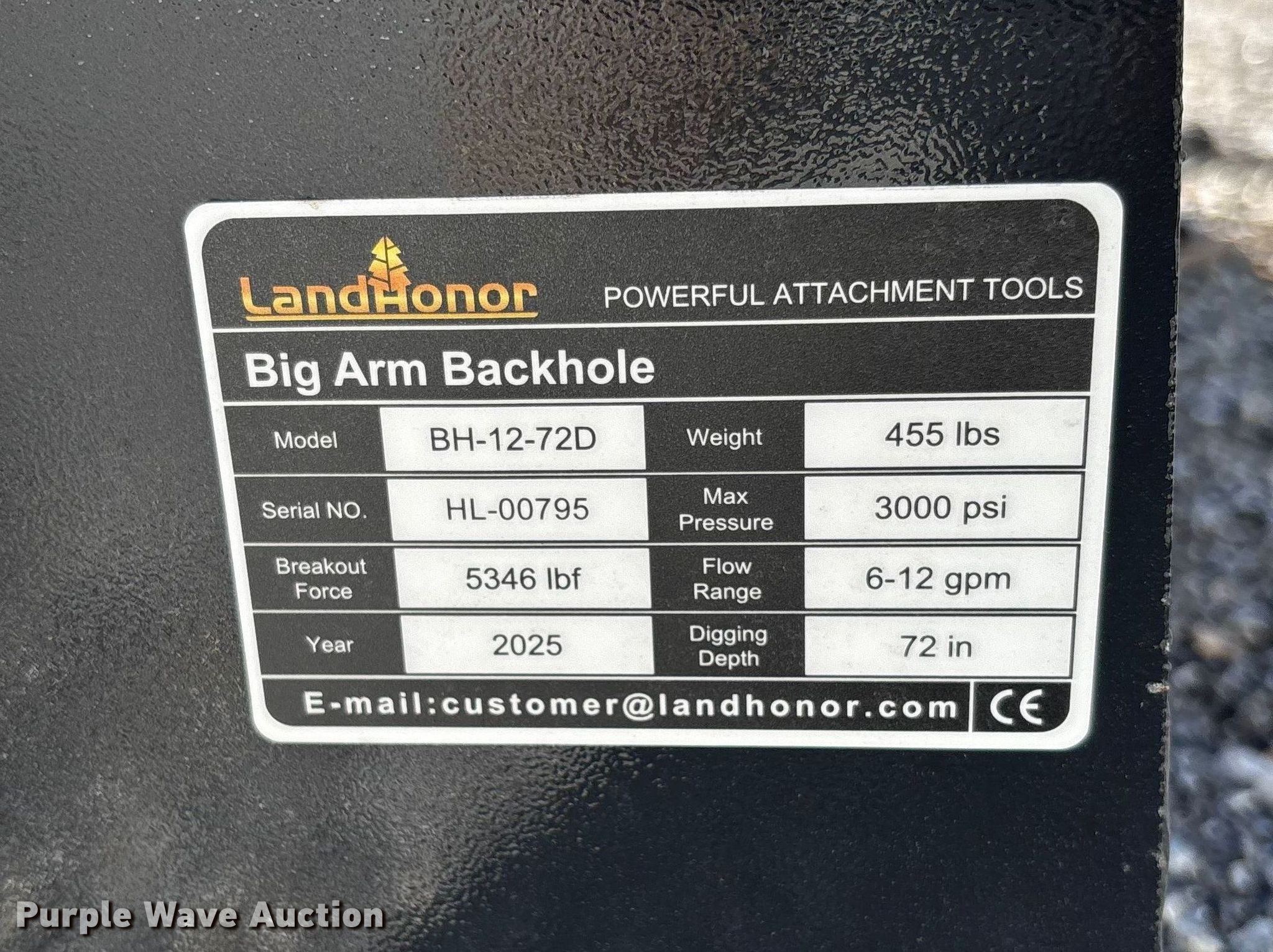 Purple Wave is selling a used Skid Steer Attach. in Oklahoma. This item is a 2025 LandHonor BH-12-72D skid steer backhoe with the following: Serial: HL-00795, Width: 18", Teeth: Bolt-on, Digging depth: 72"