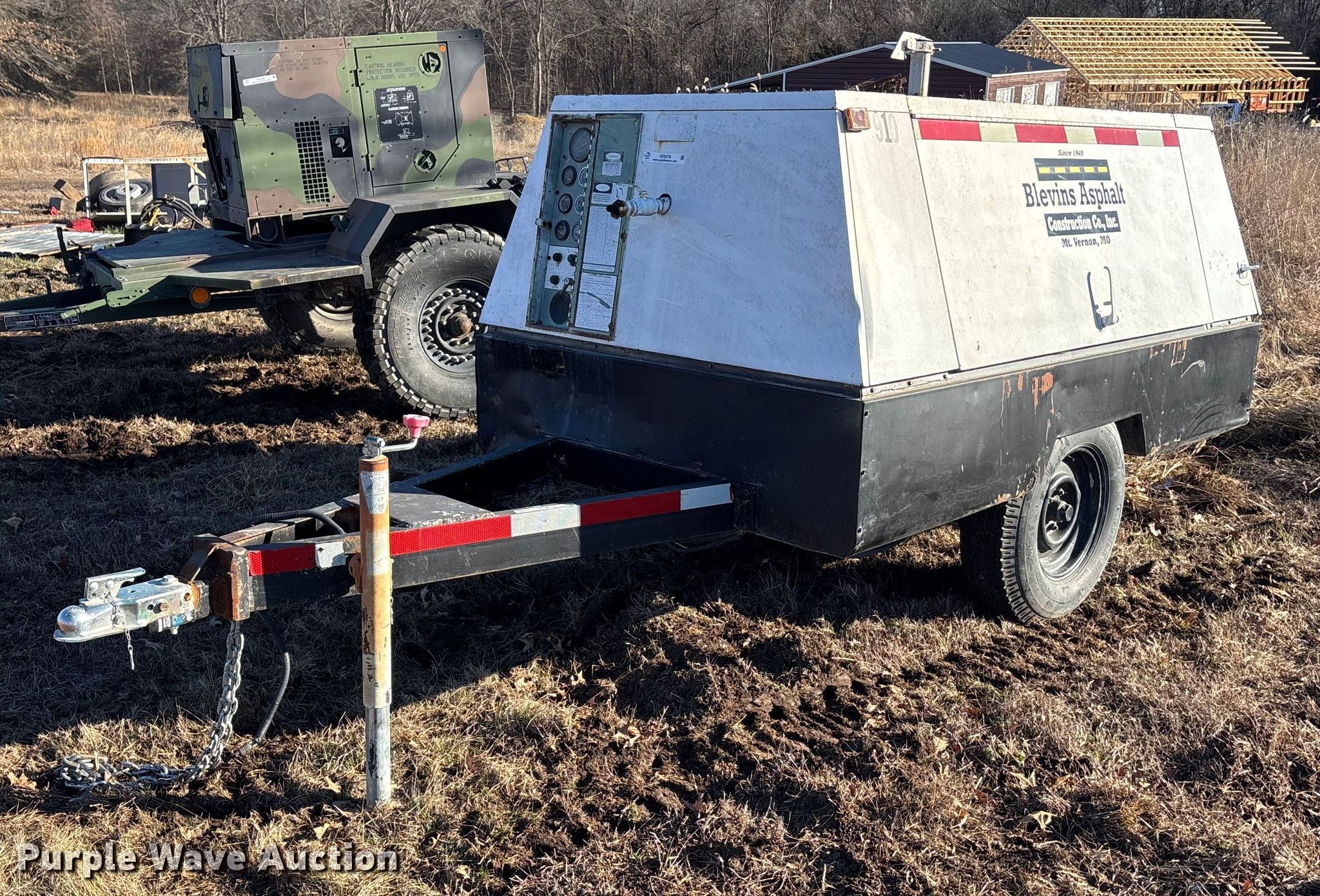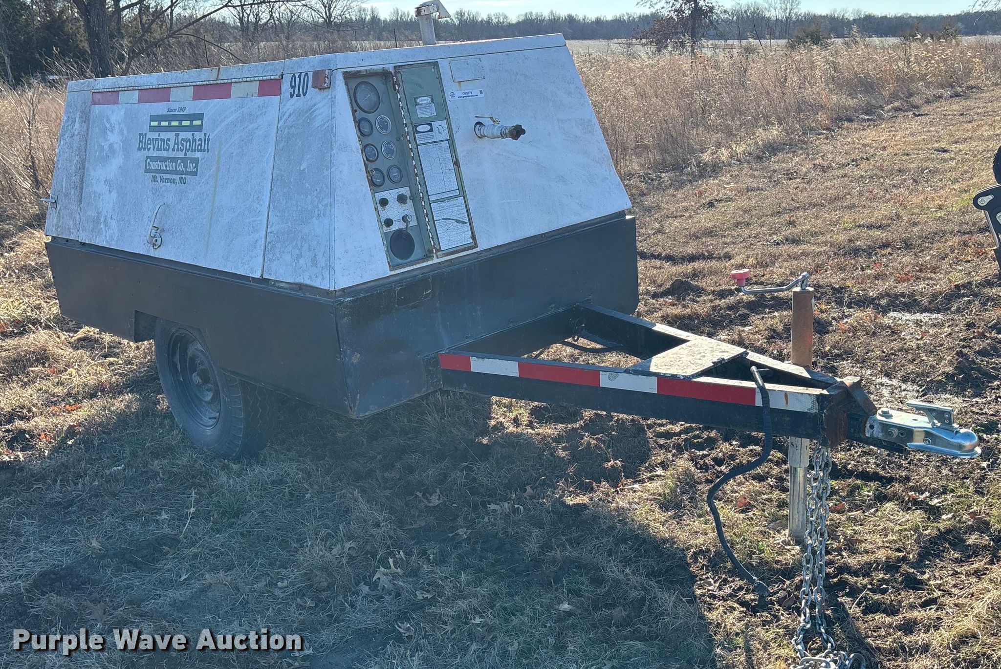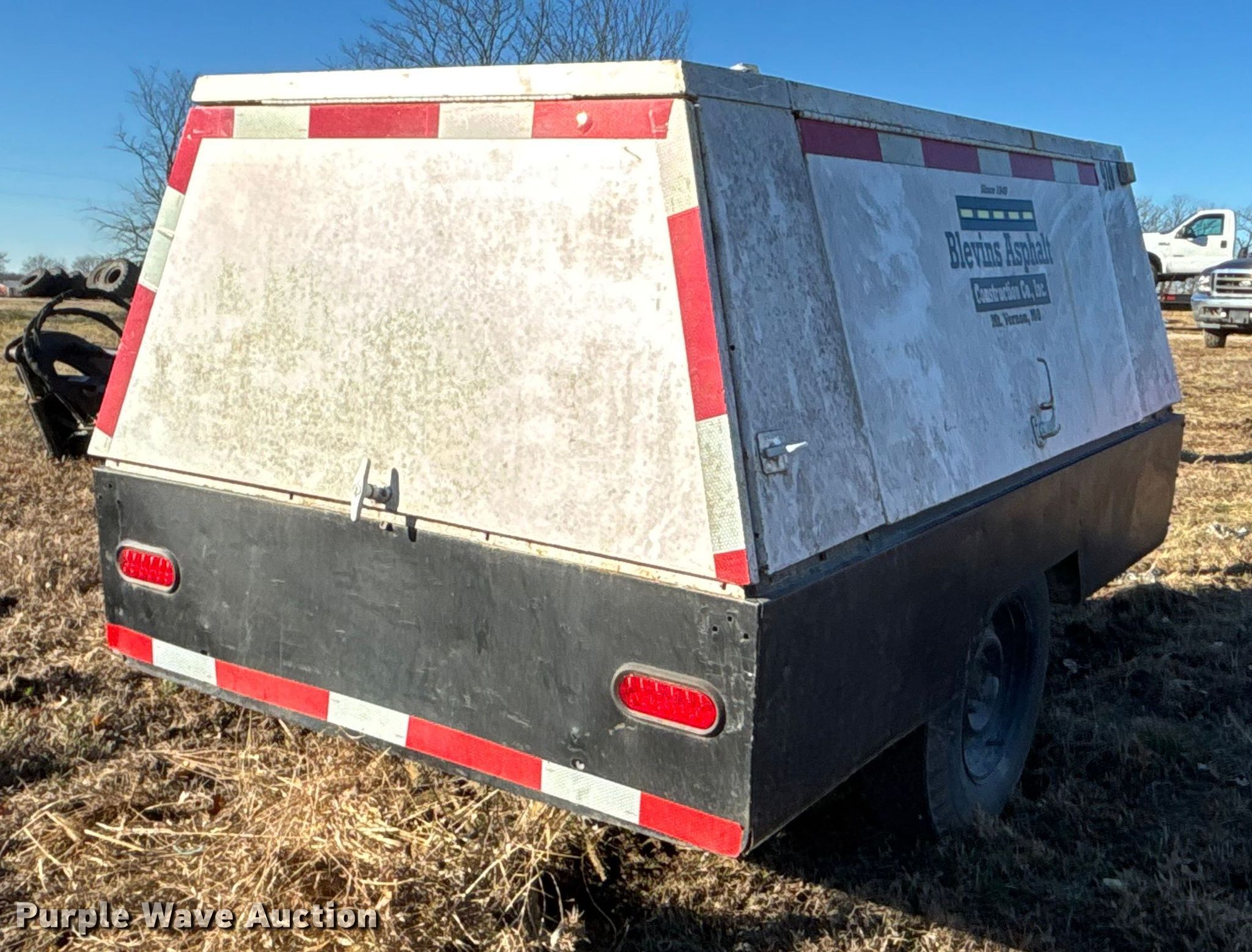 Cooper industries D0190ER7A air compressor. Hours: 1,908 on meter, Serial: 1903977. Engine Perkins, Cylinders: 4, Fuel type: Diesel. Trailer 12' L x 56" W, Suspension: Spring, Axles: Single, Tire size: 7.00-15. Notes Engine issues, cranks but does not start , Unknown operating condition. This is worksite support equipment and will not come with a title. Transfer of ownership documentation will be a bill of sale. Owen LLC. Holden, MO 64040