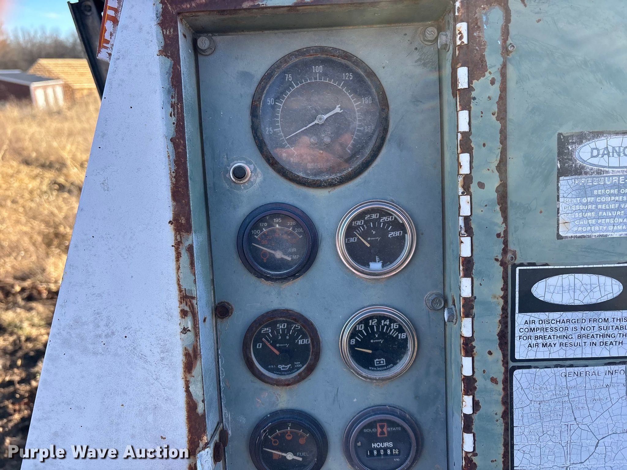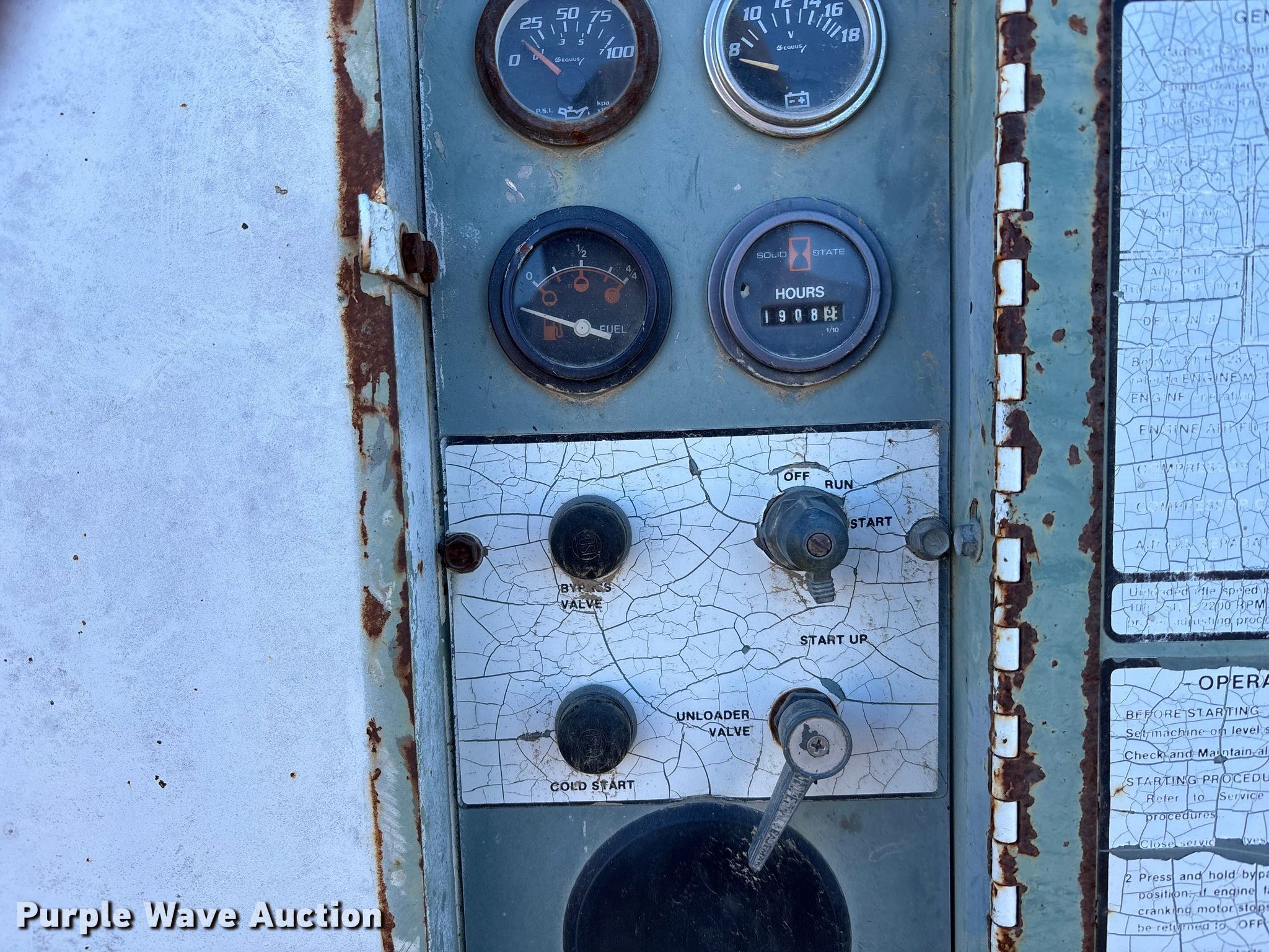 Purple Wave is selling a used Air Compressor in Missouri. This item is a Cooper industries D0190ER7A air compressor with the following: Hours: 1,908 on meter, Serial: 1903977