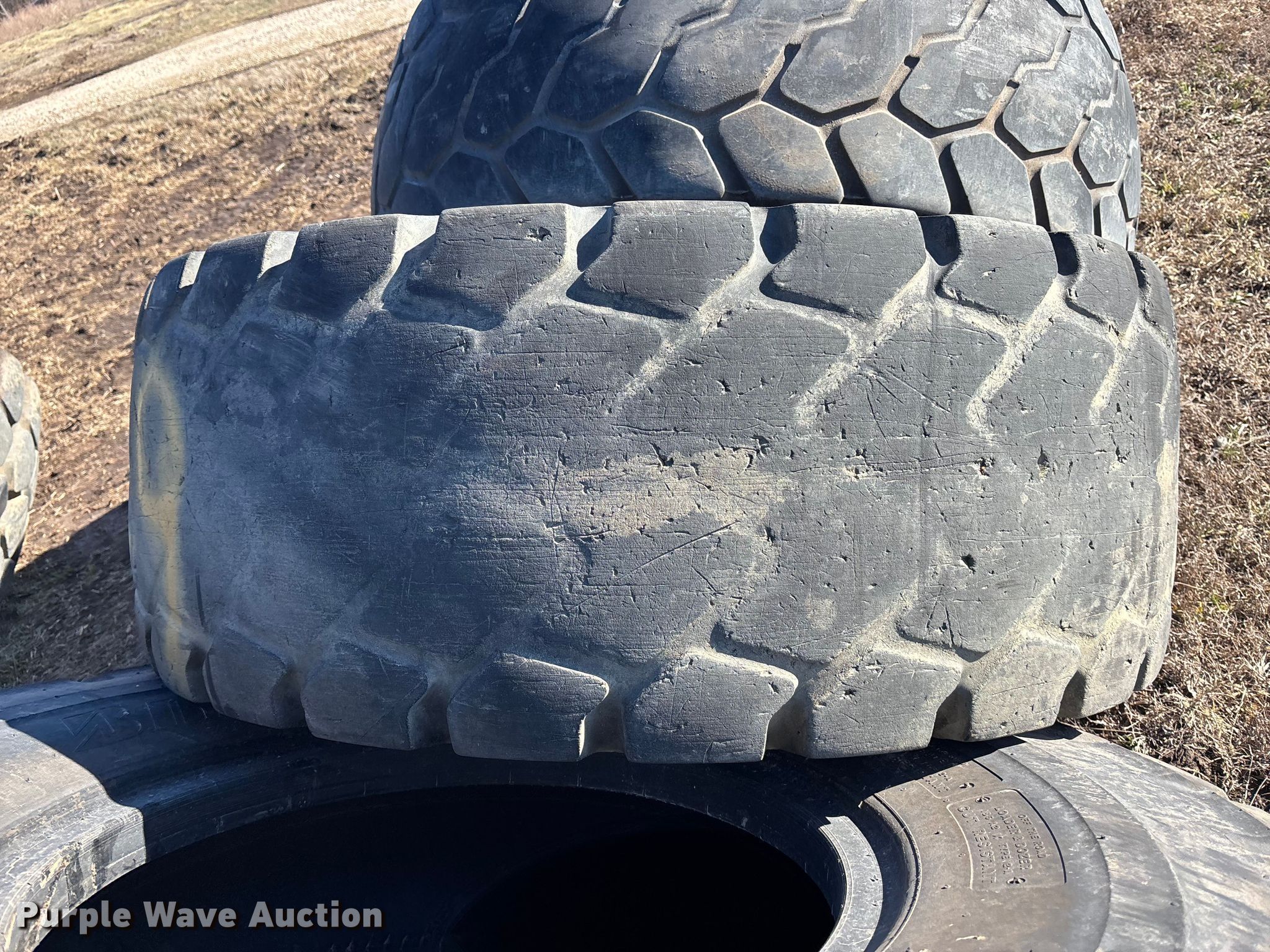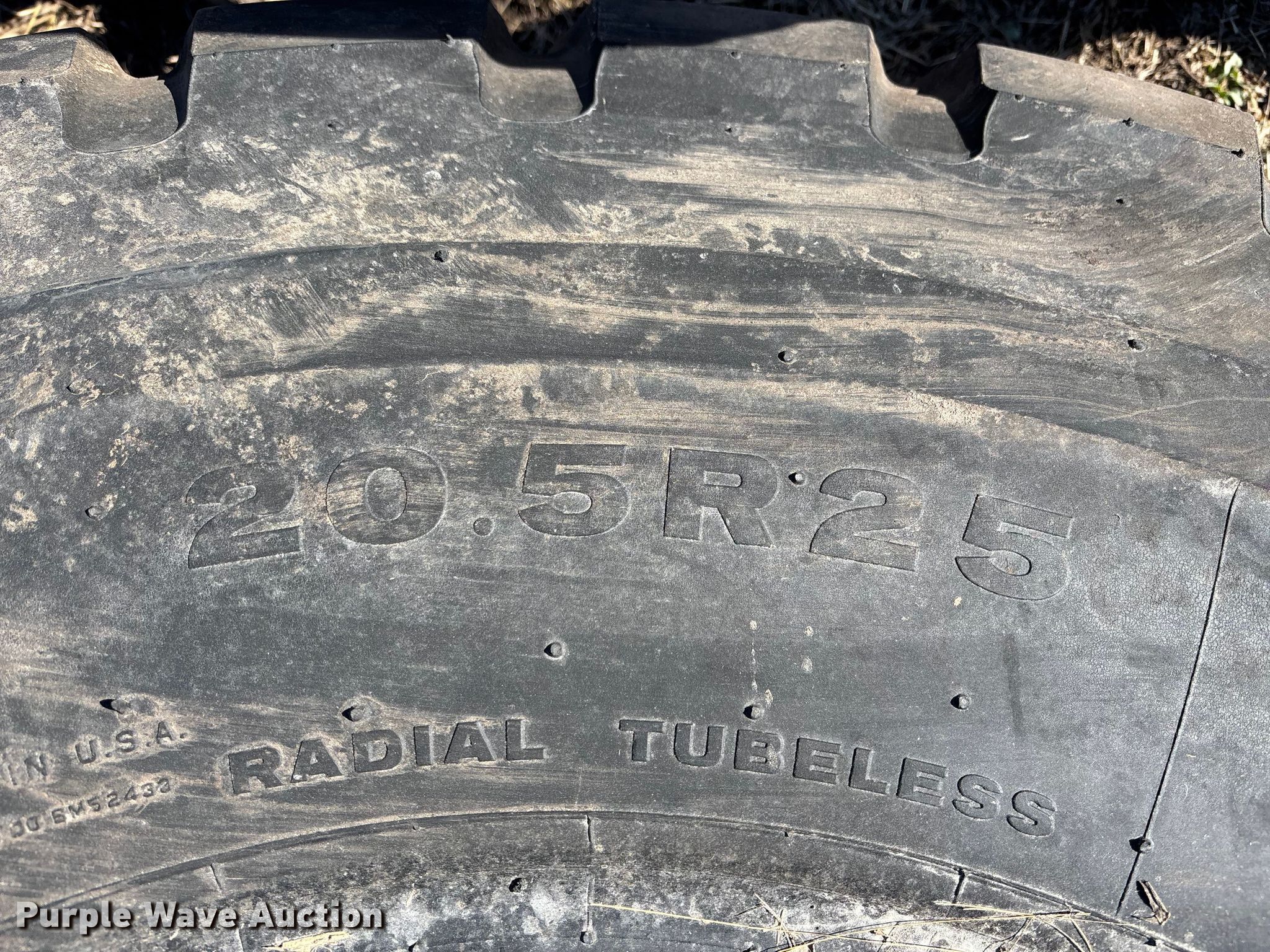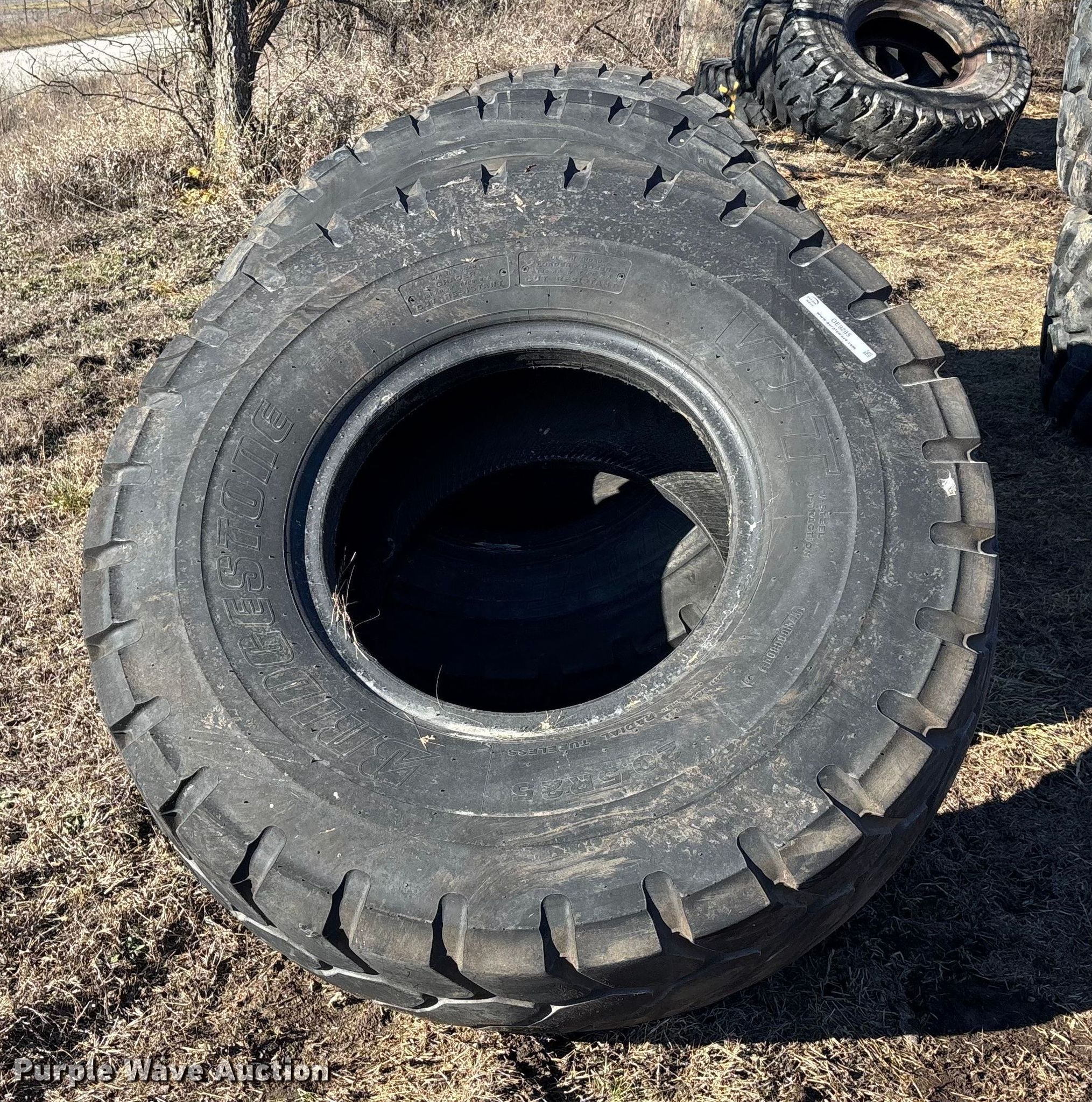 Purple Wave is selling a used Industrial Tires or Tracks in Missouri. This item is a (5) 20.5R25 Bridgestone VJT wheel loader tires with the following: (5) 20.5R25 Bridgestone VJT wheel loader tires. Owen LLC. Holden, MO 64040