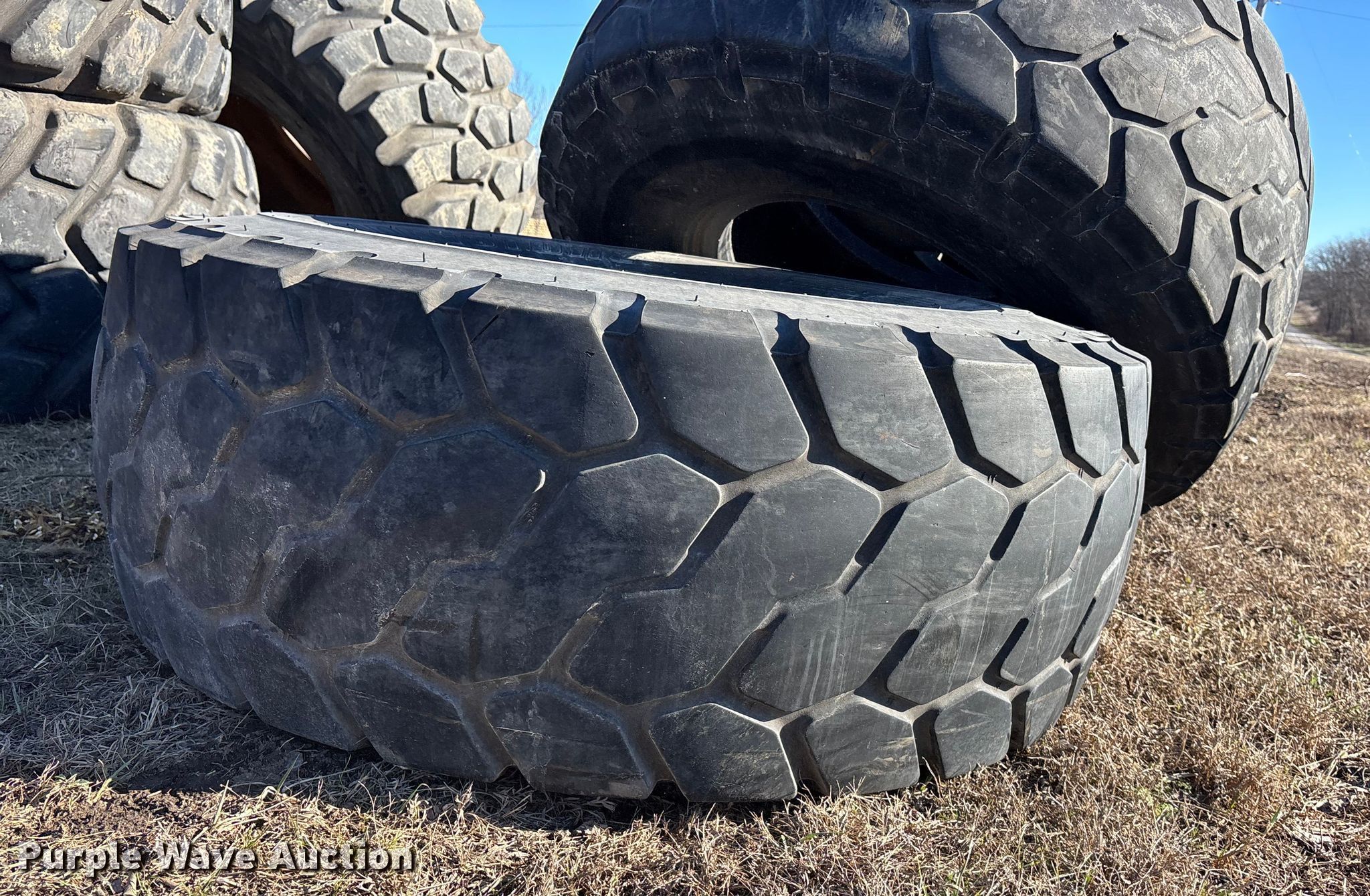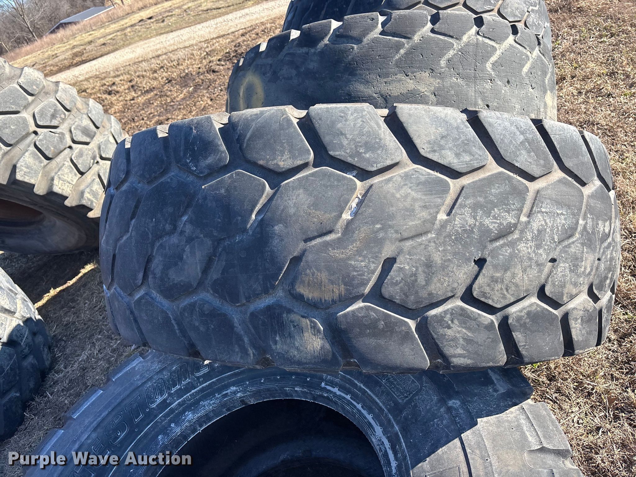 (5) 20.5R25 Bridgestone VJT wheel loader tires for sale in Holden, Missouri. Item OE9285 will sell on February 12th, 2026.