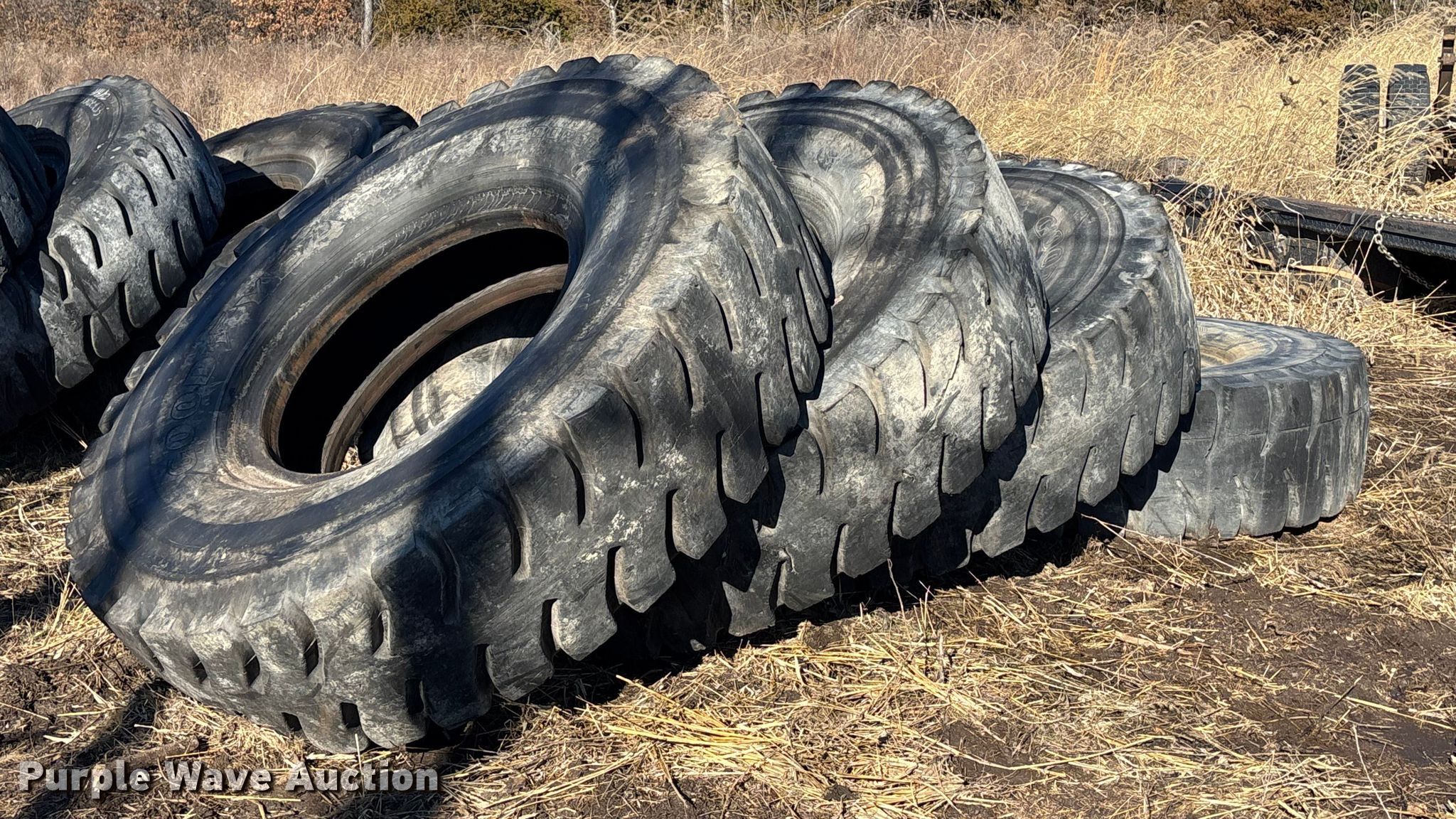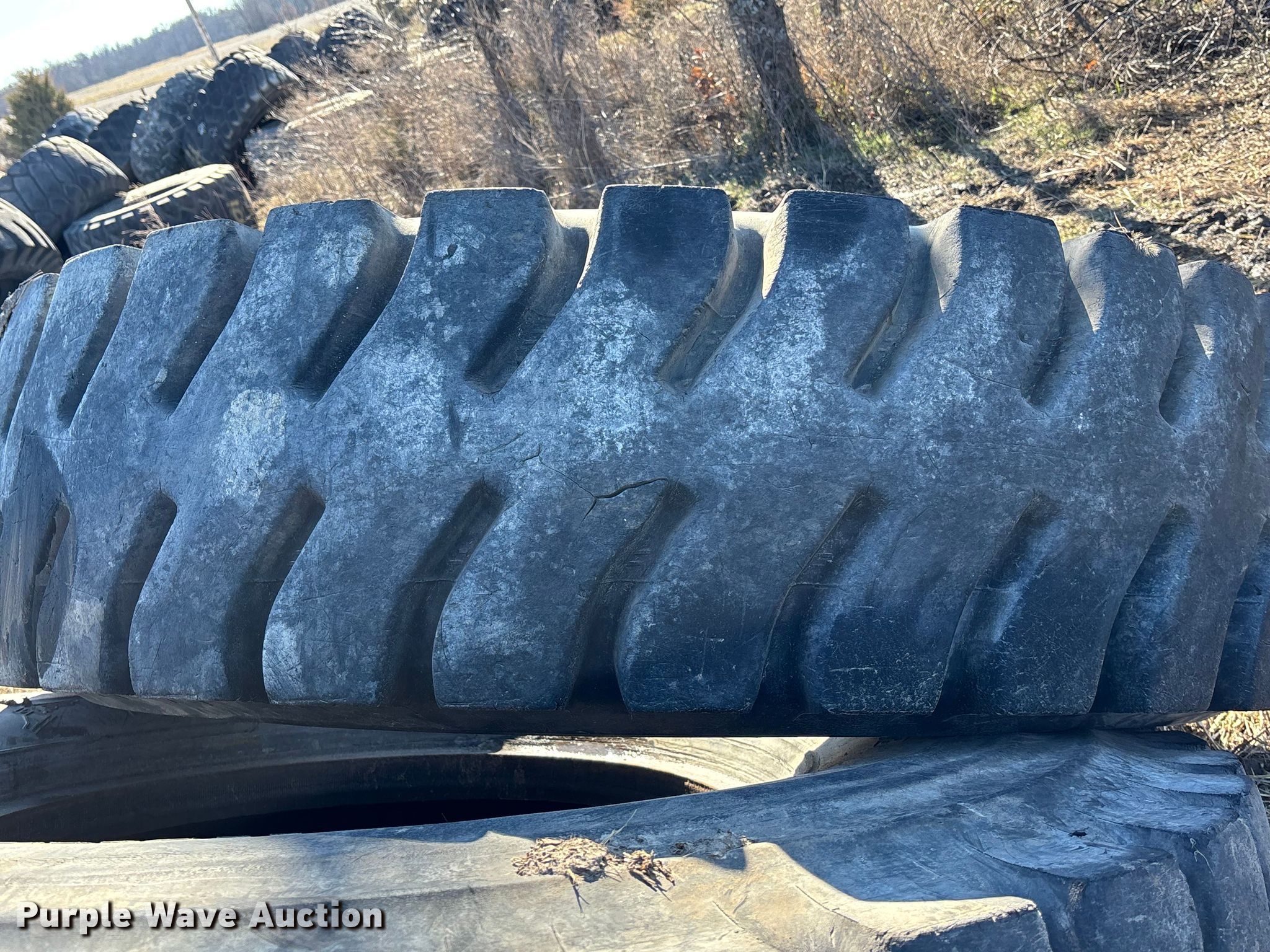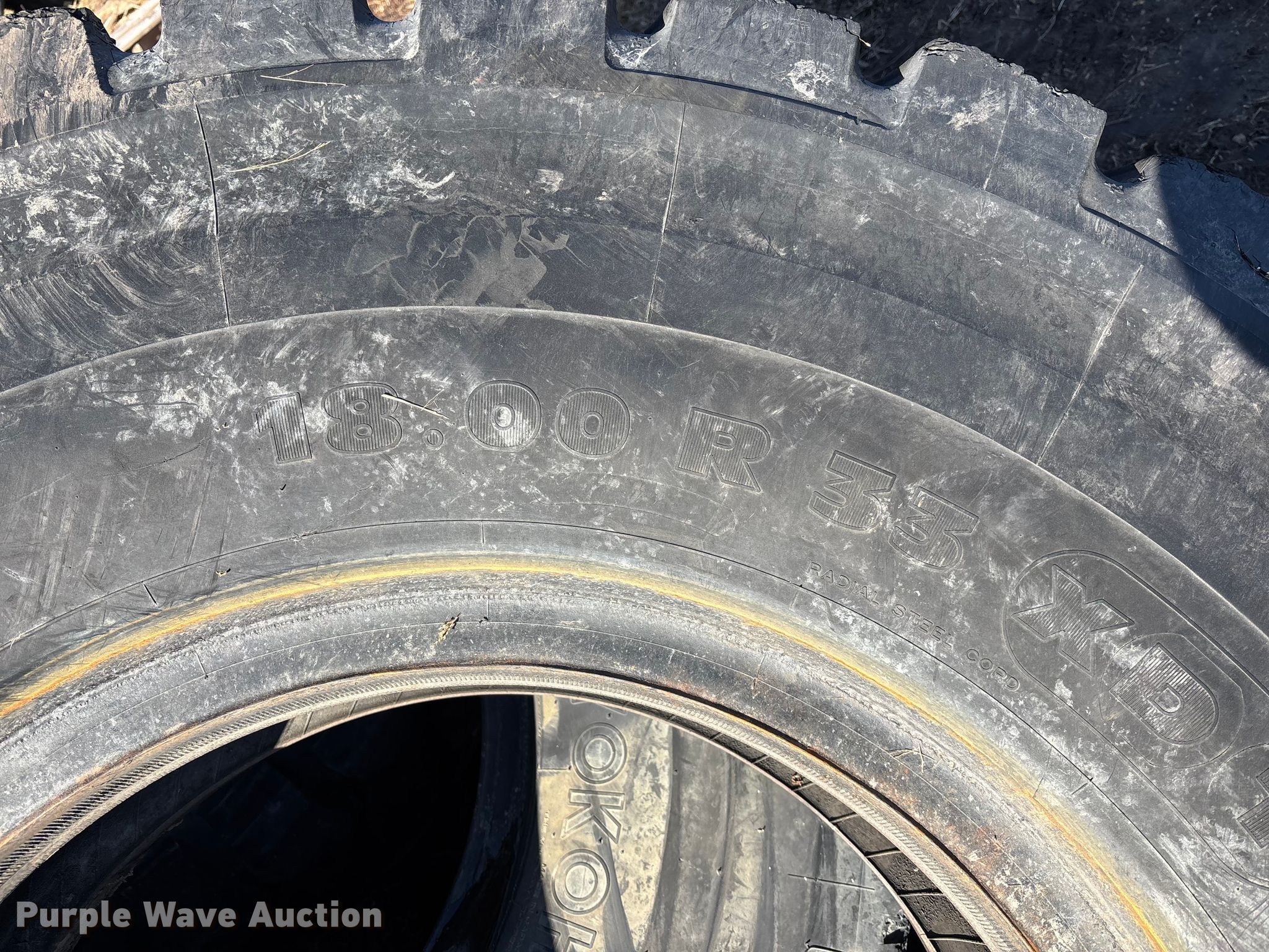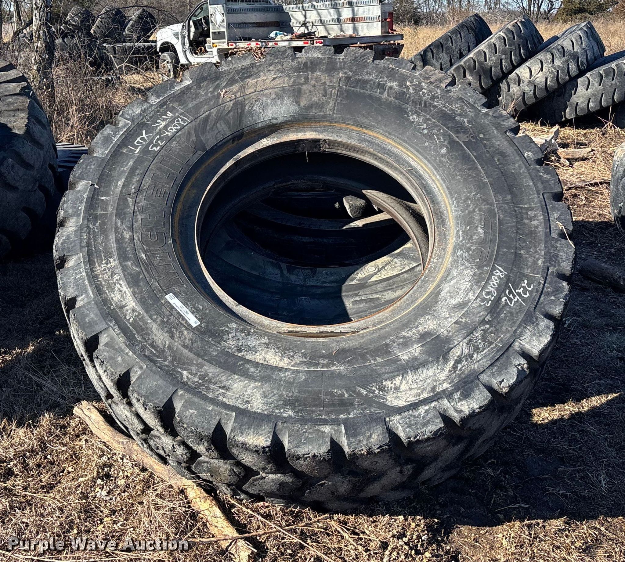 Purple Wave is selling a used Industrial Tires or Tracks in Missouri. This item is a (16) 18-33 tires with the following: (16) 18-33 tires. Owen LLC. Holden, MO 64040