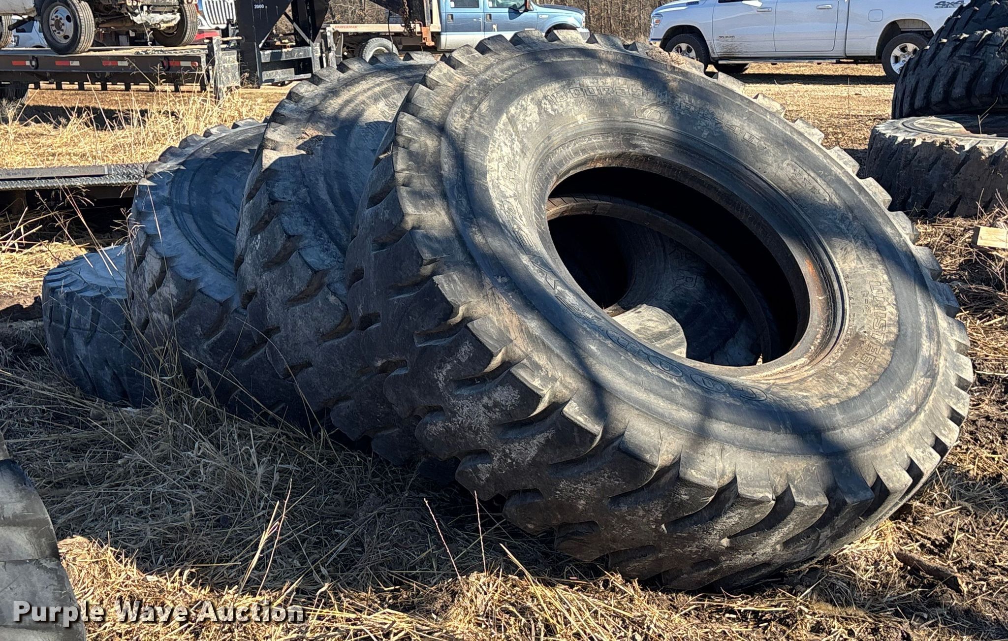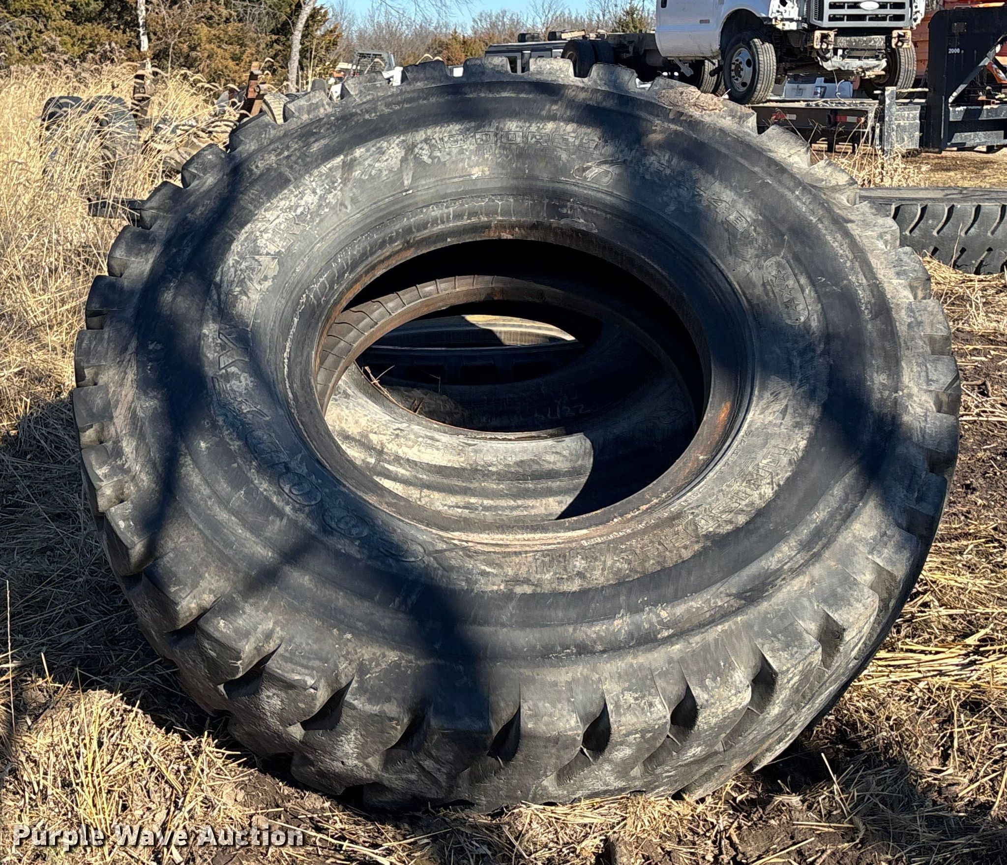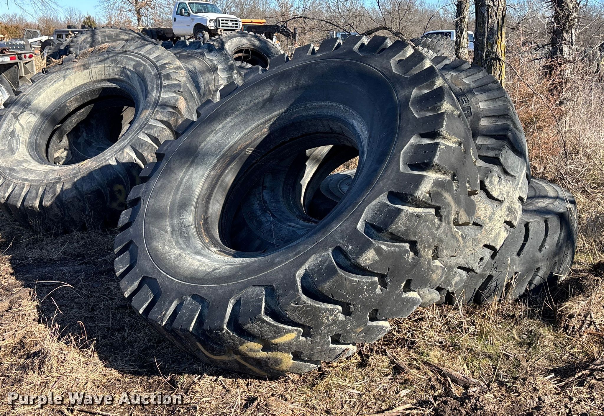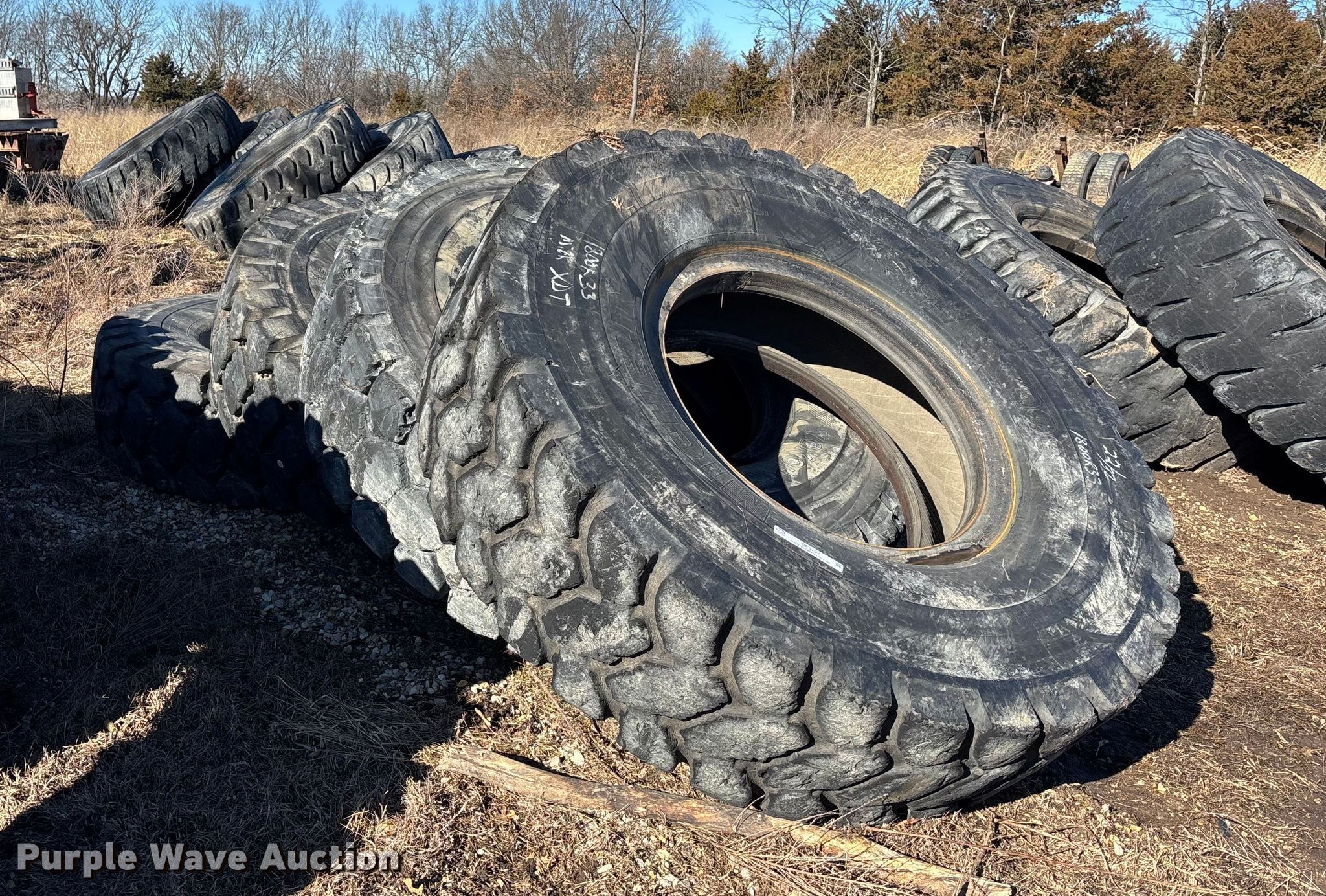 Purple Wave is selling a used Industrial Tires or Tracks in Missouri. This item is a (16) 18-33 tires with the following: (16) 18-33 tires. Owen LLC. Holden, MO 64040